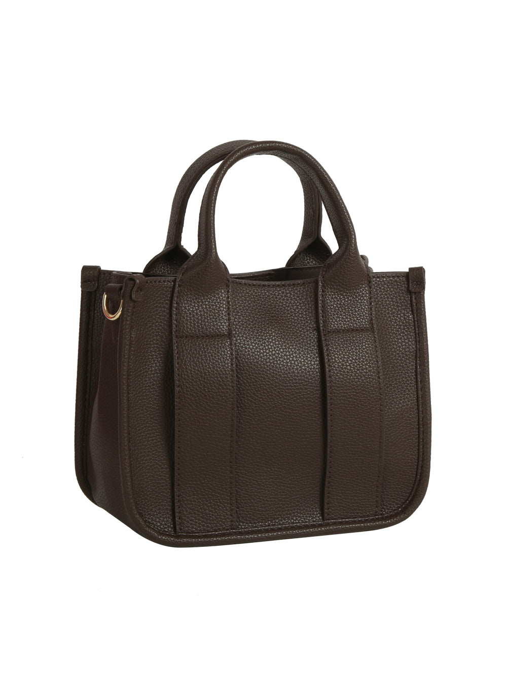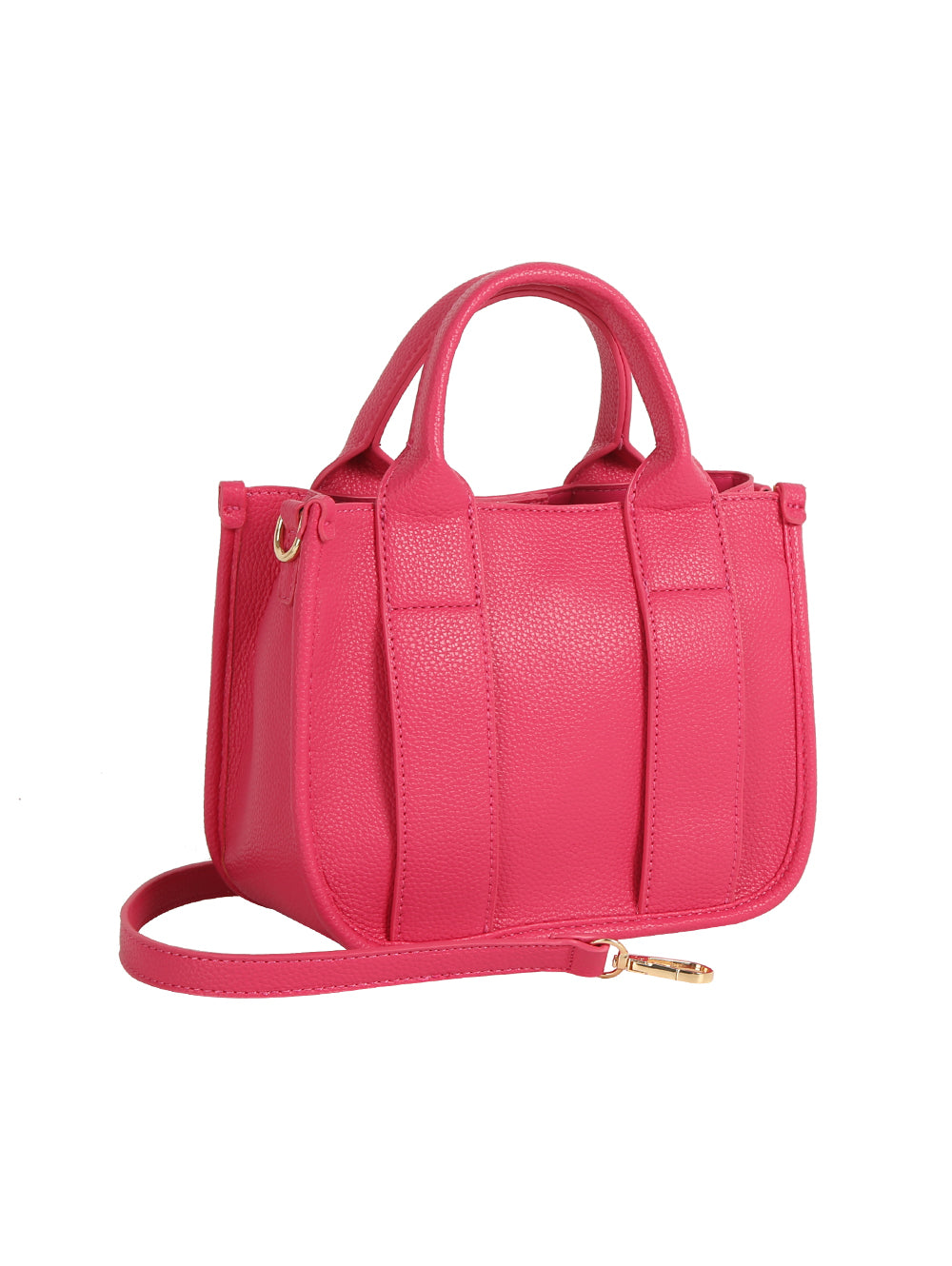 PU leather Top zip closure Gold tone hardware Solid lining with inner pocket Detachable crossbody strap included...