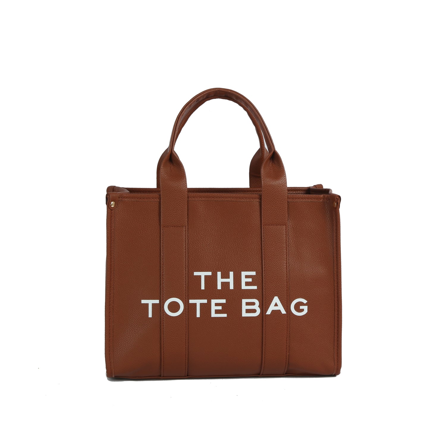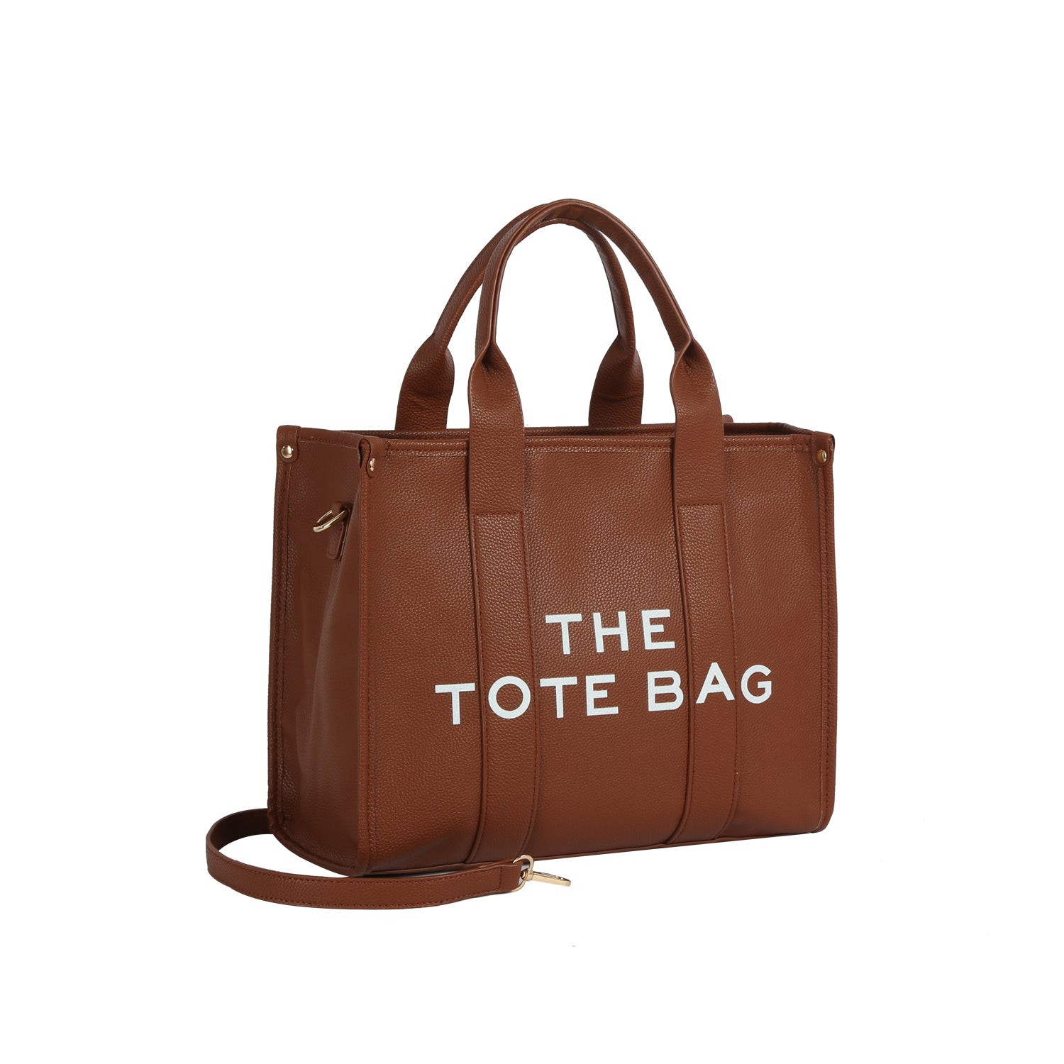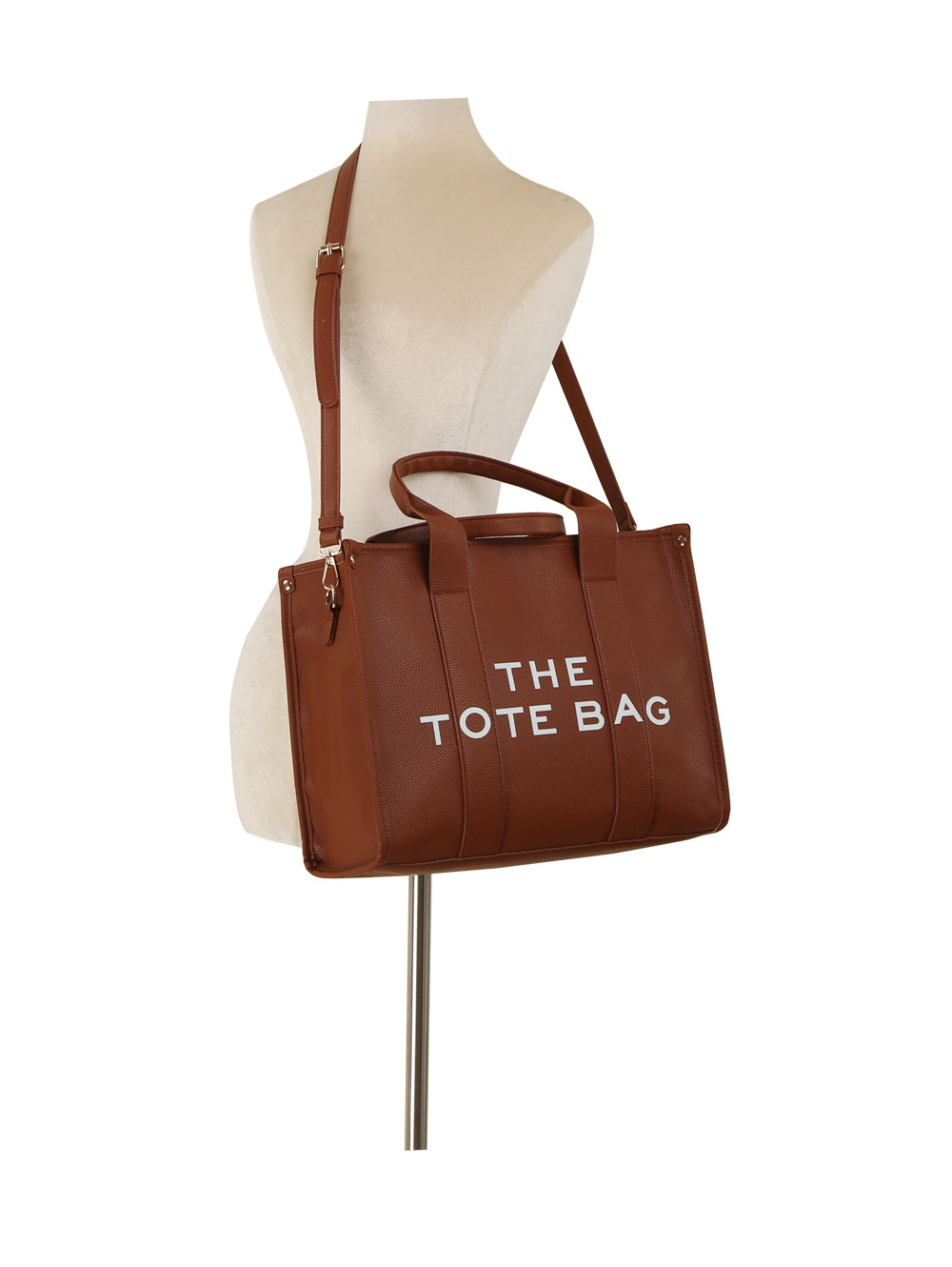 • Bold front lettering: THE TOTE BAG for a modern, casual statement