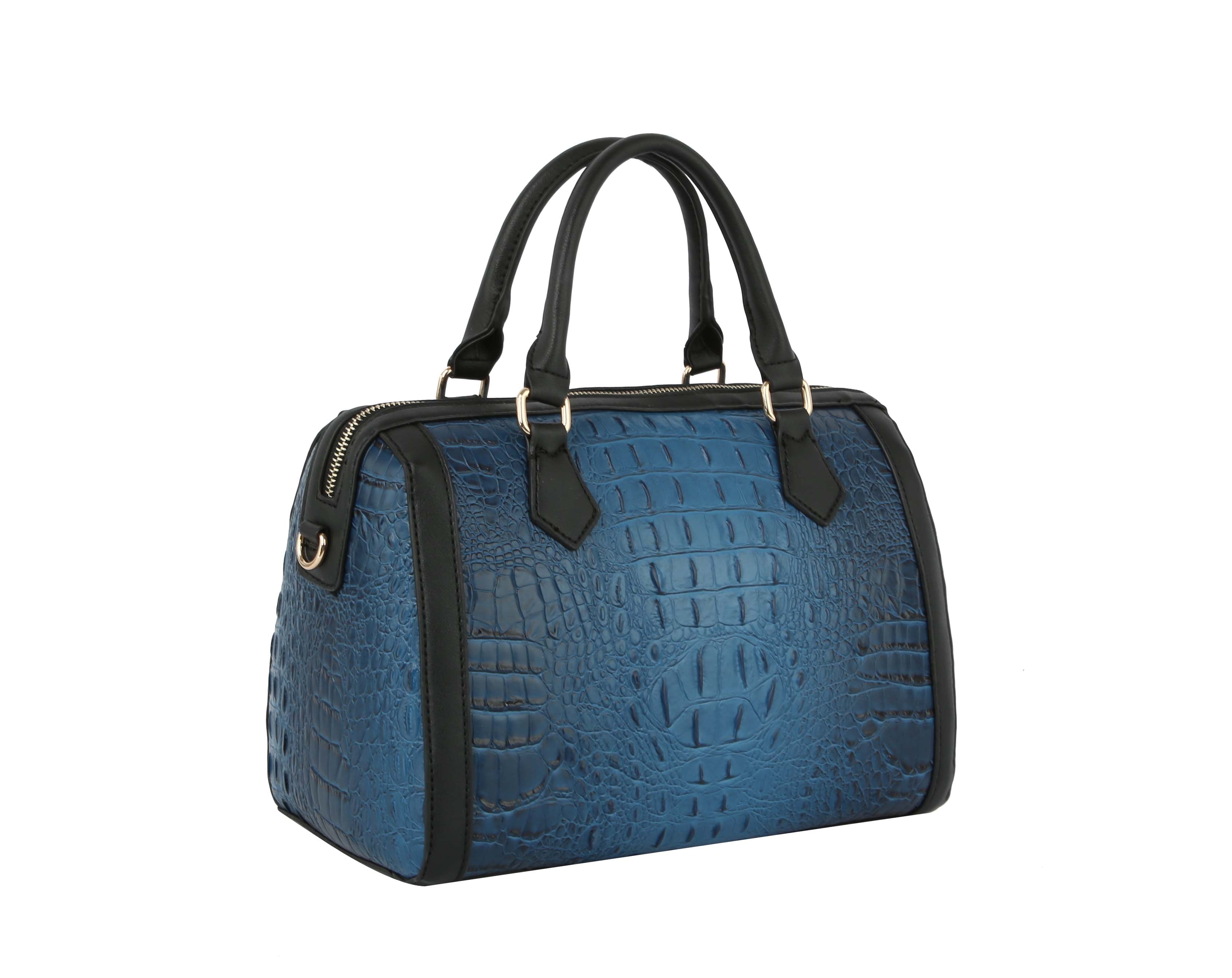 Vegan leather Black leather top handle Detachable crossbody strap Crocodile texture Solid lining Approximate size: 9.5 x...