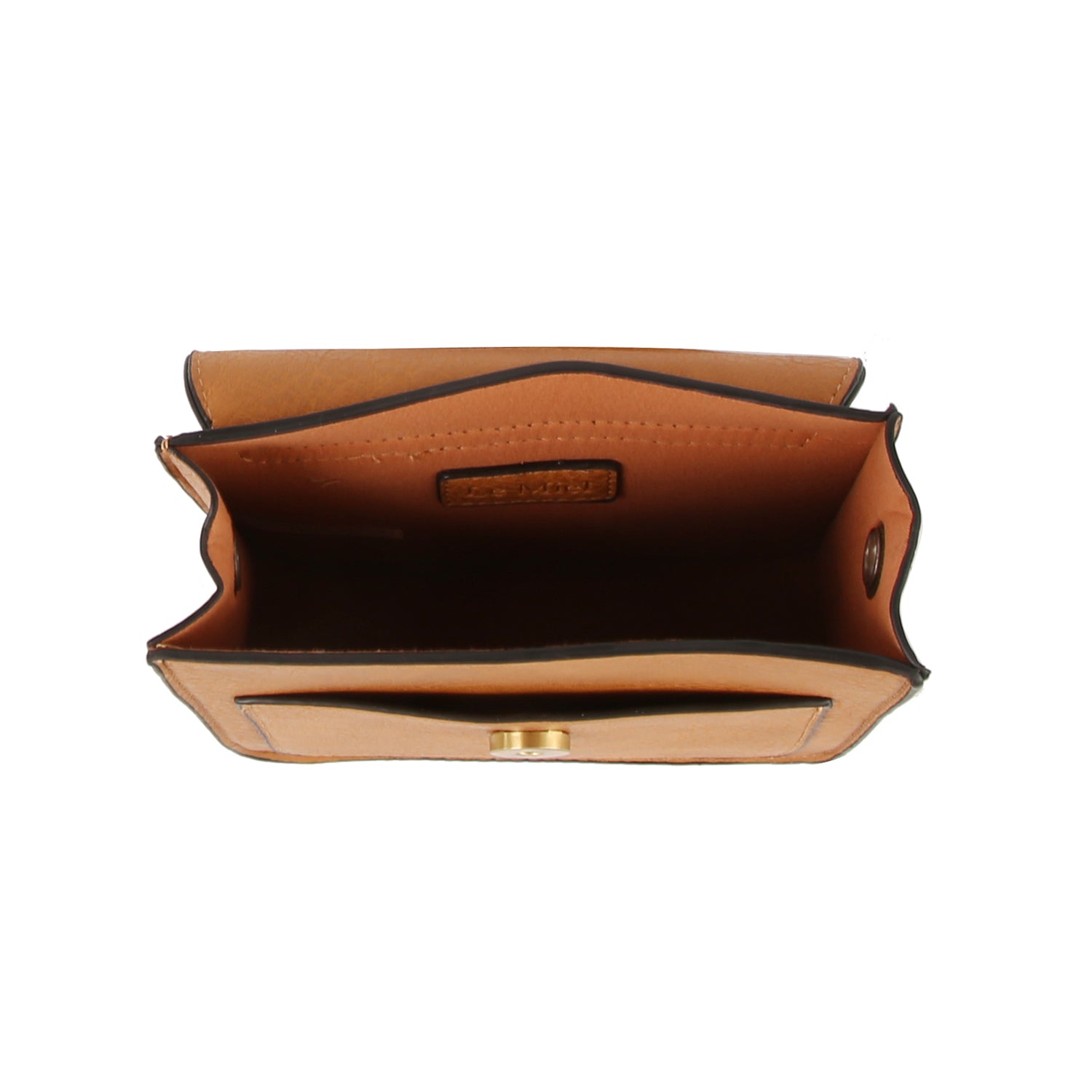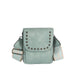 • Compact crossbody design with studded flap for a touch of edge