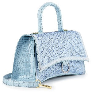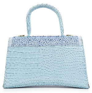Wear this bag as a crossbody or carry by the top handle. Features a chic design and colored stone detail, this petite faux-leather tote is perfect.