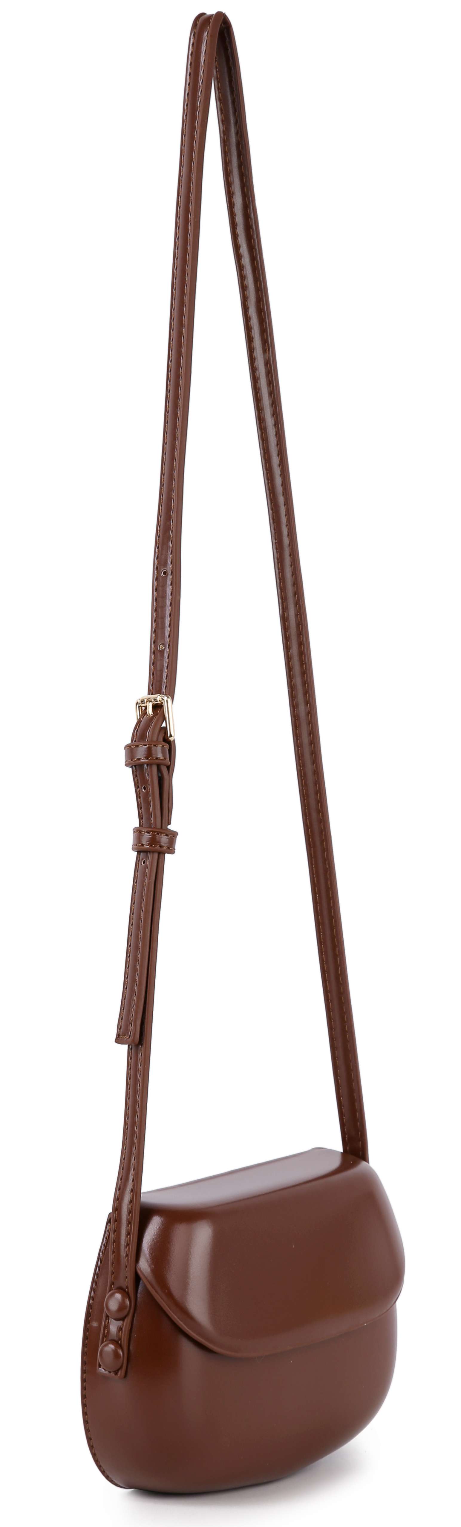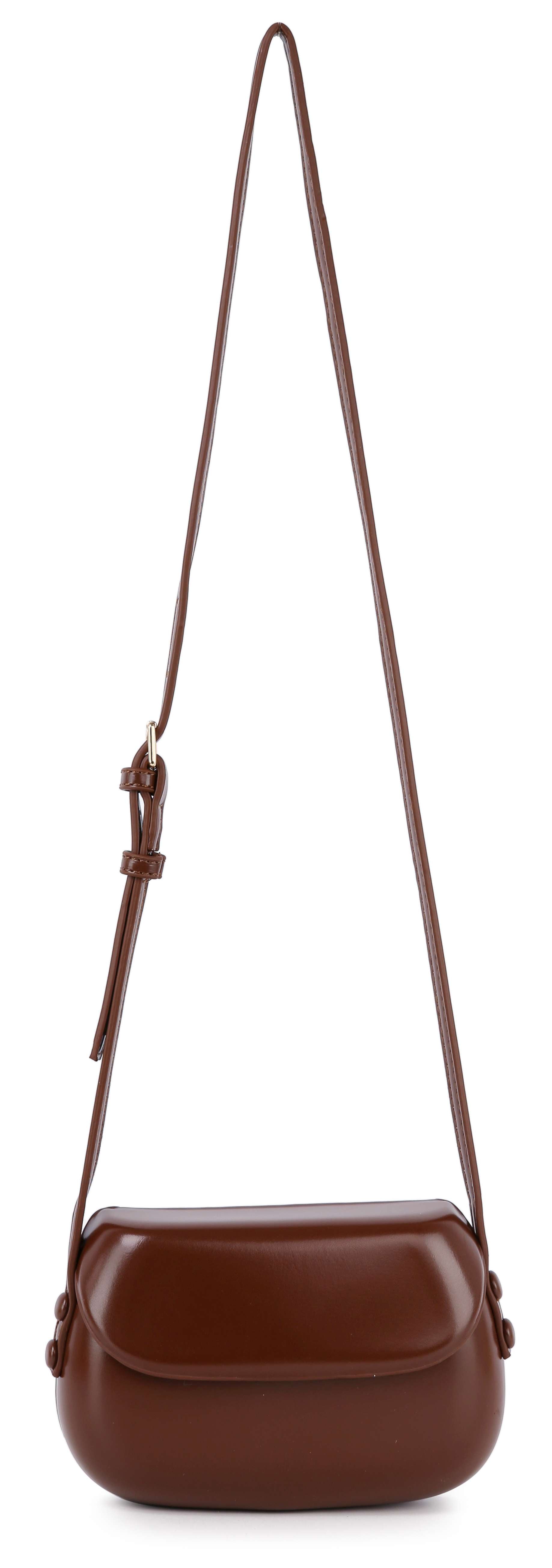 19.5L single strap. Faux leather with lined interior. Top flap closure. Gold toned hardware.    Approximate Size:...