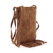 Tonal stitching accentuates this western inspired fringe accented crossbody.