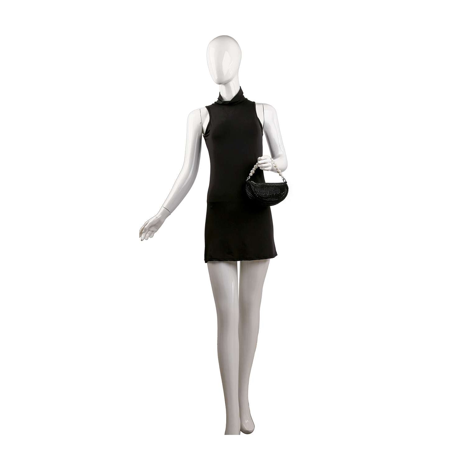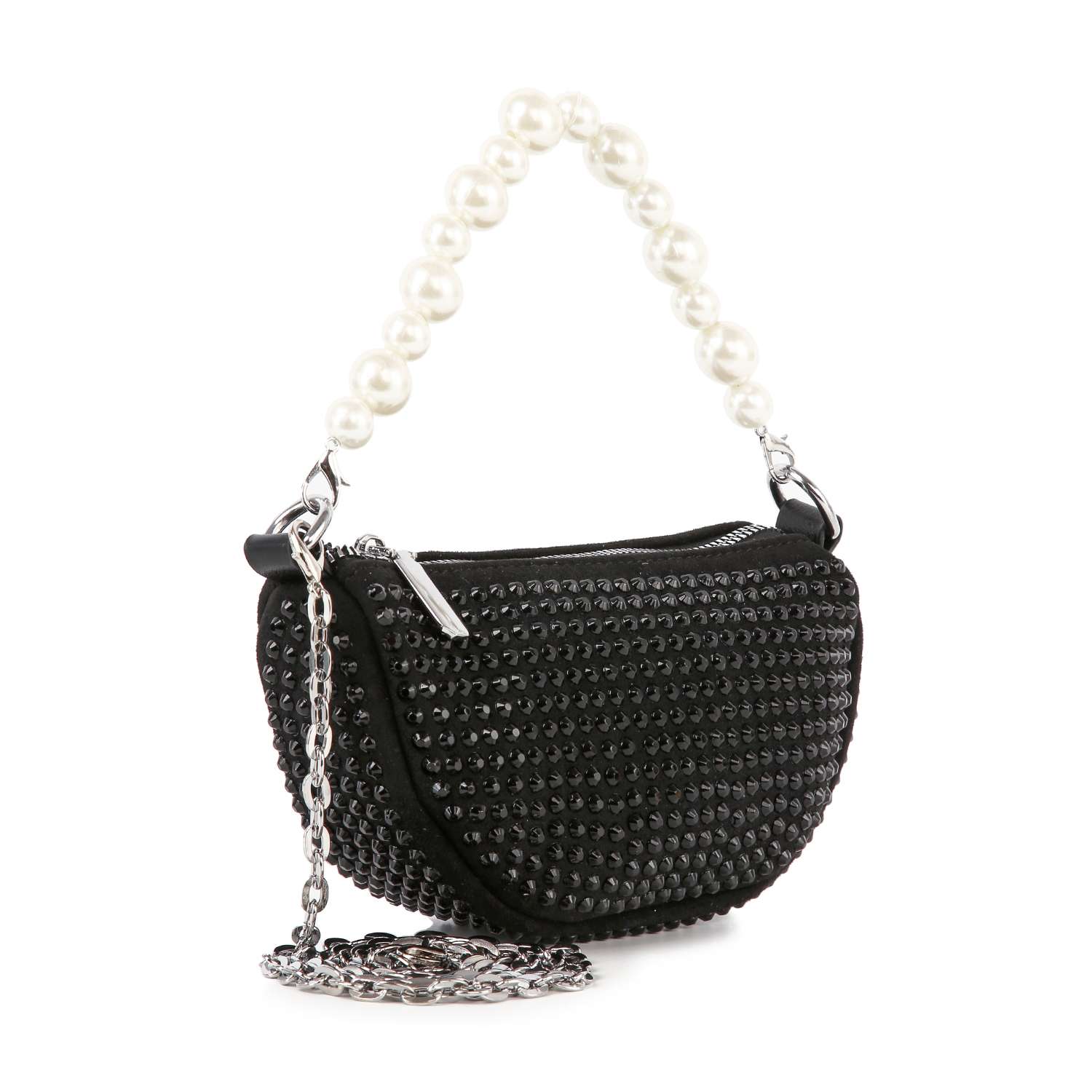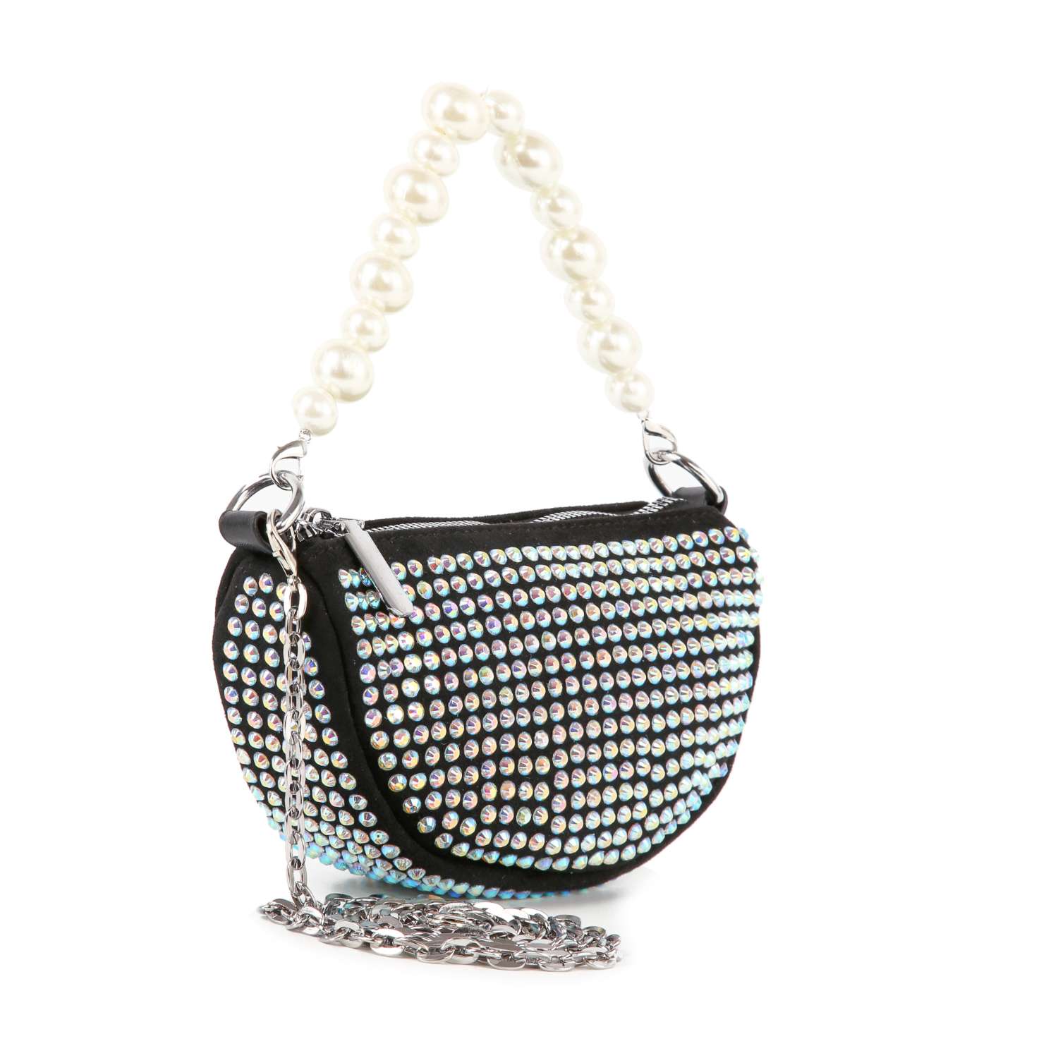 A beaded pearl strap accents this evening bag which is covered in rows of tiny sparkling crystals,...