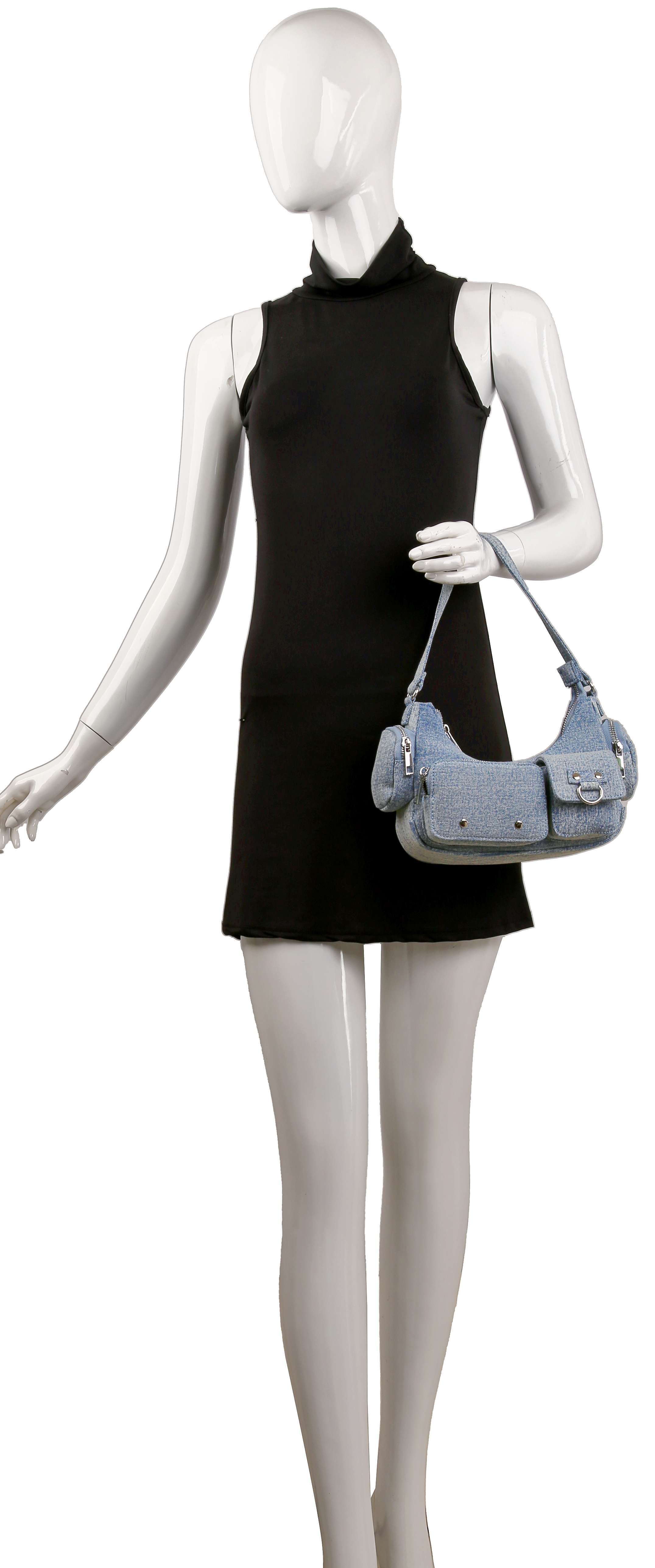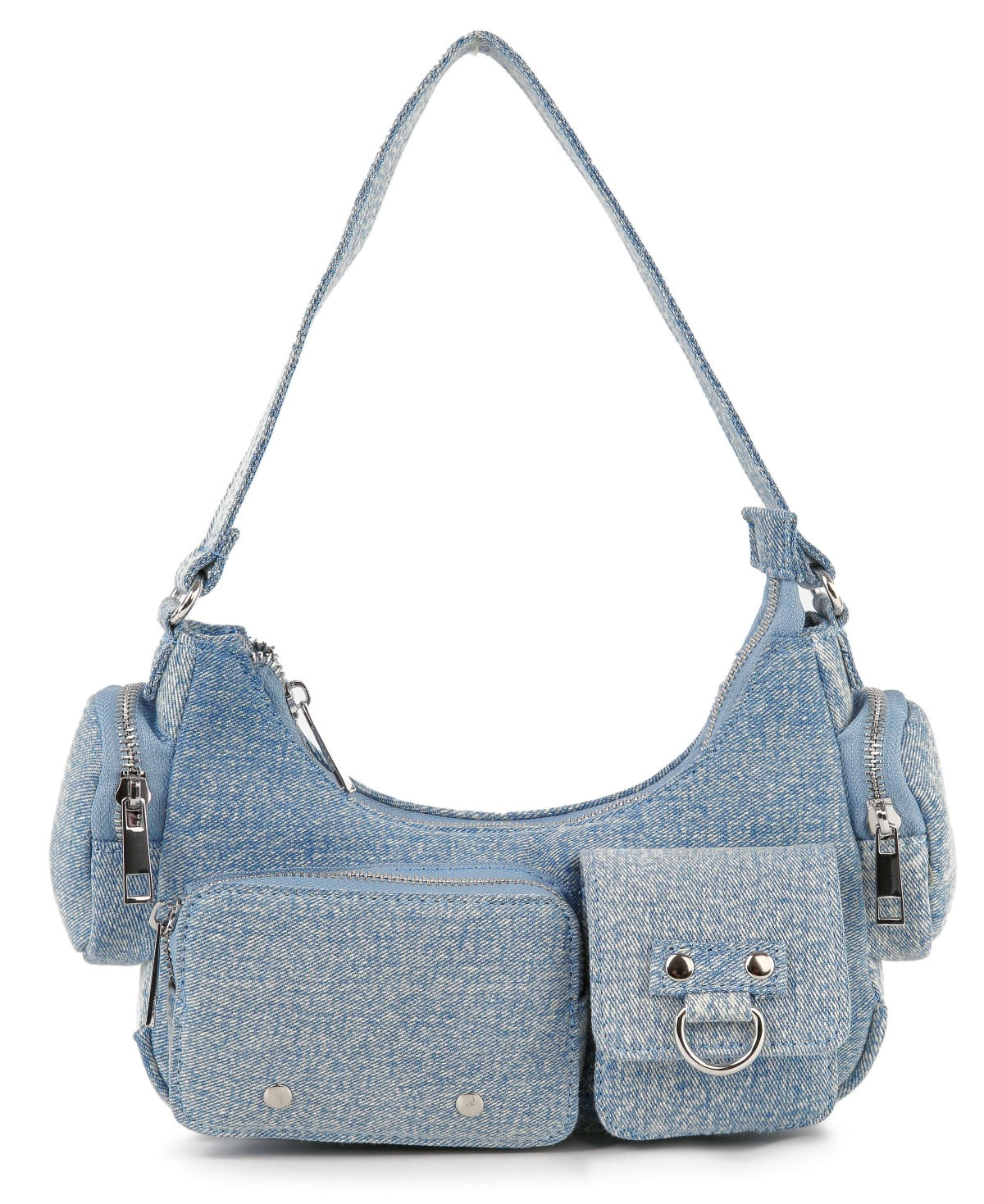 10L single strap. Denim construction with lined interior. 2 interior slip pockets and 1 zip pocket. Top...