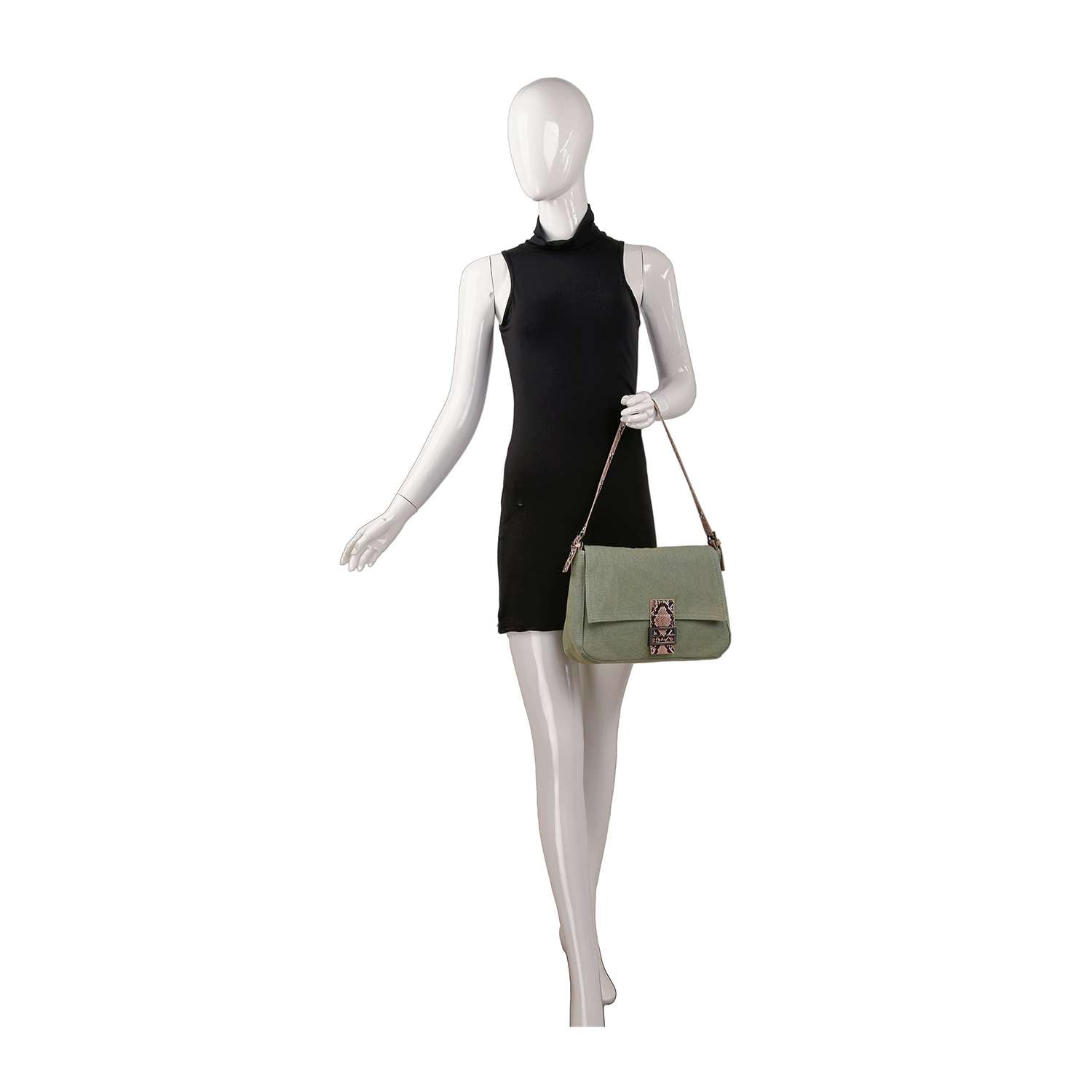 Silver toned hardware.