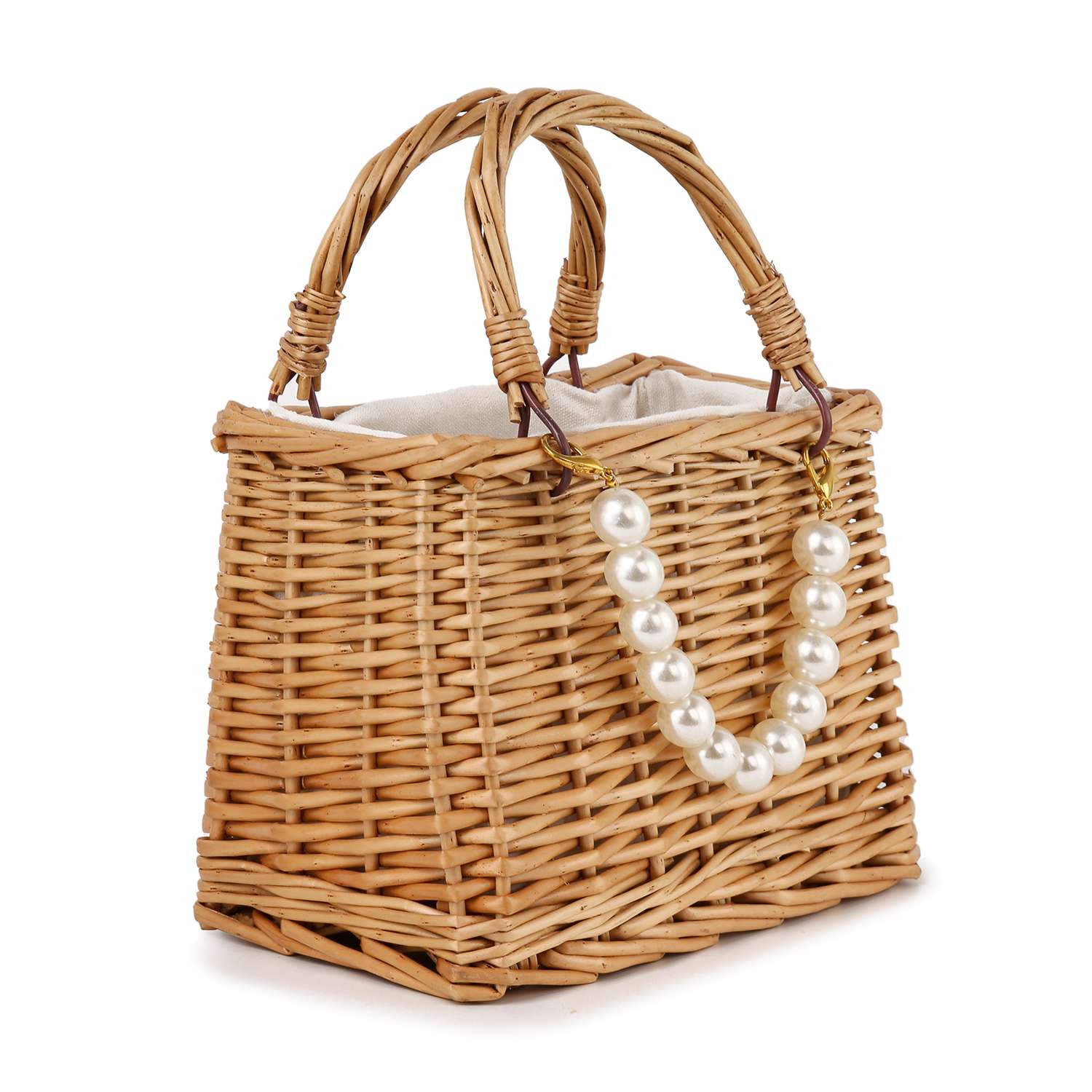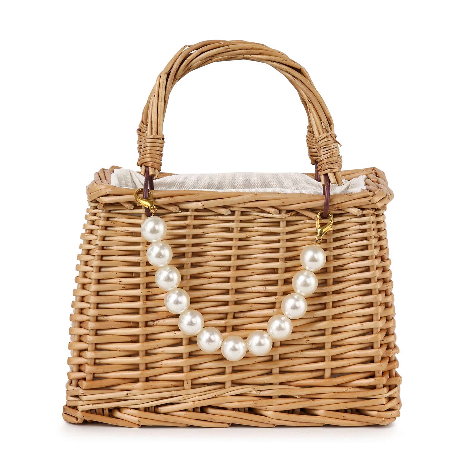 A classic market basket. The timeless silhouette of this versatile tote  expertly crafted and trimmed with an adorable pearl styled handle.