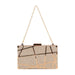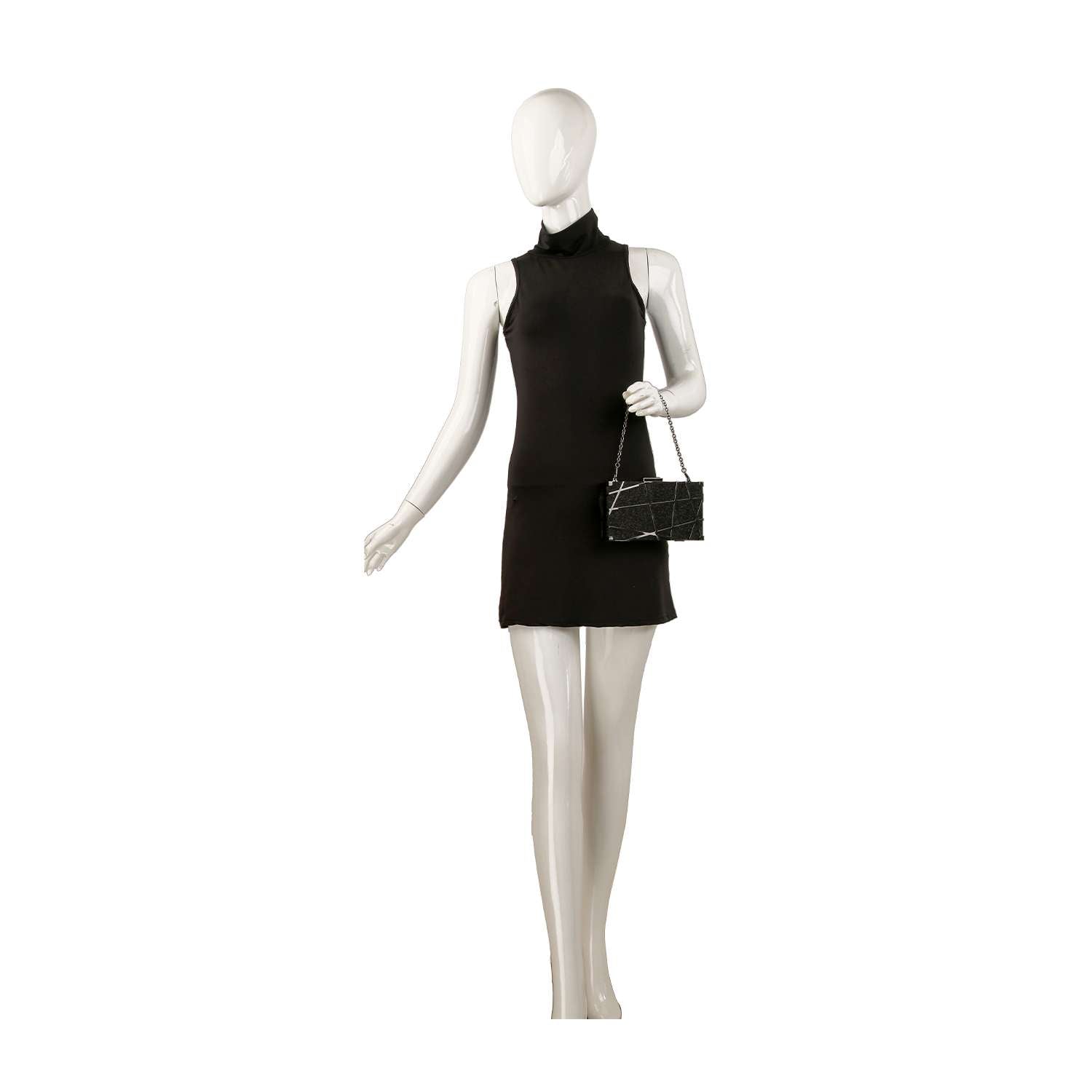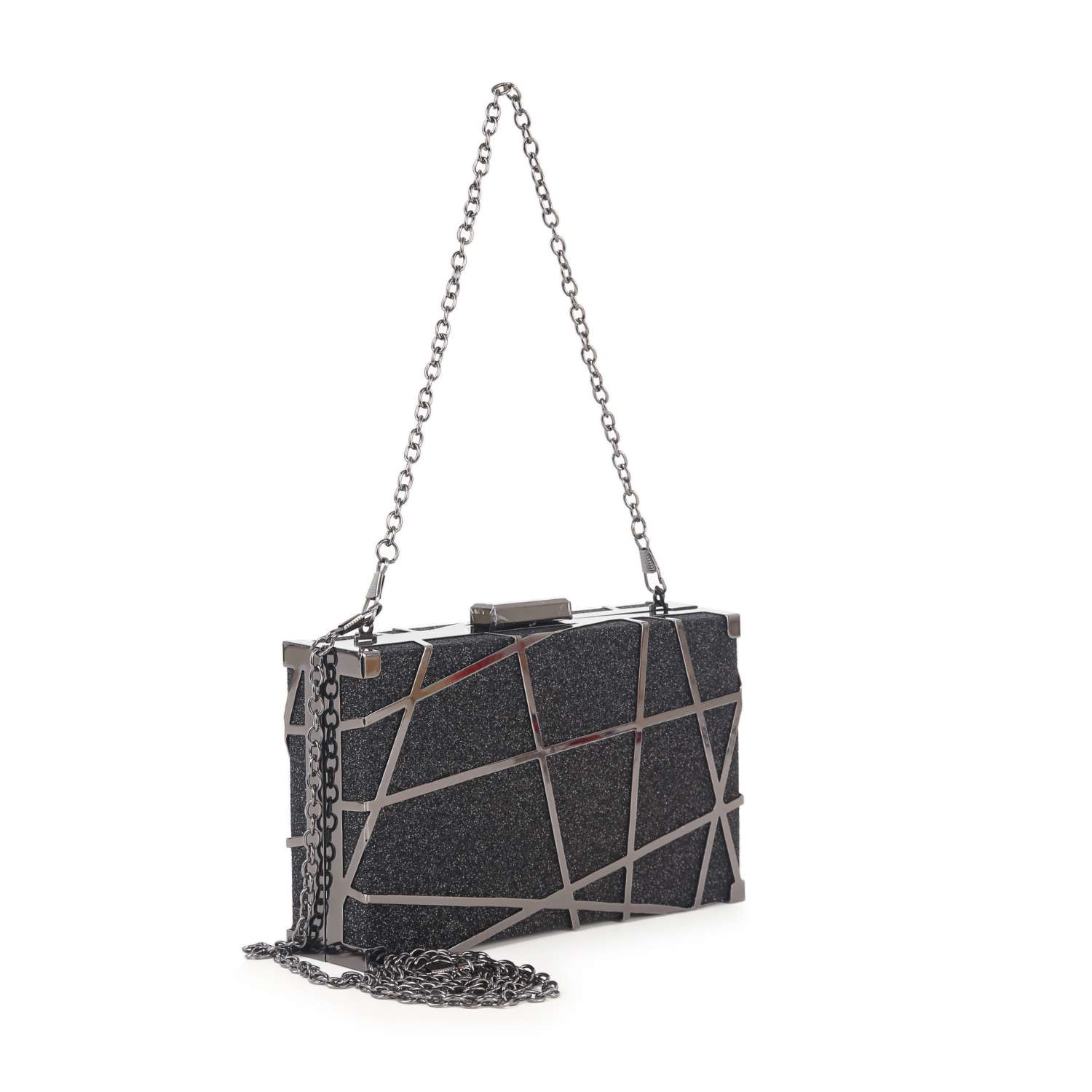 Go for full glamour with this framed clutch that's covered in glitter and trimmed with a modern pattern.