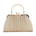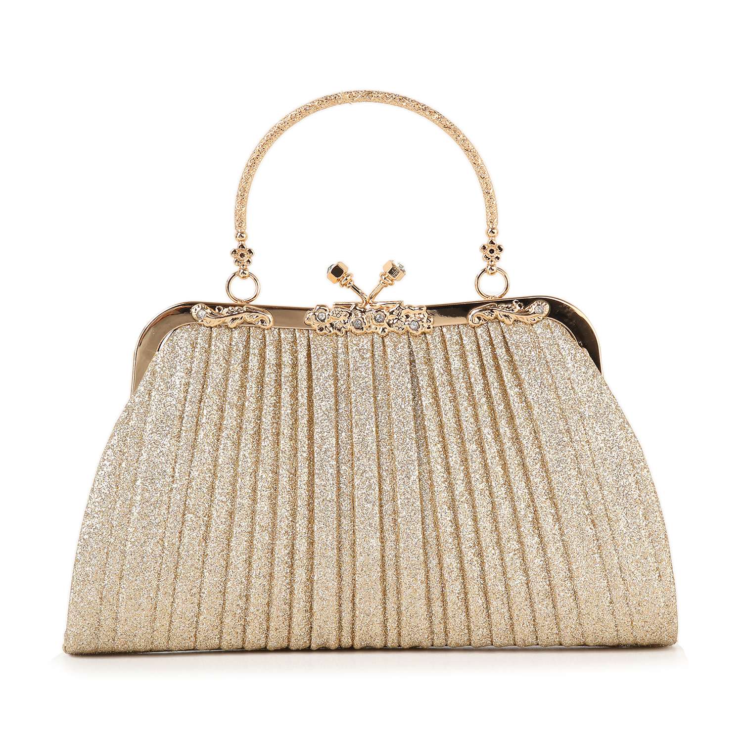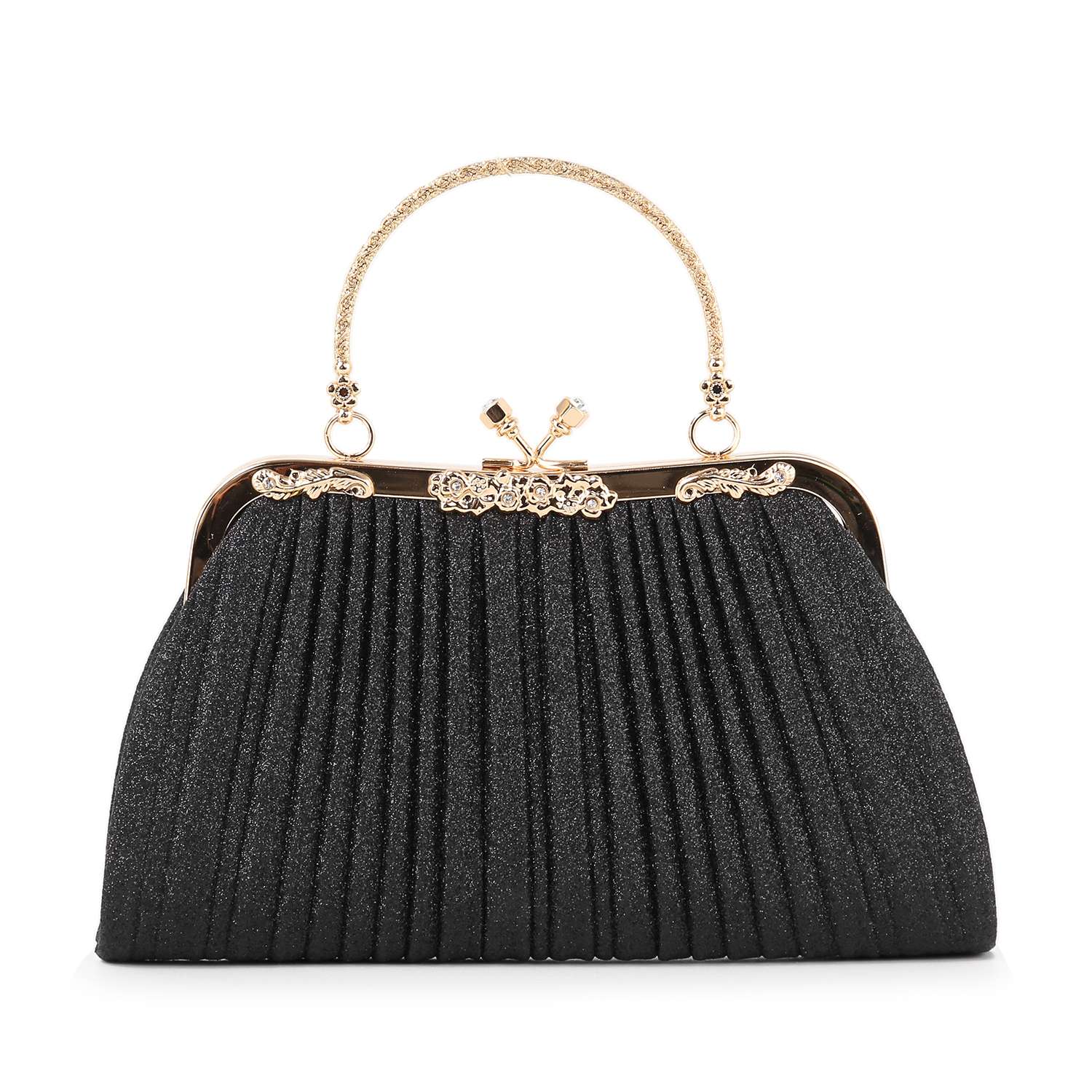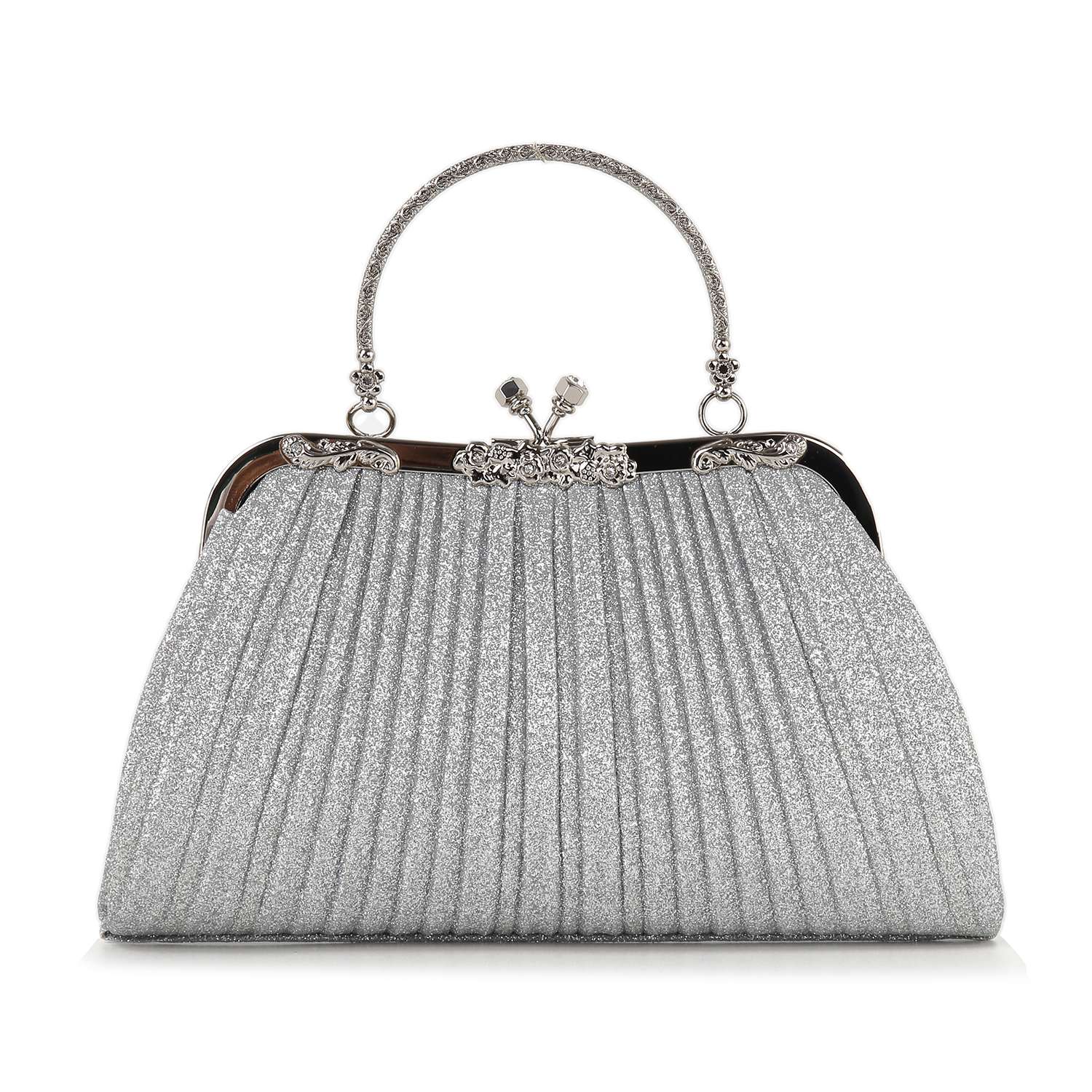 A crystal bloom kiss-lock clasp lends a flash of glamour to a swanky glittery hand tote suspended by a drop-in chain strap.