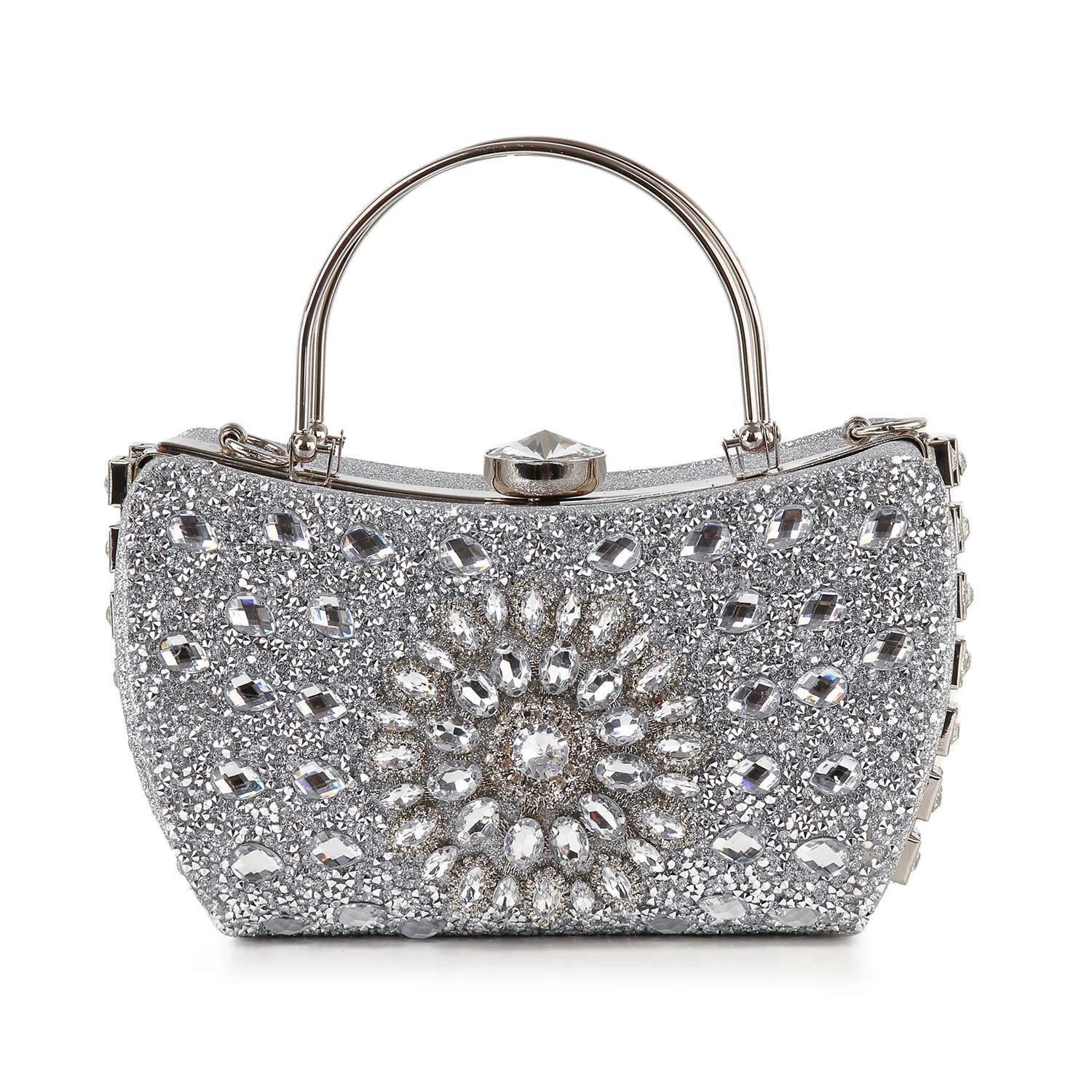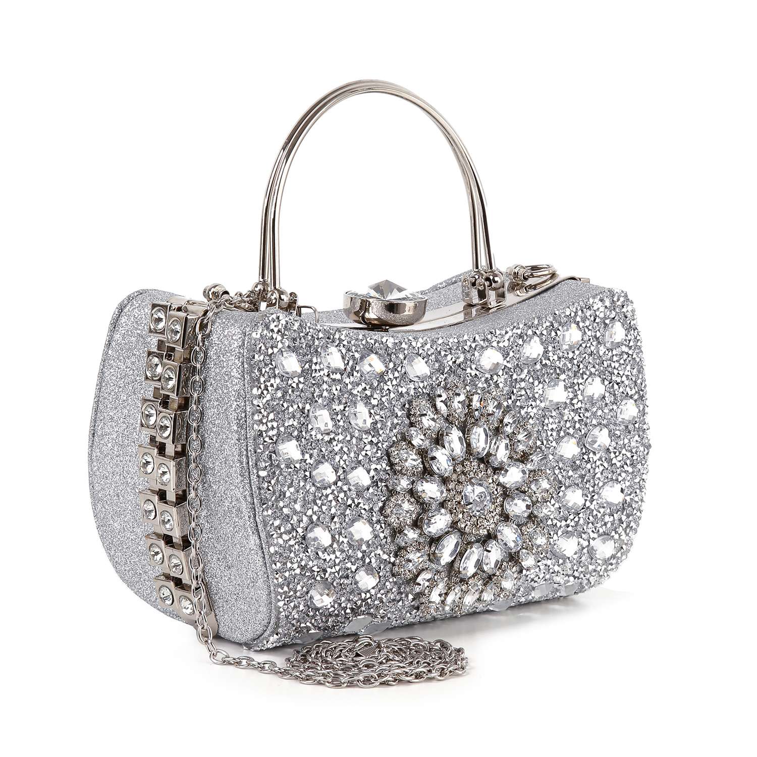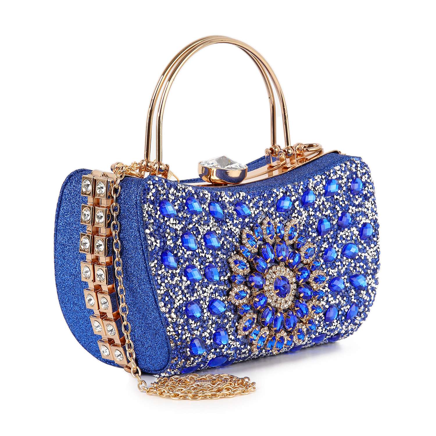 Mesmerizing stones shine on a retro designed evening bag. It's finished with a chain strap. This is what you wear when you want to be noticed!