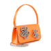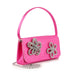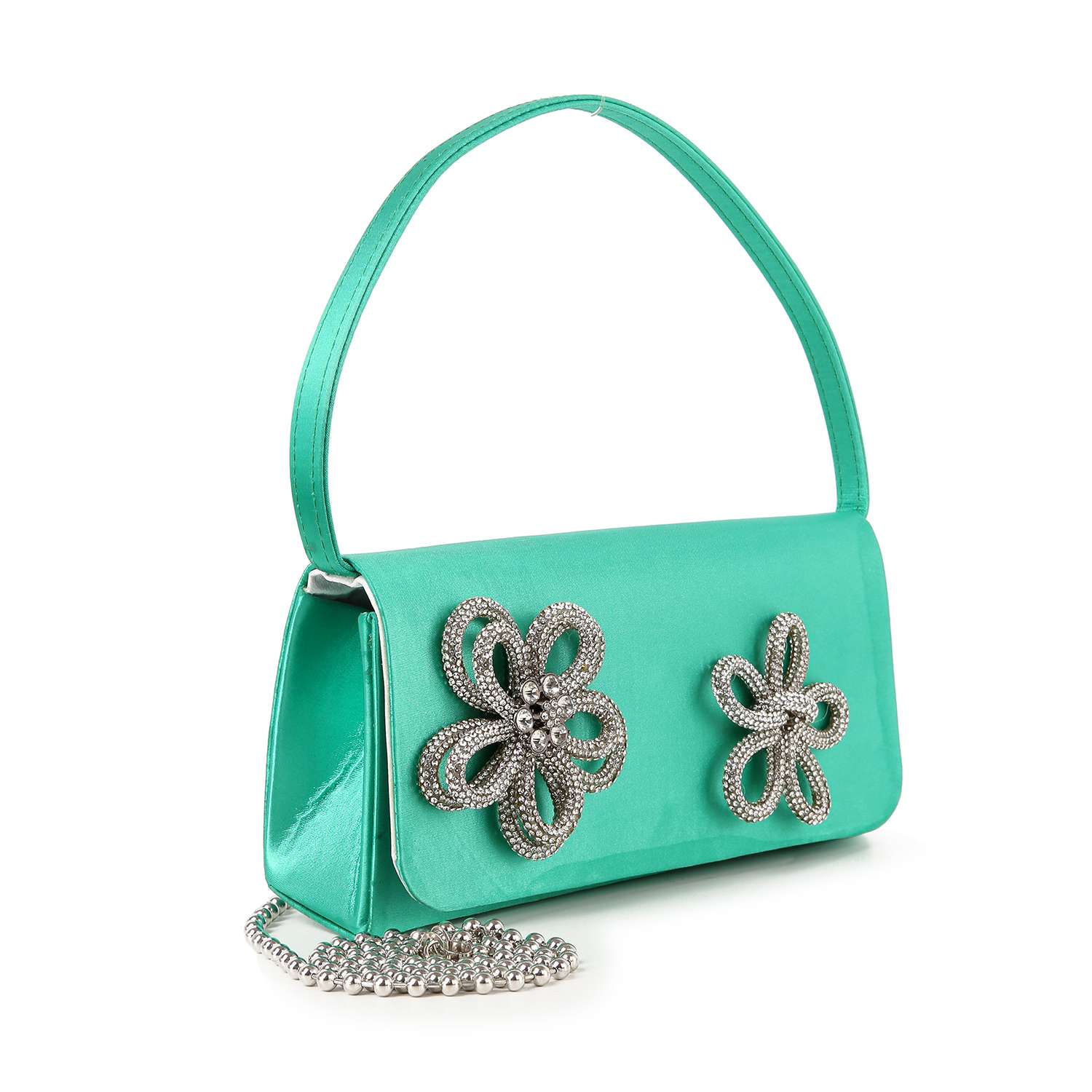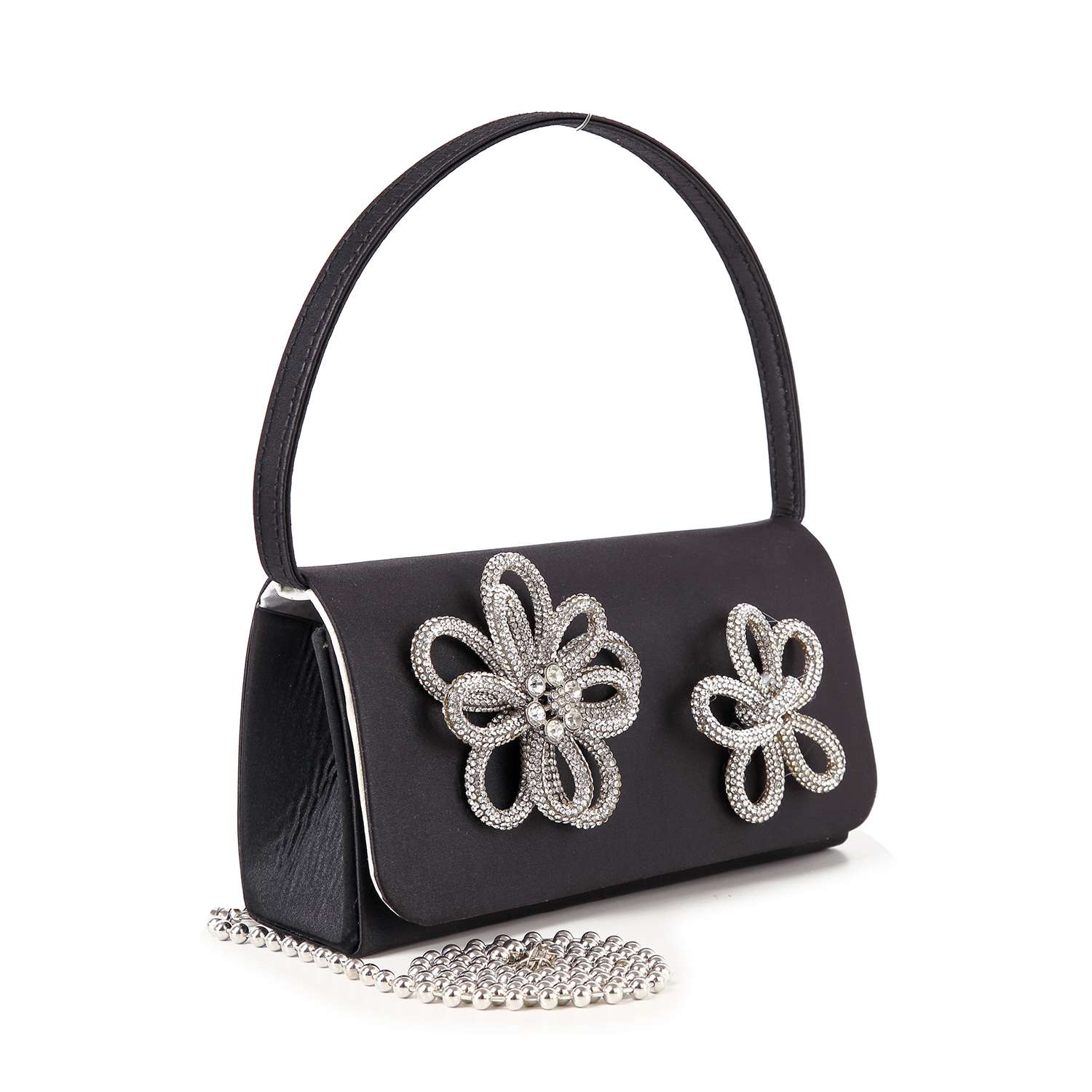 Sparkling raised  flowers embellish an eye-catching, glamorous evening bag suspended from a drop-in chain shoulder strap.