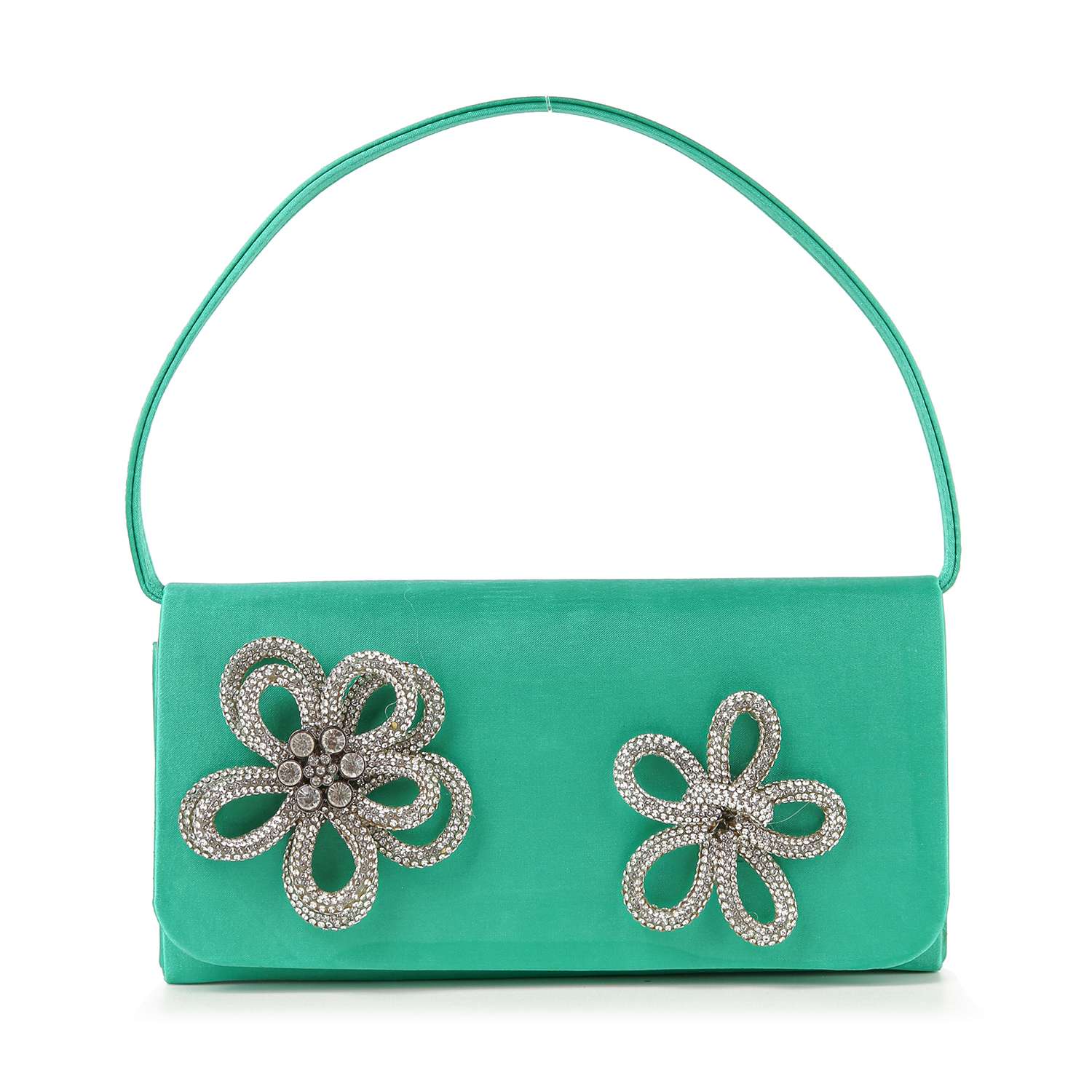 Sparkling raised  flowers embellish an eye-catching, glamorous evening bag suspended from a drop-in chain shoulder strap. 5L...