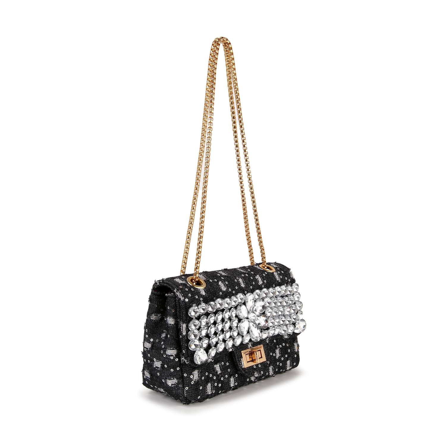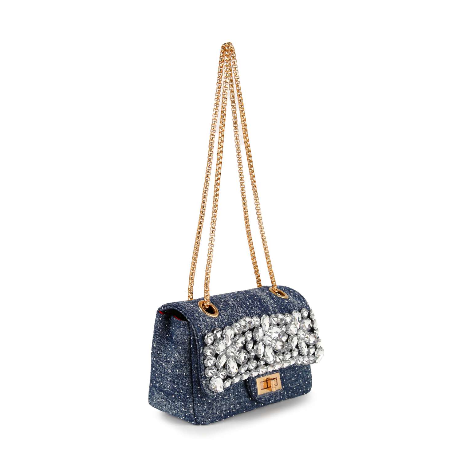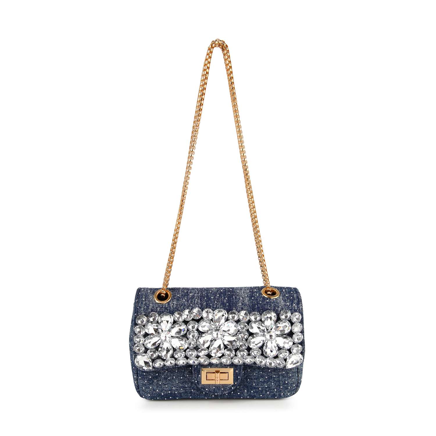 Make a shining statement of gorgeous style with this gemstone denim shoulder bag.