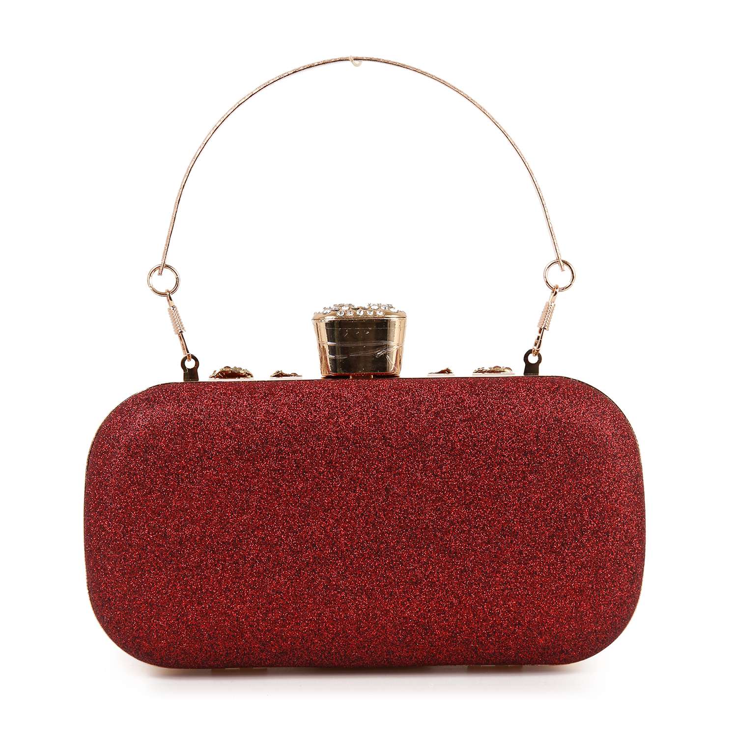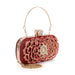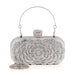 Mesmerizing stones in a retro floral pattern shine across an evening bag that is finished with a metal handle. This is what you wear when you want to be noticed!