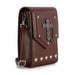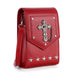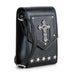 Faux-leather and a cross medallion  make this star studded crossbody ideal for every day.