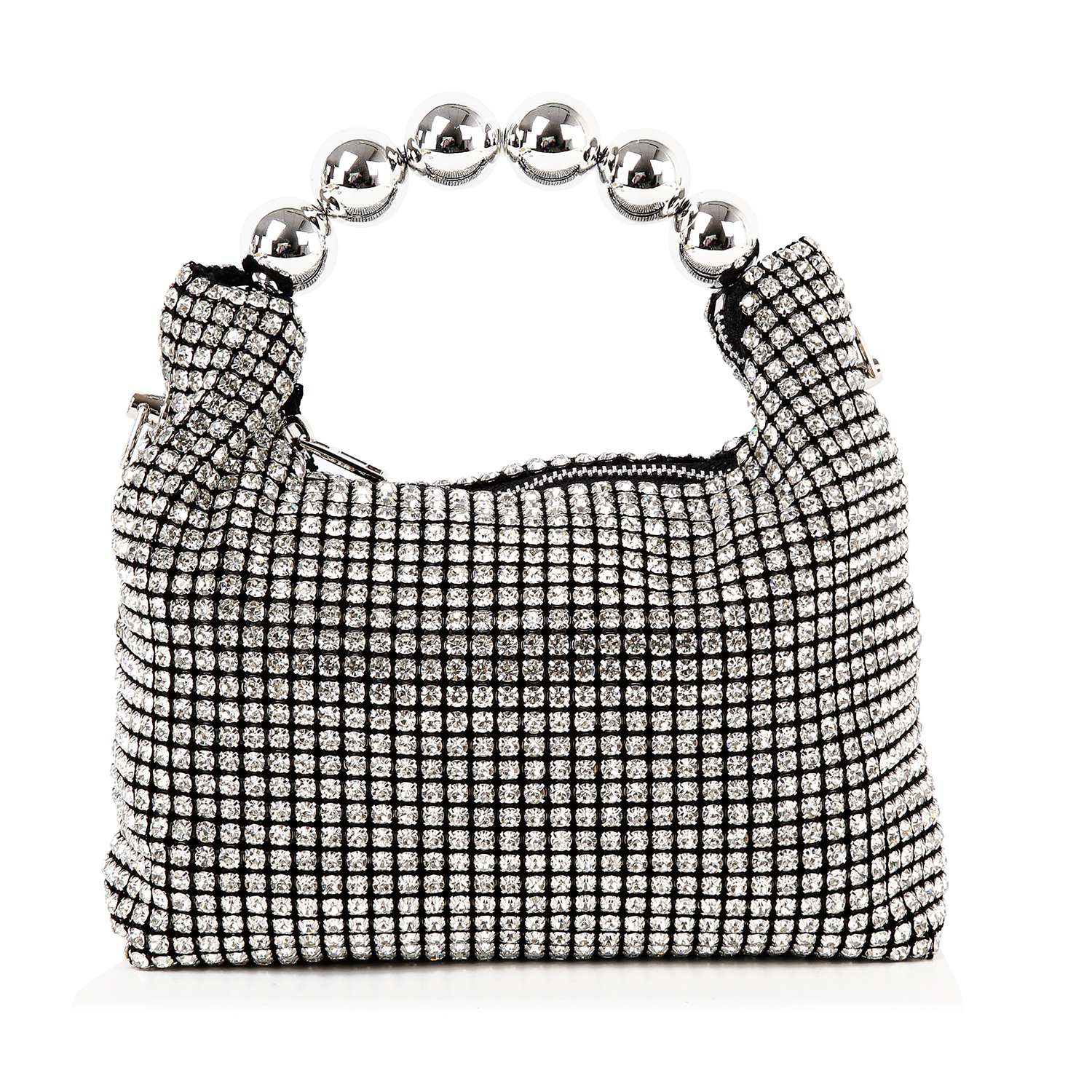 Complete your look with the classic Hobo, updated with a sparkling rhinestone finish and unique beaded handle.  This bag will hold just what you need and includes a longer chain strap for added value.