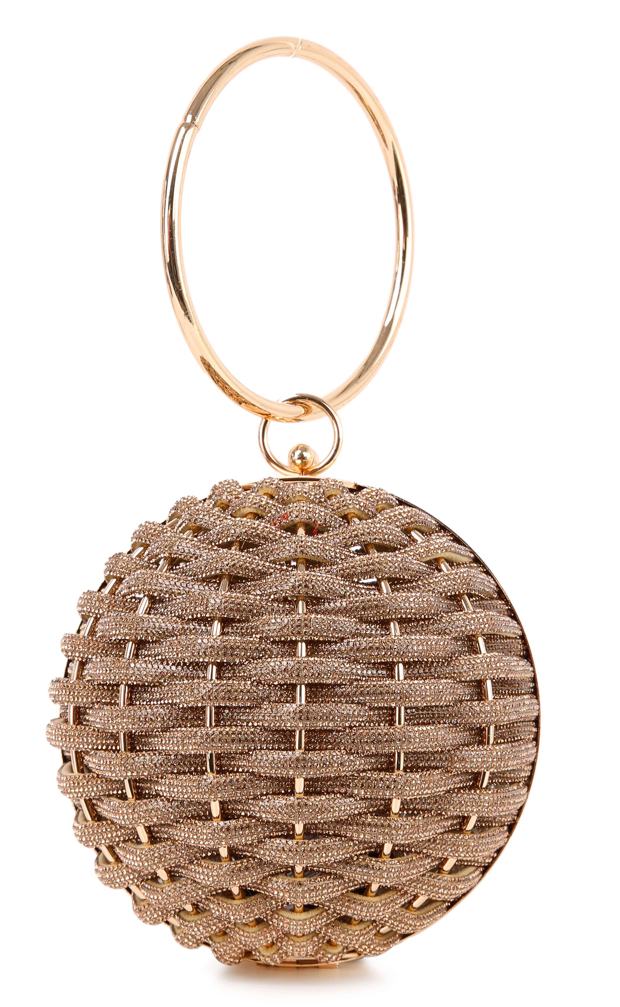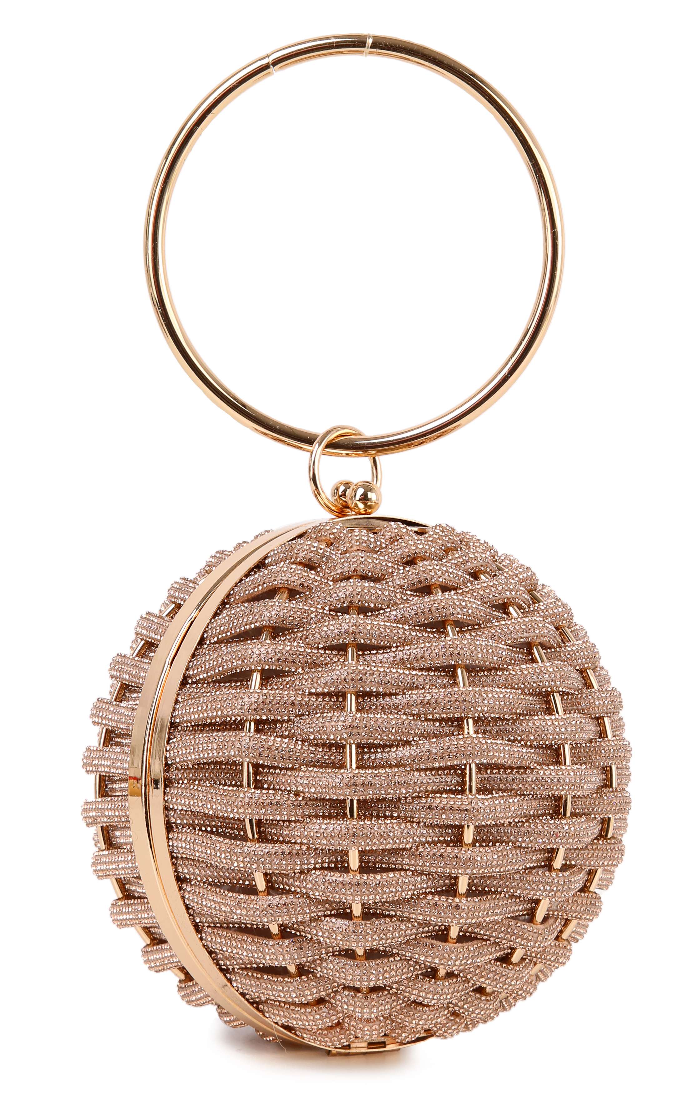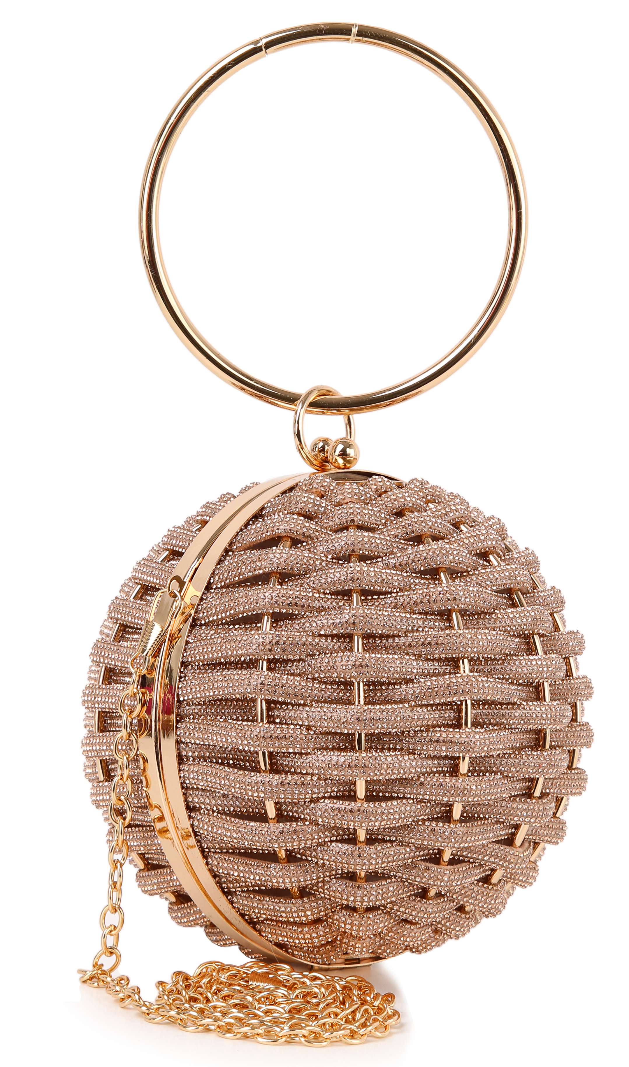 4L  ring handle. 22L detachable chain strap. Clasp closure. Gold toned hardware.  Approximate Size: 5L x 6H...