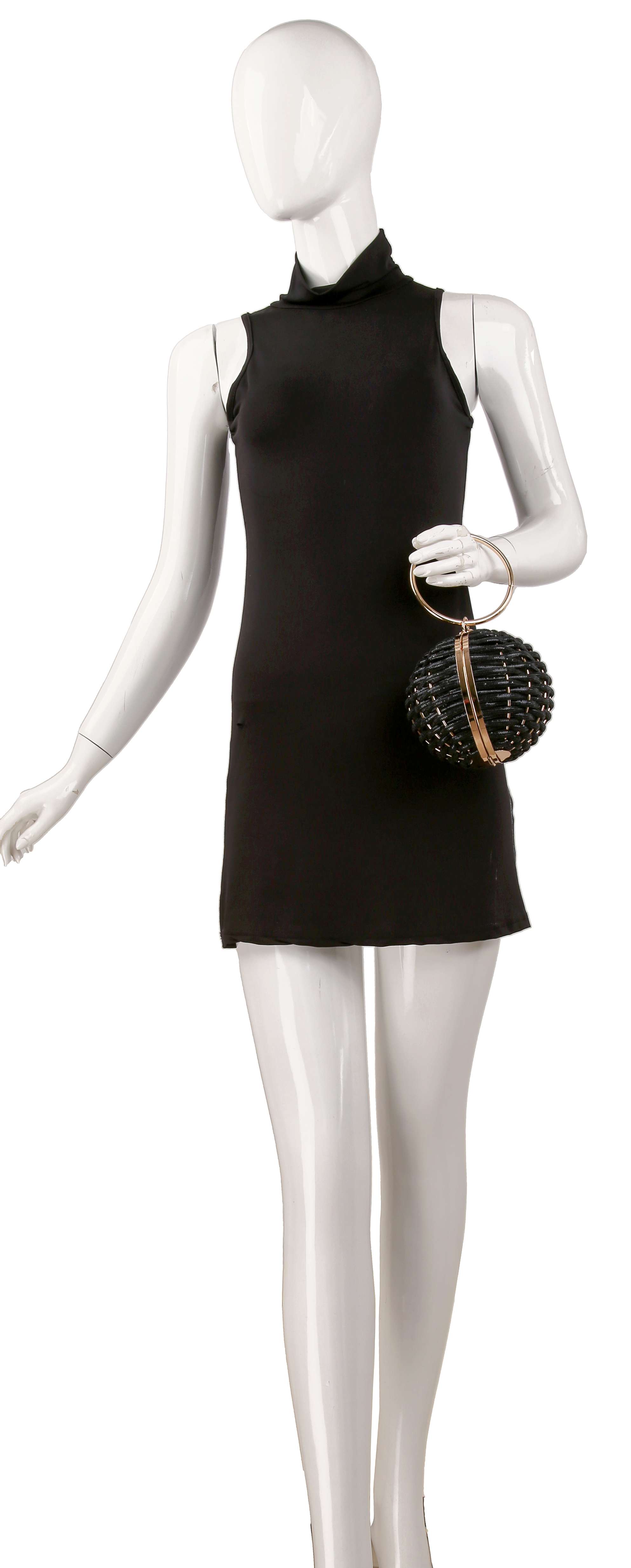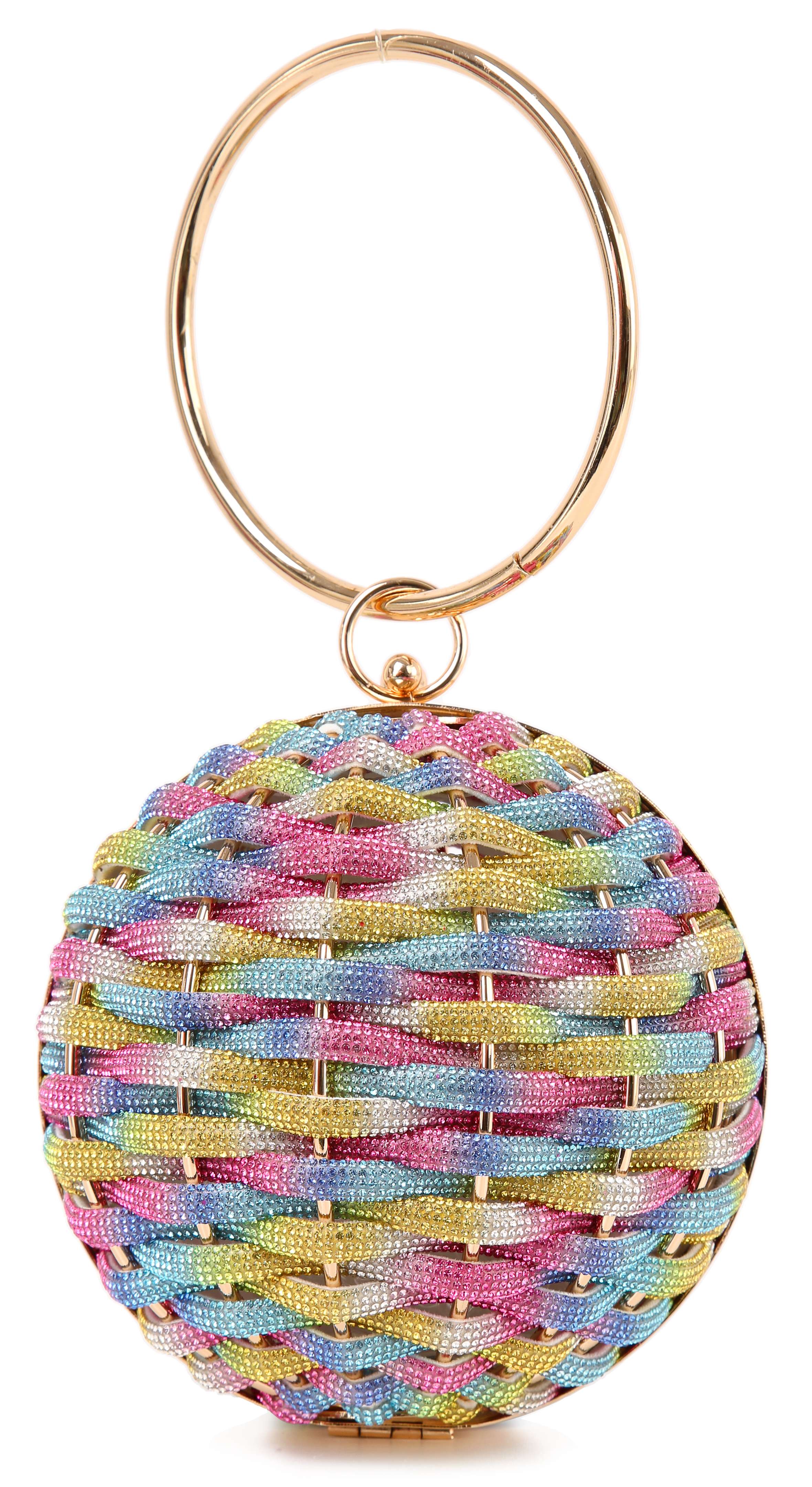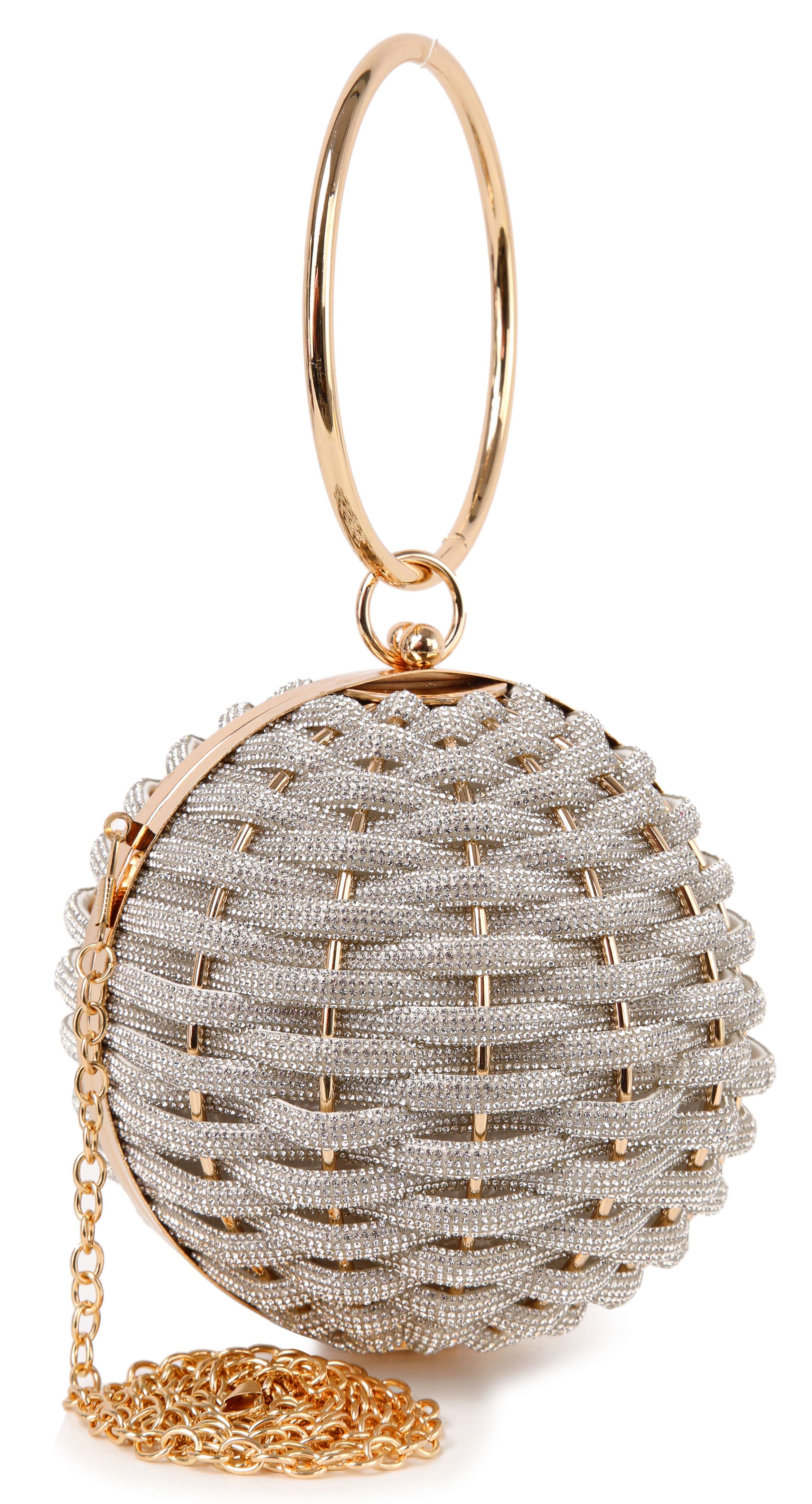 4L  ring handle. 22L detachable chain strap. Clasp closure. Gold toned hardware.  Approximate Size: 5L x 6H...