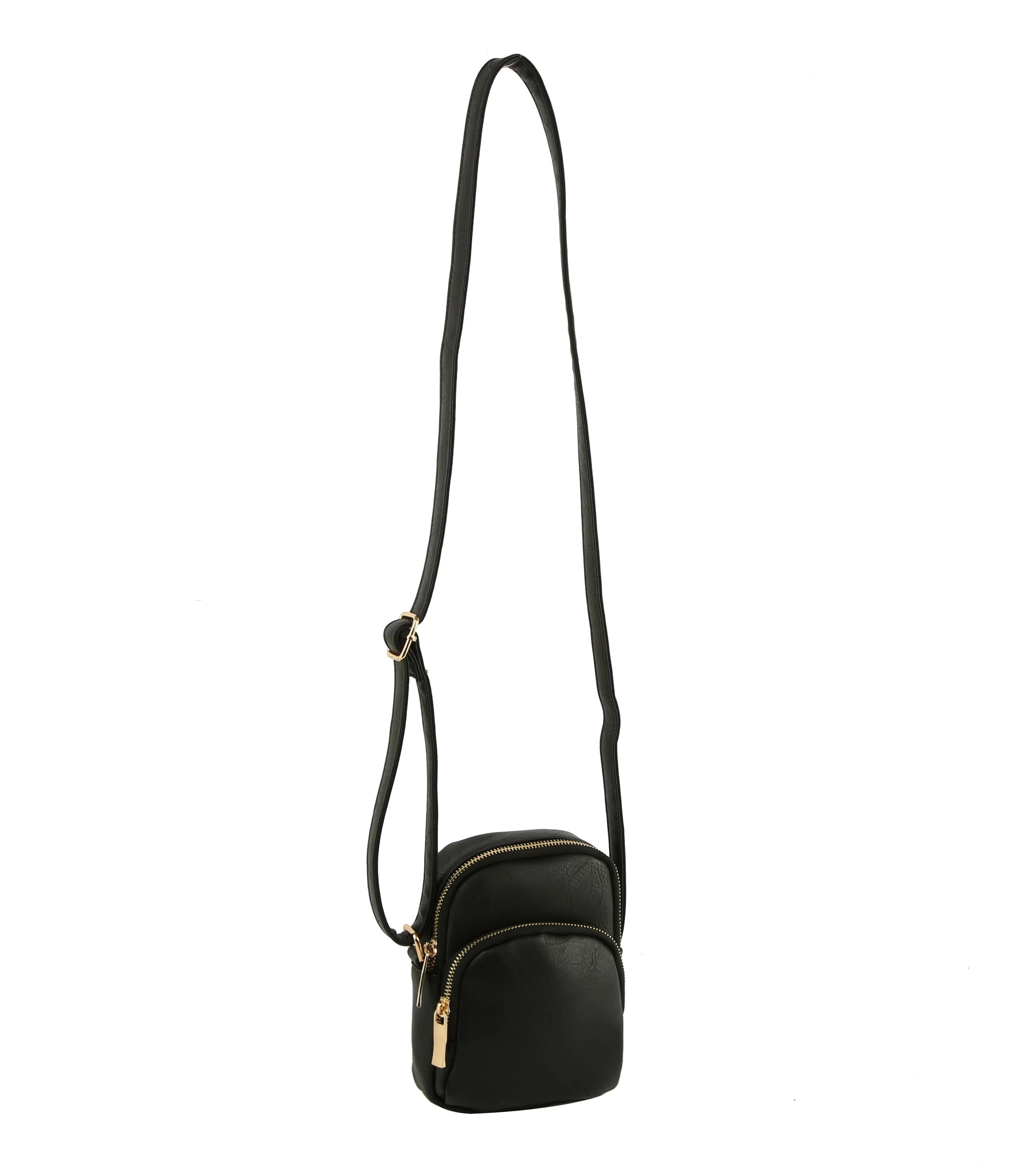 1 front zip pocket.  22L adjustable strap. Faux leather with lined interior. Top zip closure. Gold...