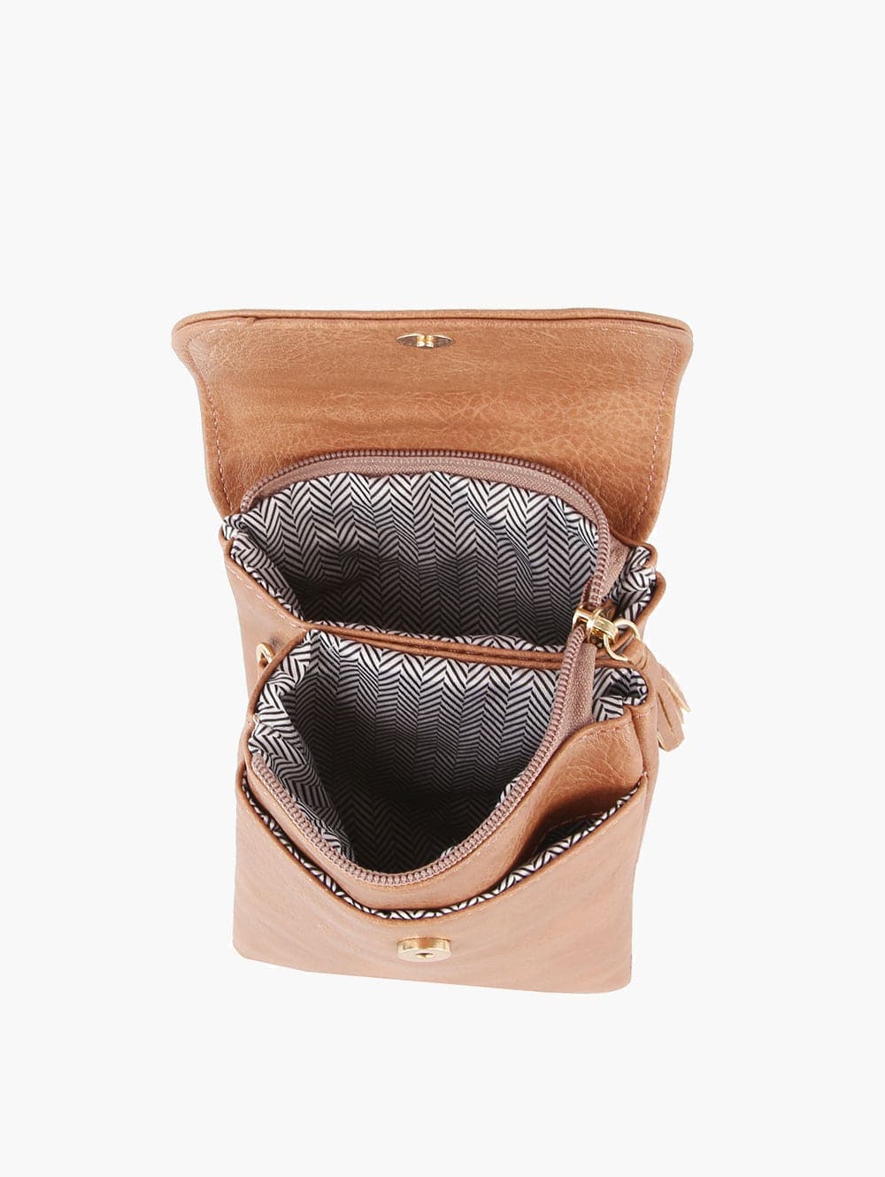 1 back zip pocket. 1 front slip pocket 22L adjustable strap. Faux leather with lined interior. Dual compartment...