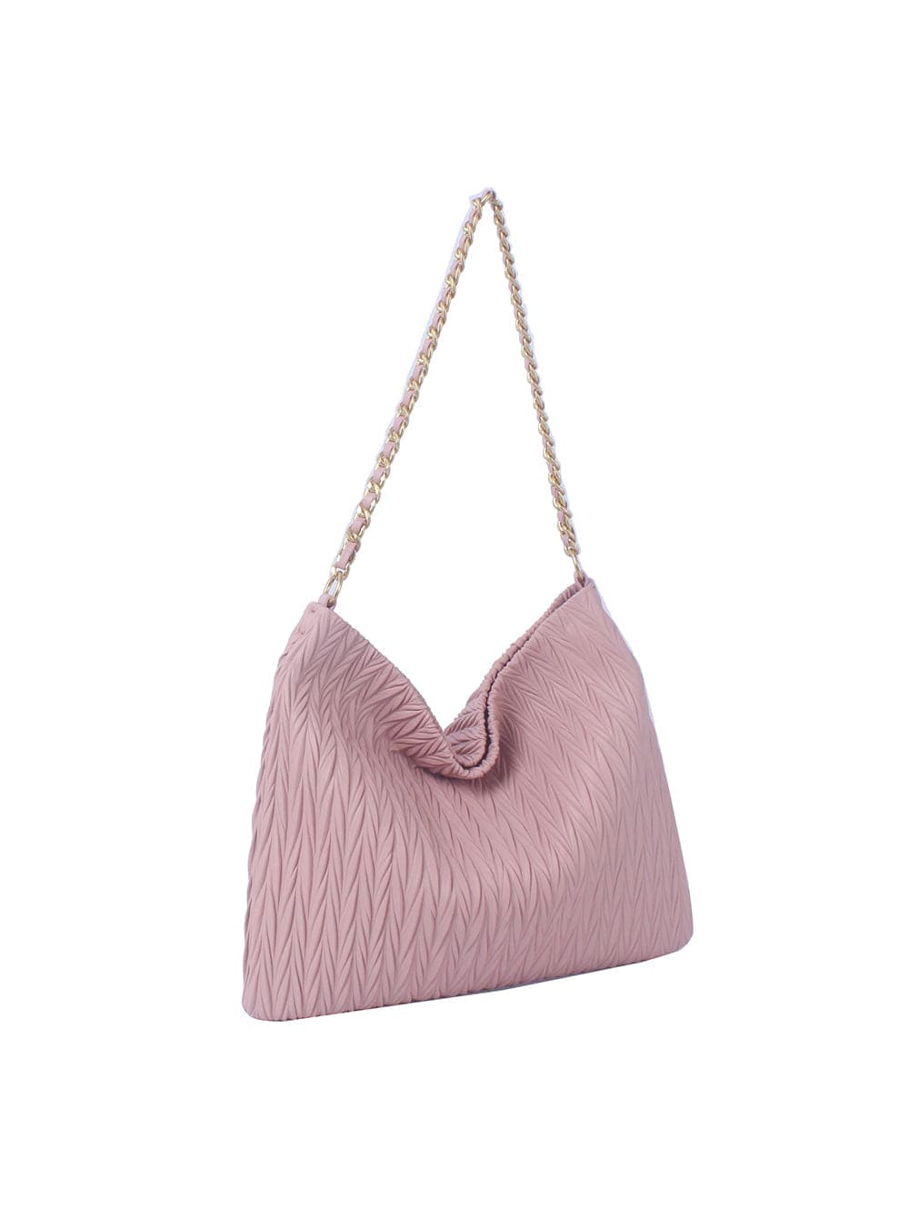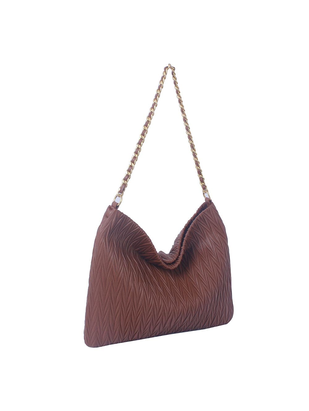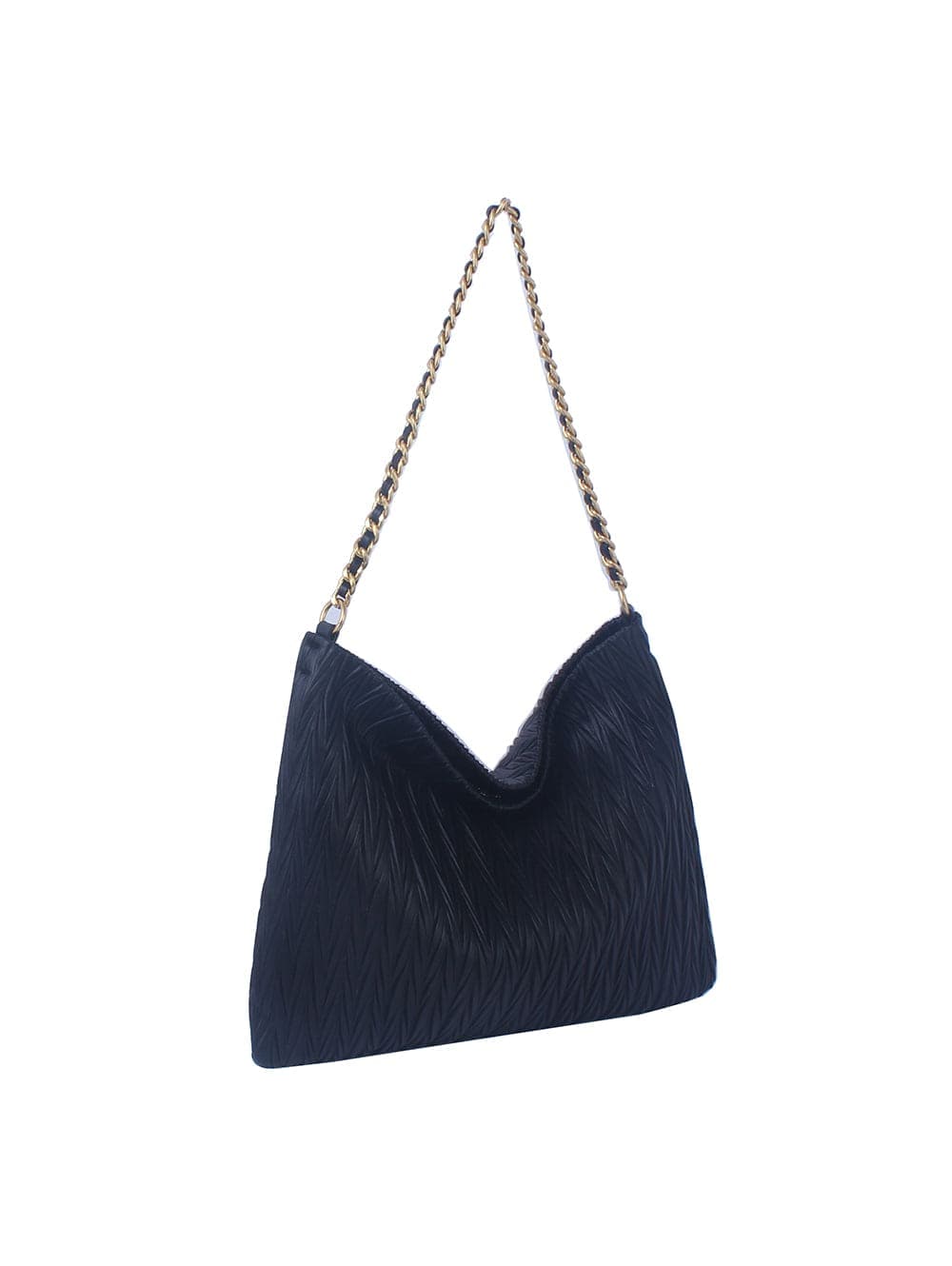 Chain handle. 22L detachable strap. Faux leather with lined interior. 2 interior slip pockets and 1 zip...