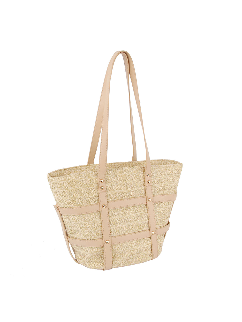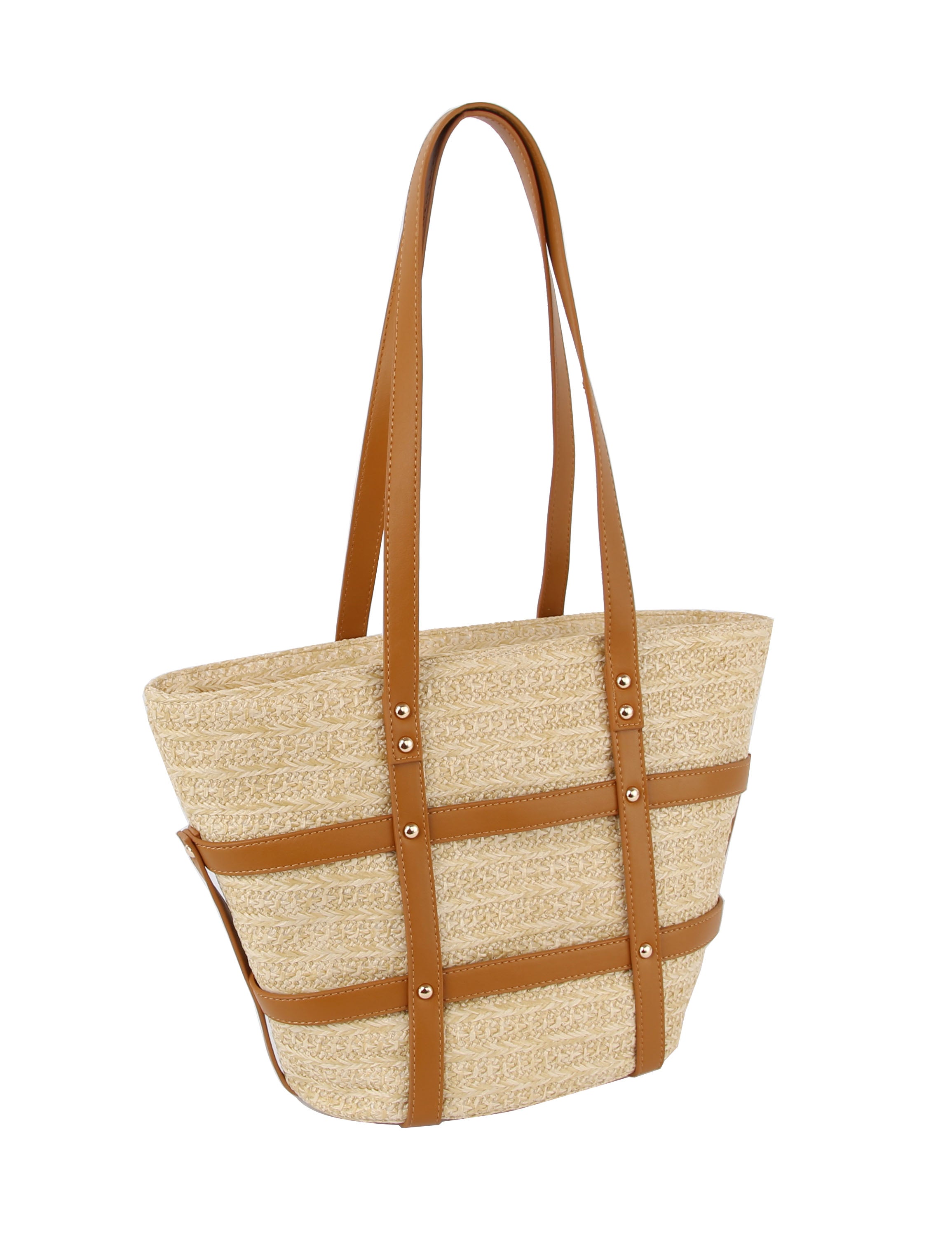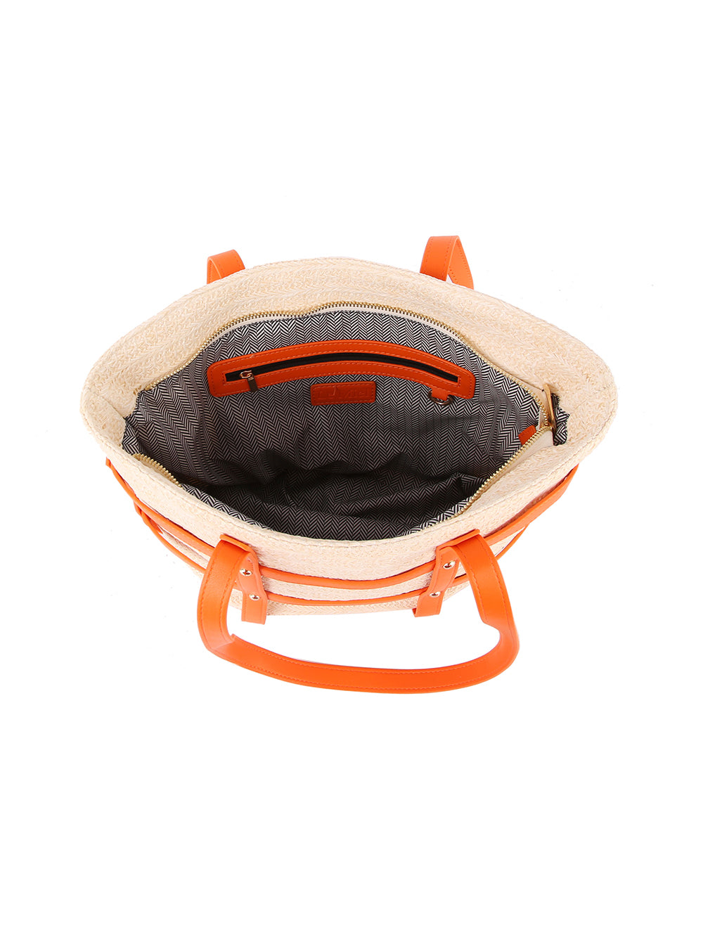 11.5L double handles.  Straw construction with faux leather trim with lined interior. 2 interior slip pockets and...