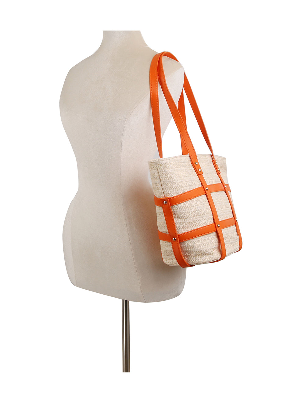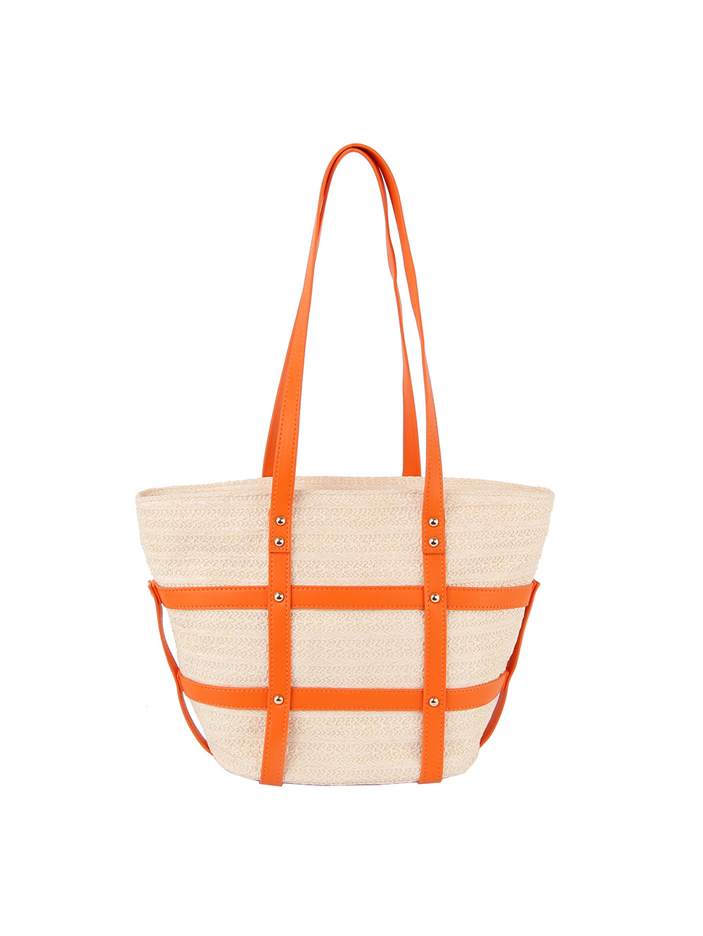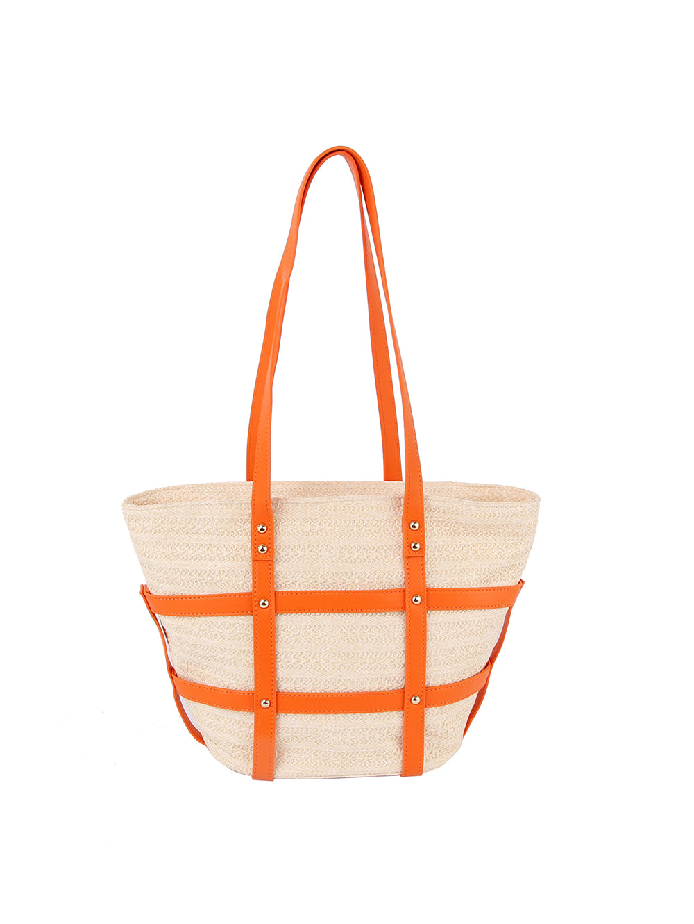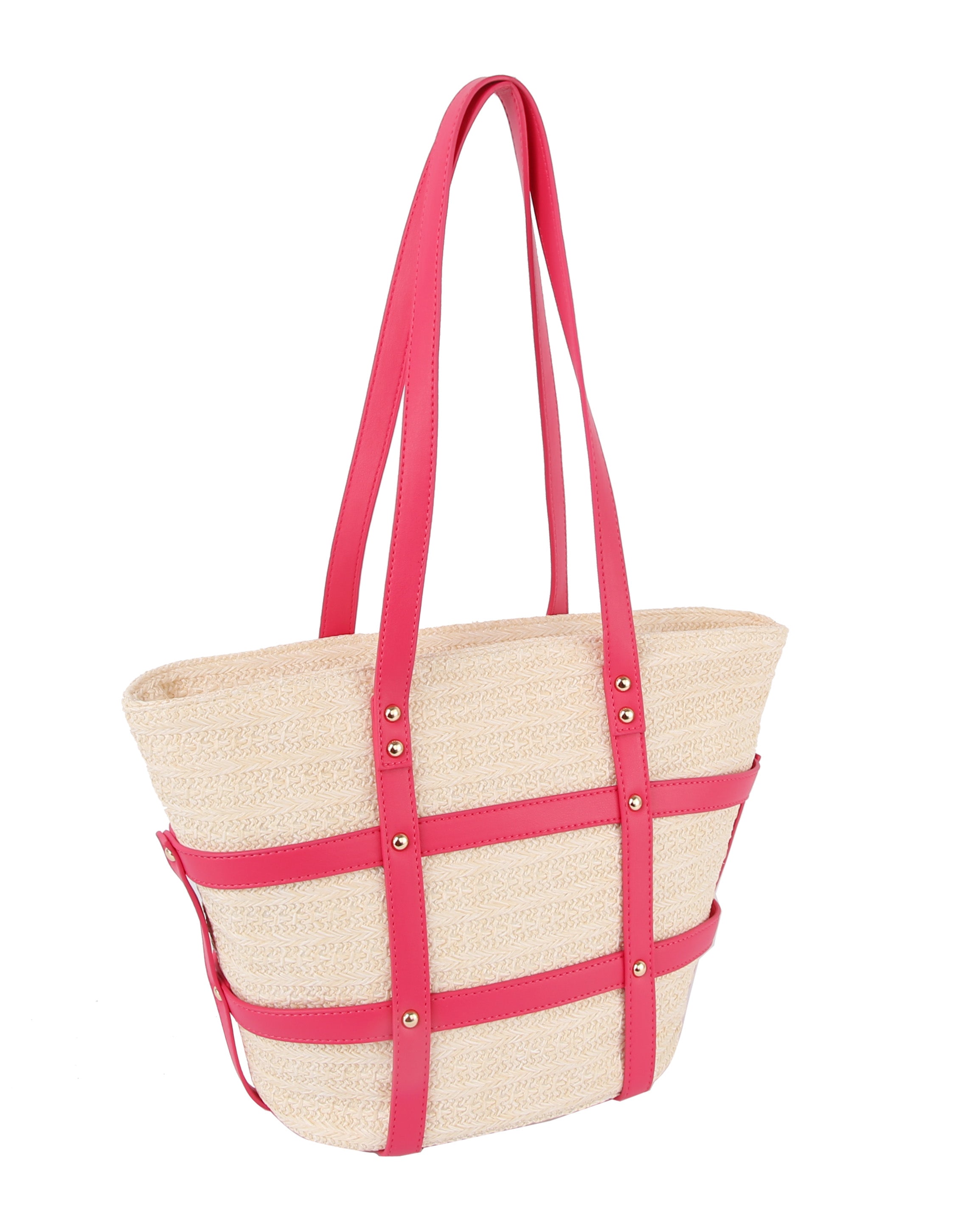 11.5L double handles.  Straw construction with faux leather trim with lined interior. 2 interior slip pockets and...