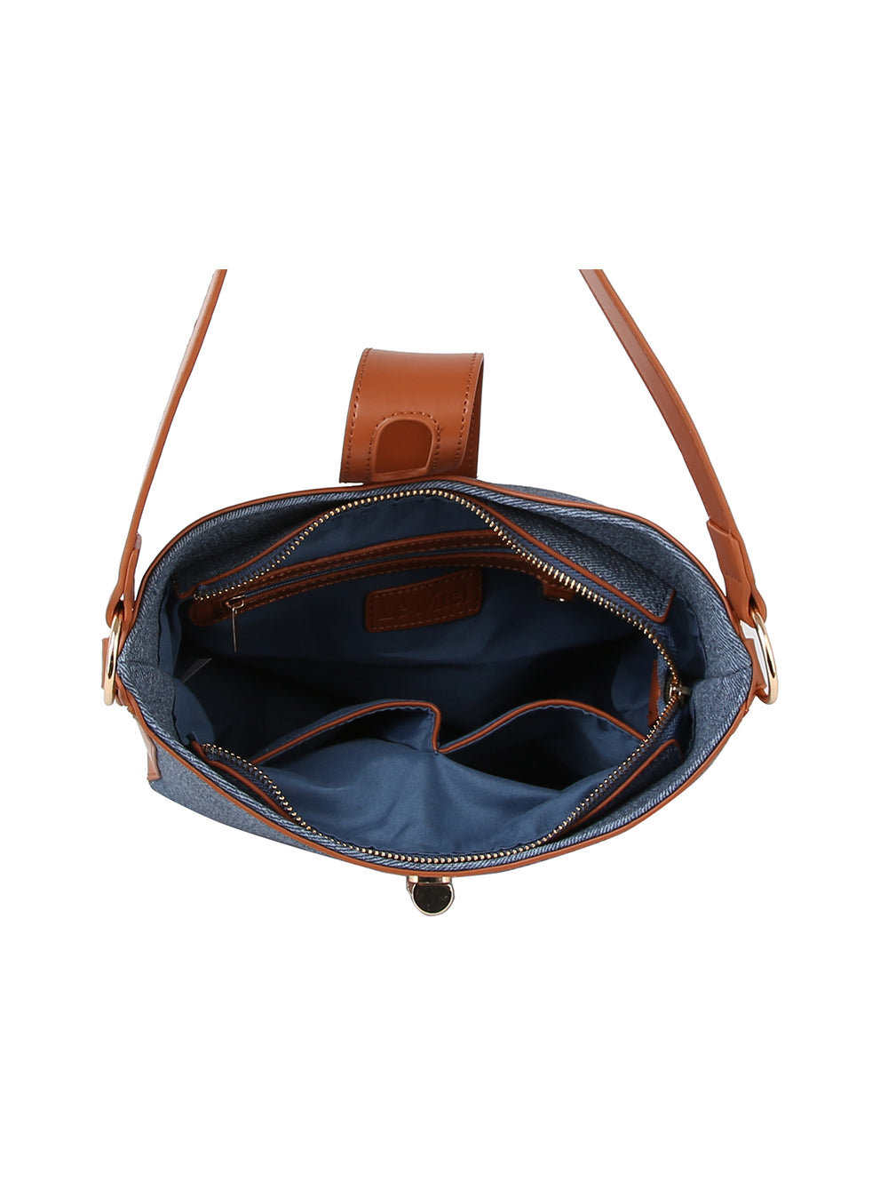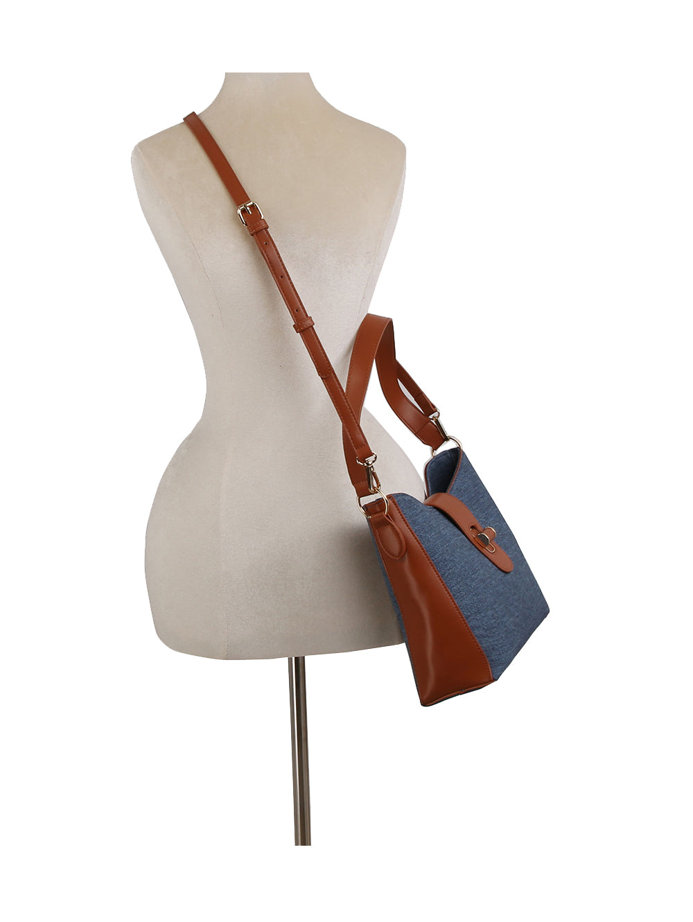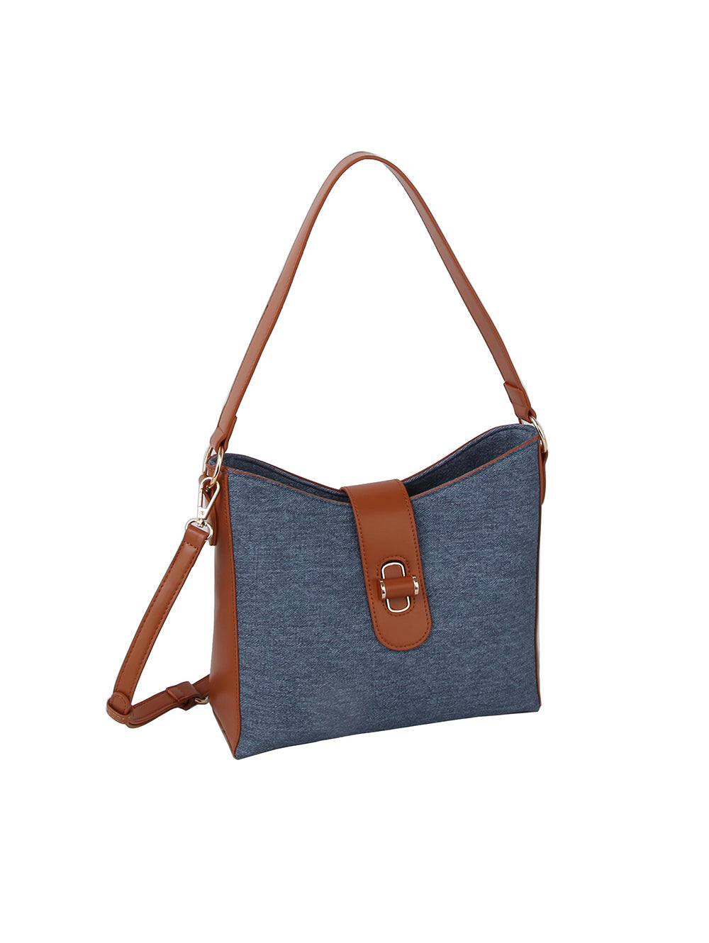Denim construction with faux leather trim with lined interior.
