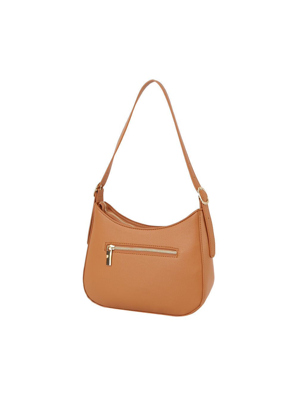 1 back zip pocket. Single strap. Faux leather with lined interior. 2 interior slip pockets and 1...
