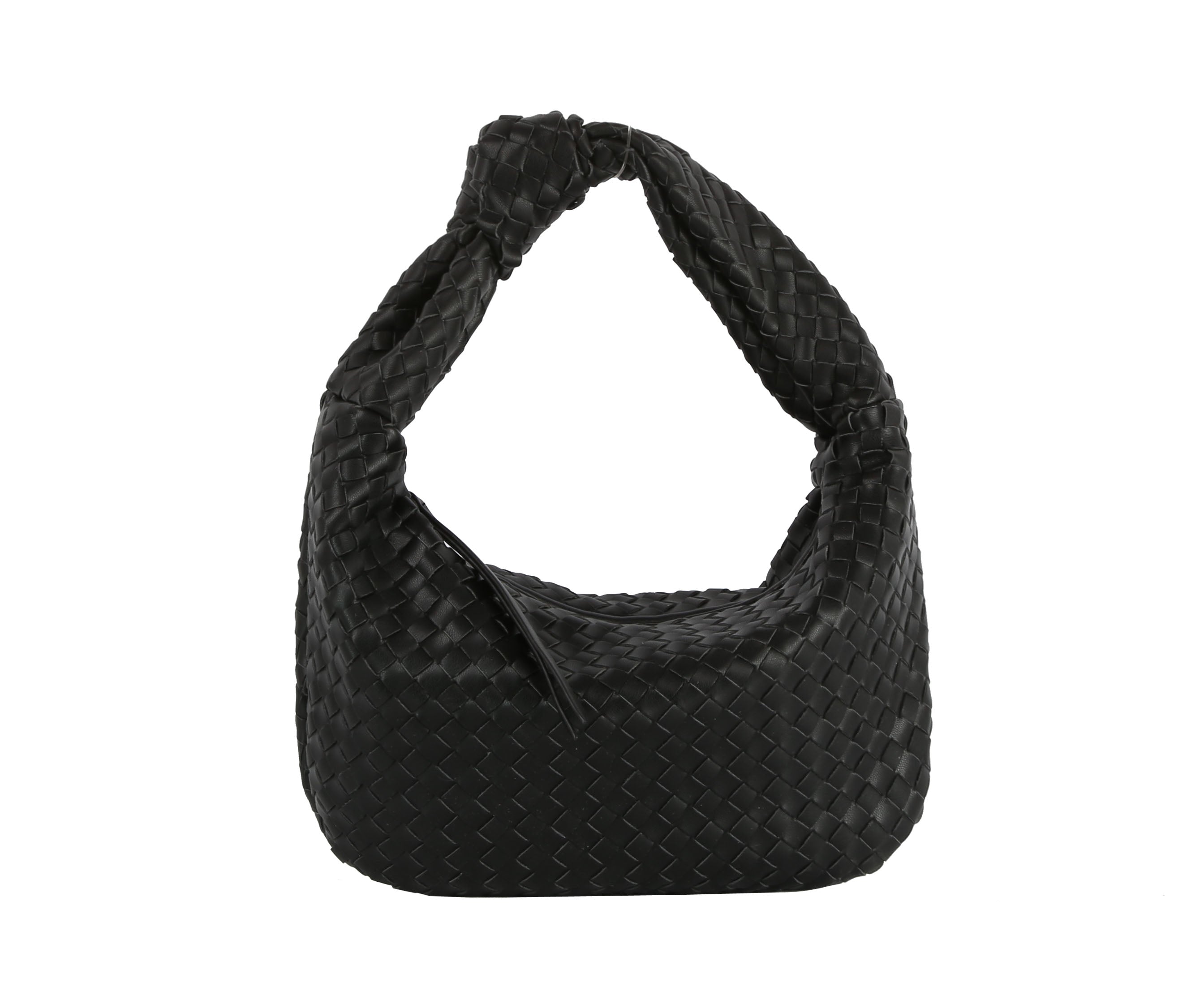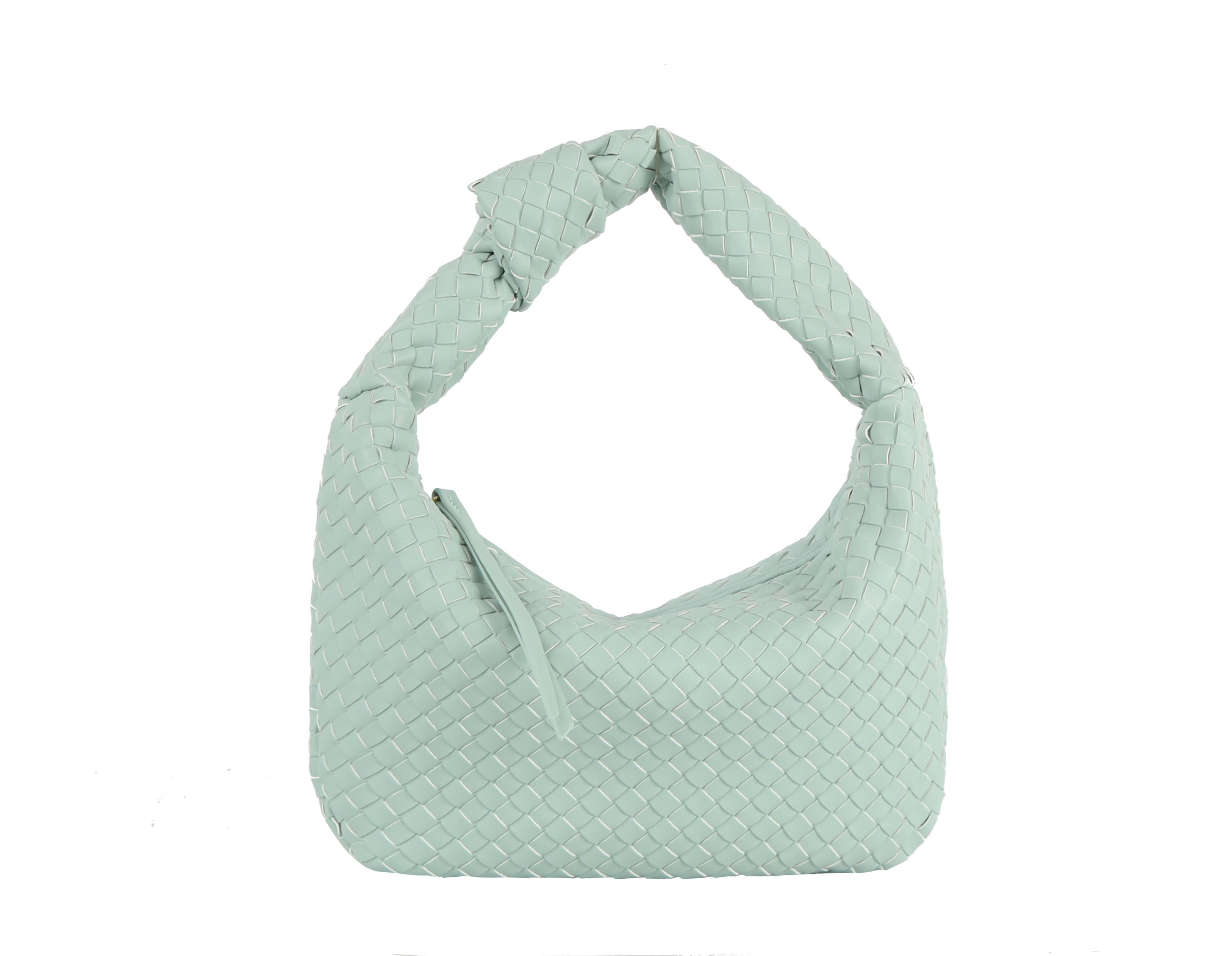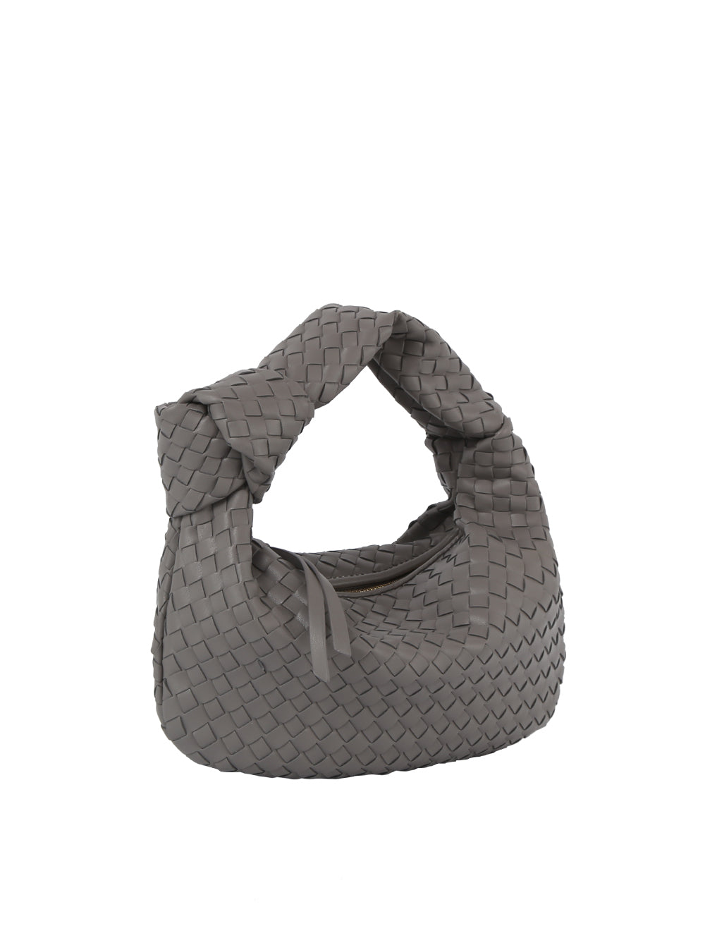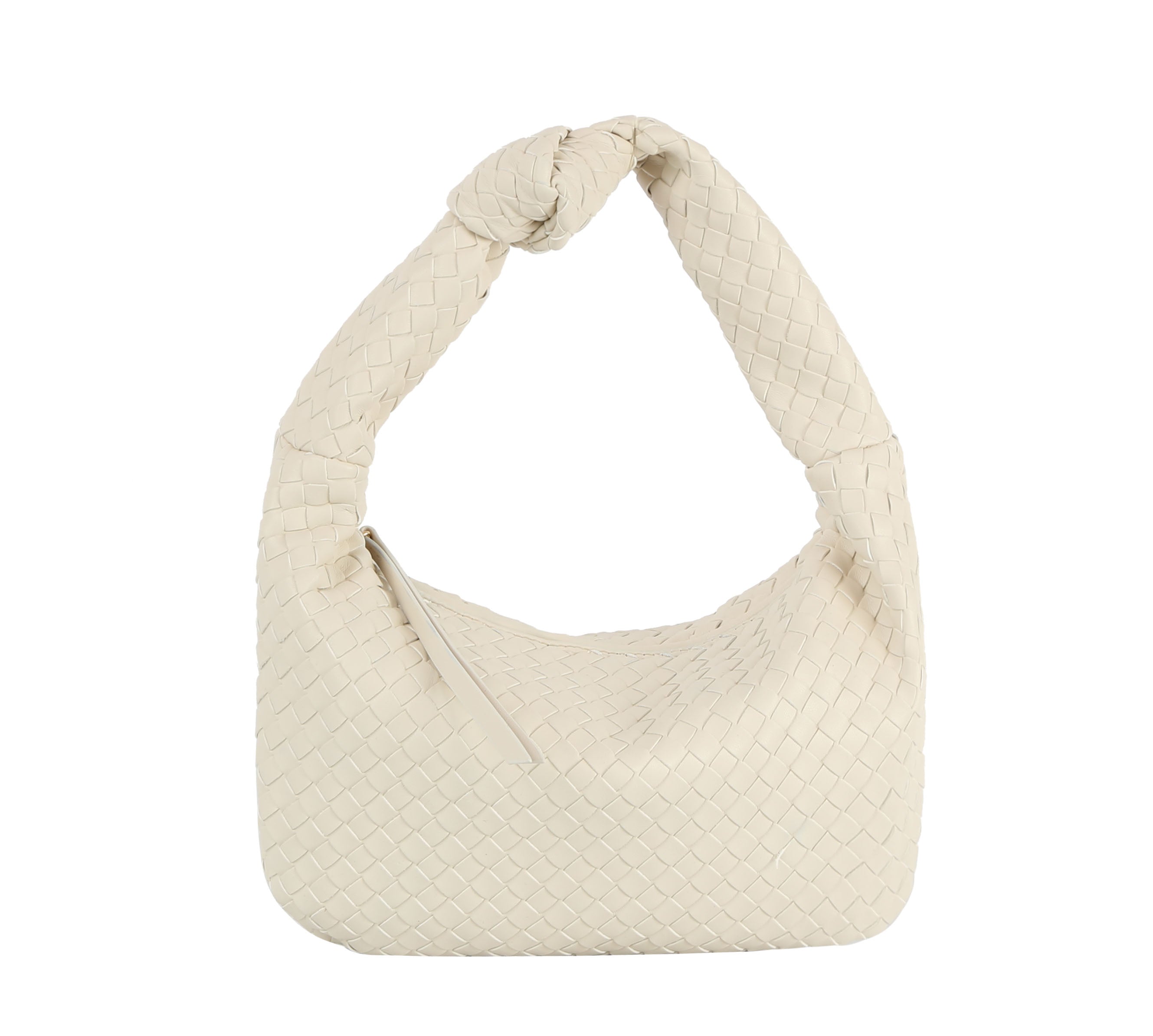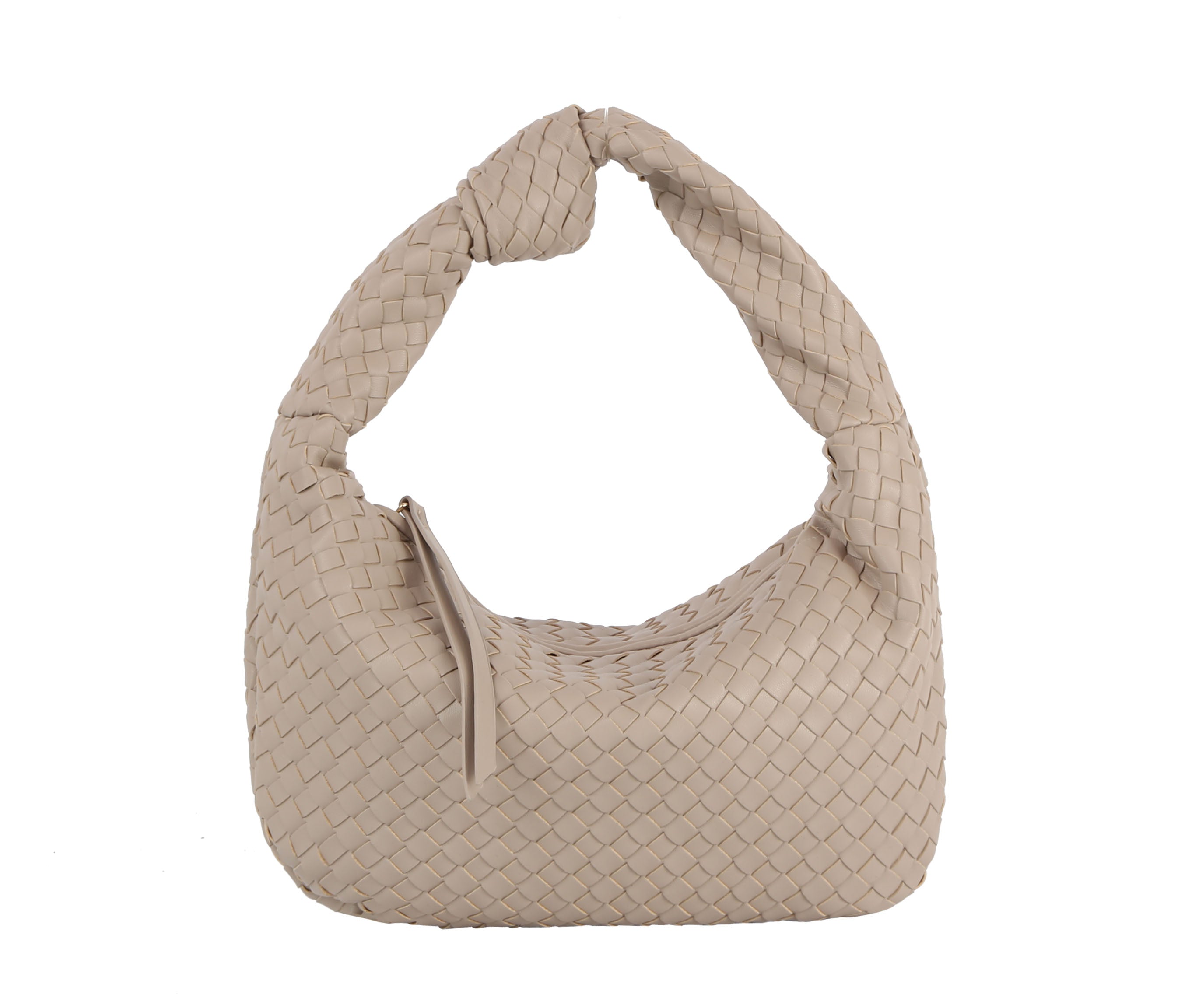 PVC Top zip closure Woven body Knotted handle Solid lining with inner pocket SIZE: Depth: 8 Height:...