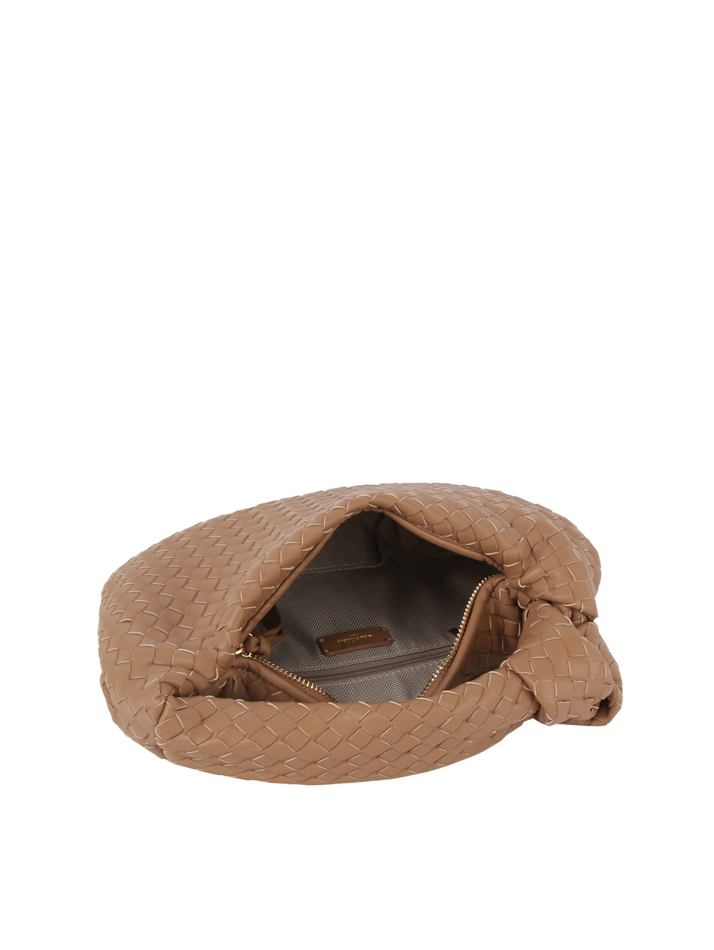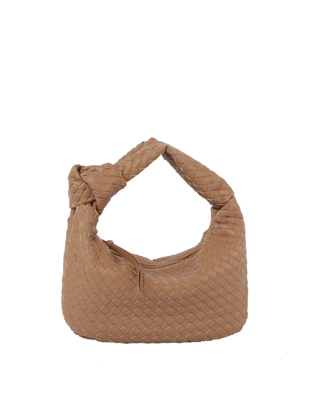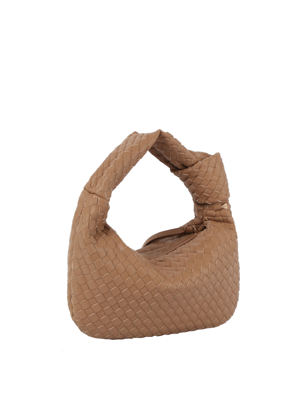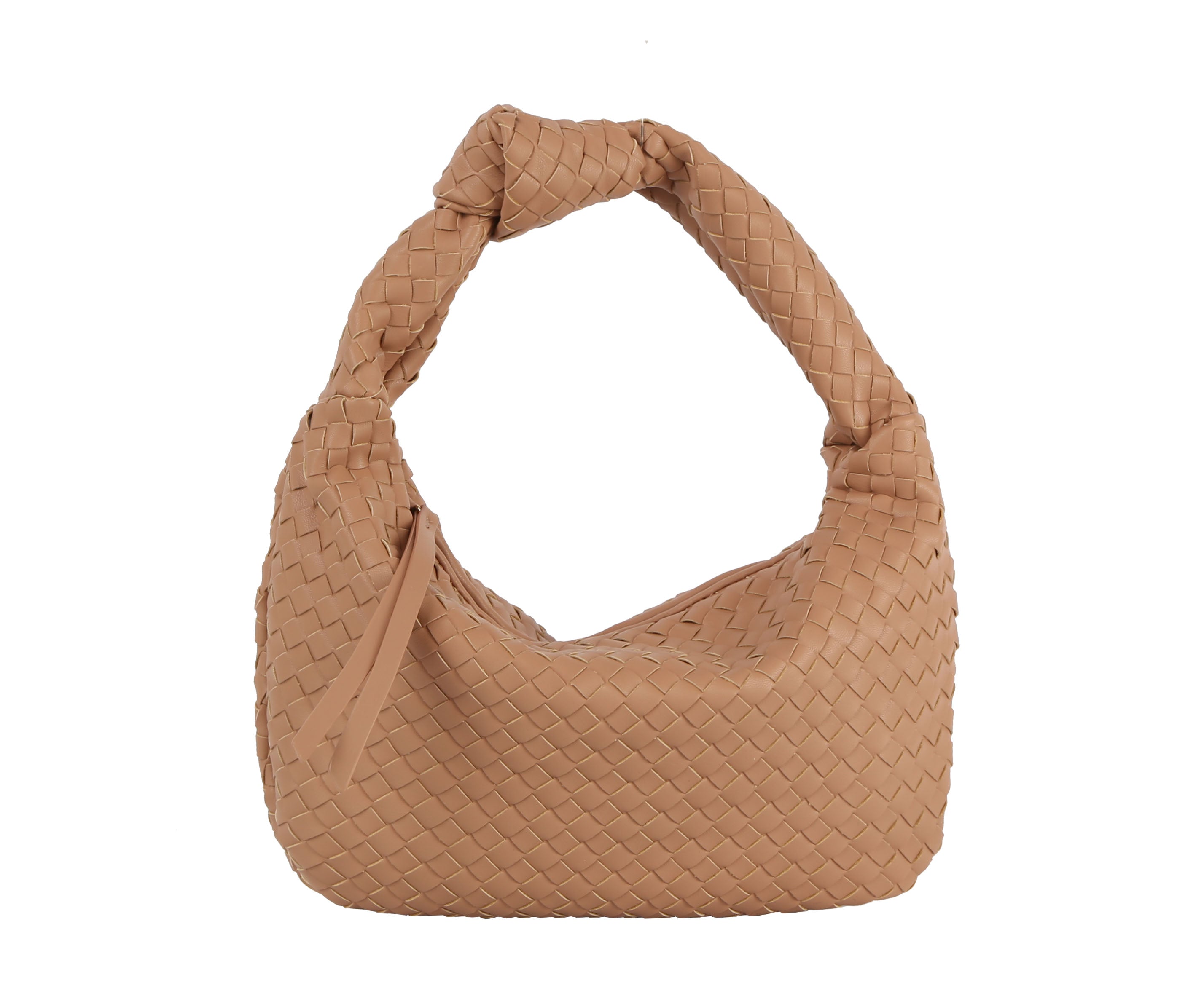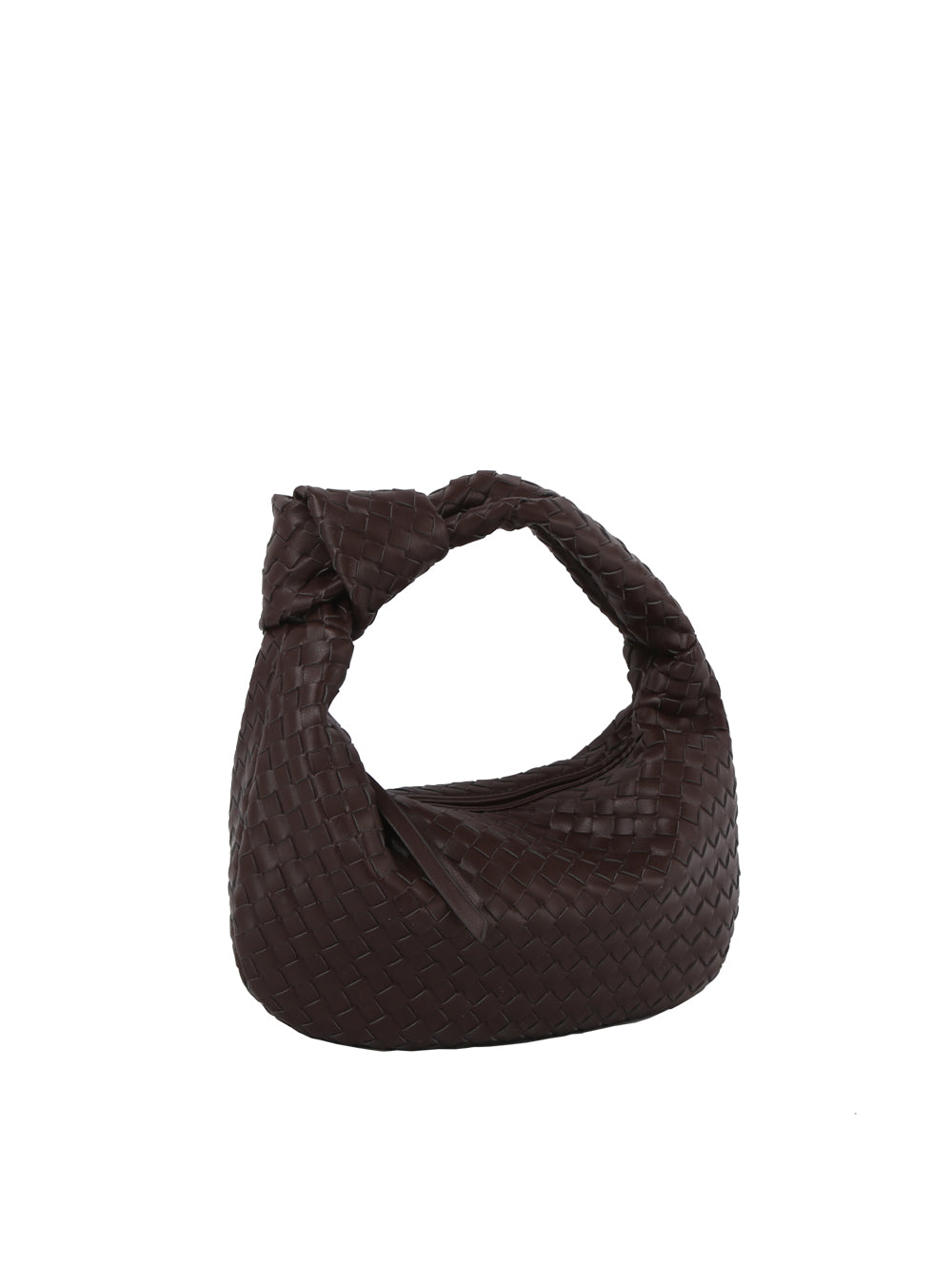 PVC Top zip closure Woven body Knotted handle Solid lining with inner pocket SIZE: Depth: 8 Height:...