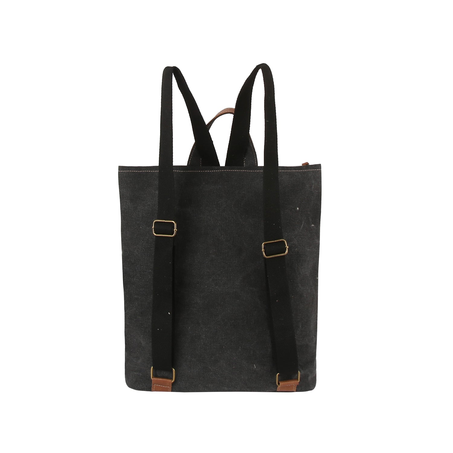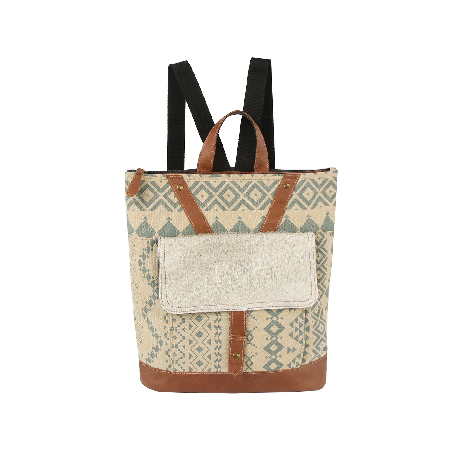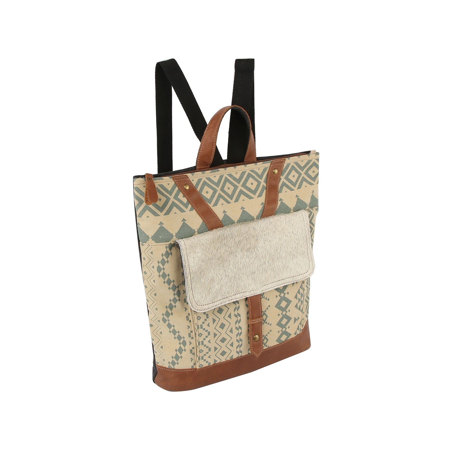 Unique Pocket Accented Backpack -Genuine Leather Trim
