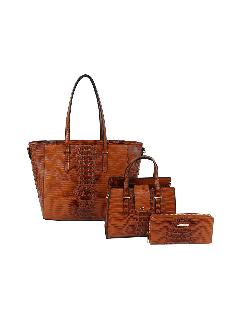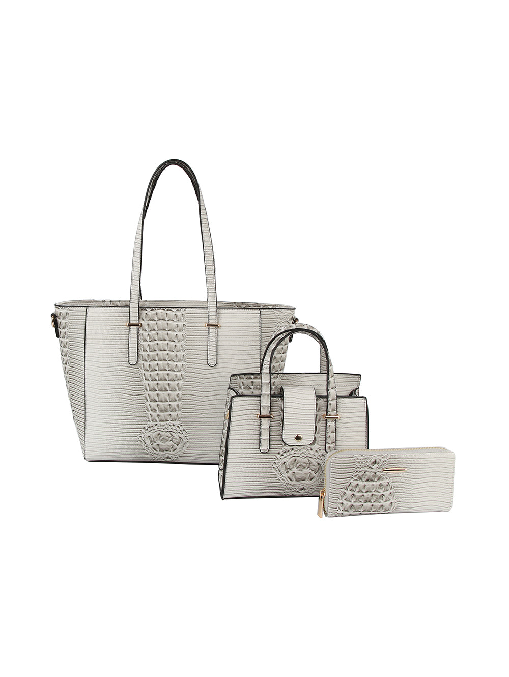 Croc Embossed 3 In 1 Tote Handbag Set