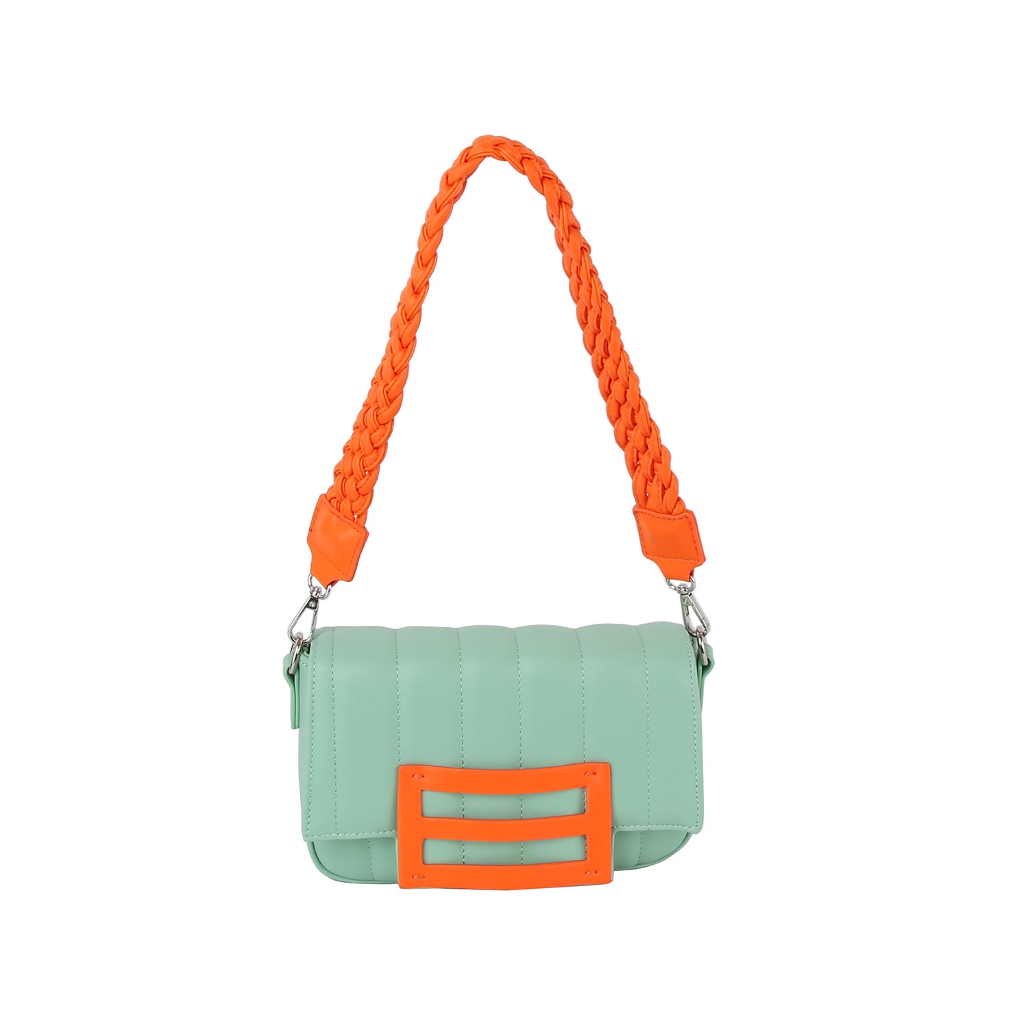 10.25L braided single strap. 22L detachable strap. Faux leather with lined interior. 2 interior slip pockets and...