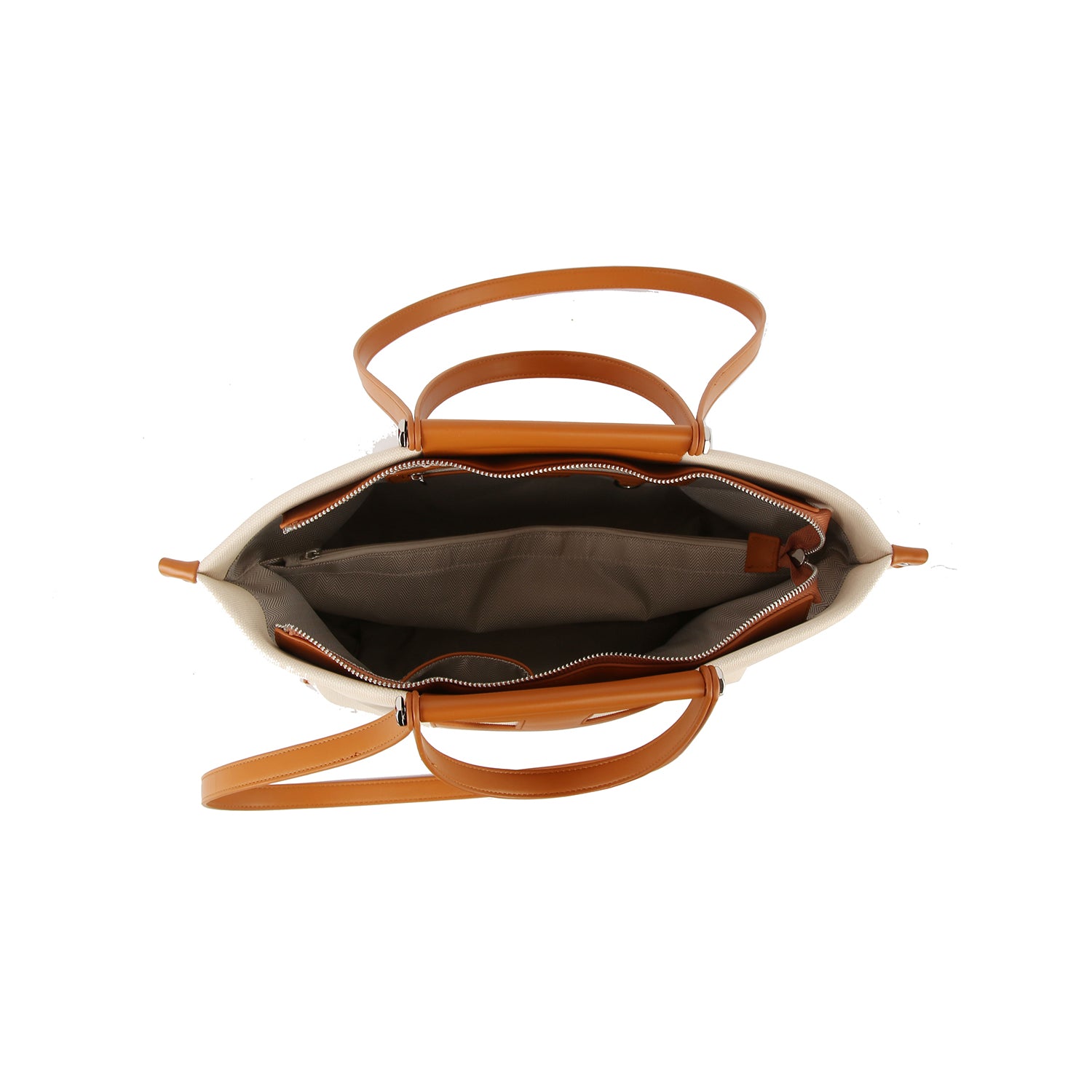5L  double handles. Longer attached dual handles. Canvas with lined interior. 2 interior slip pockets and 1...