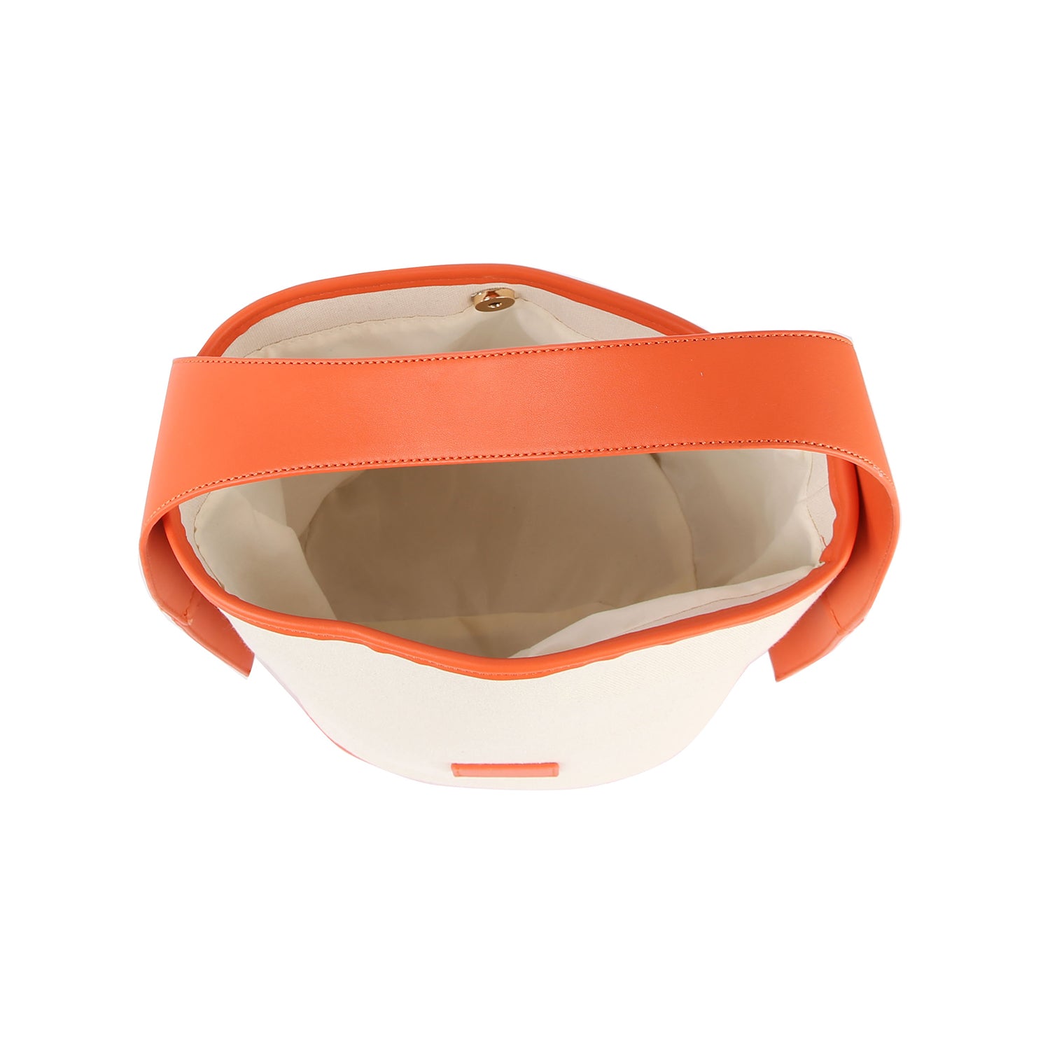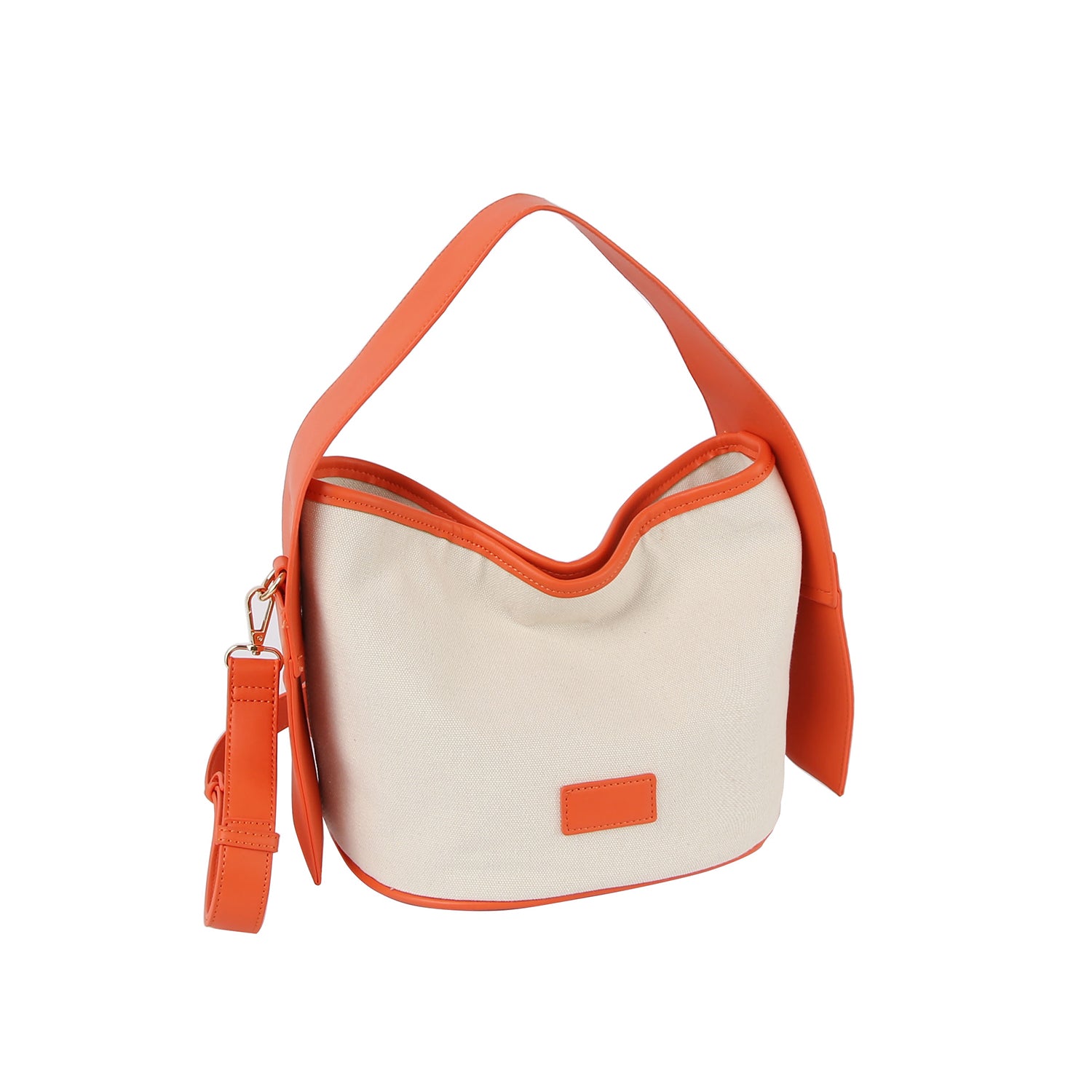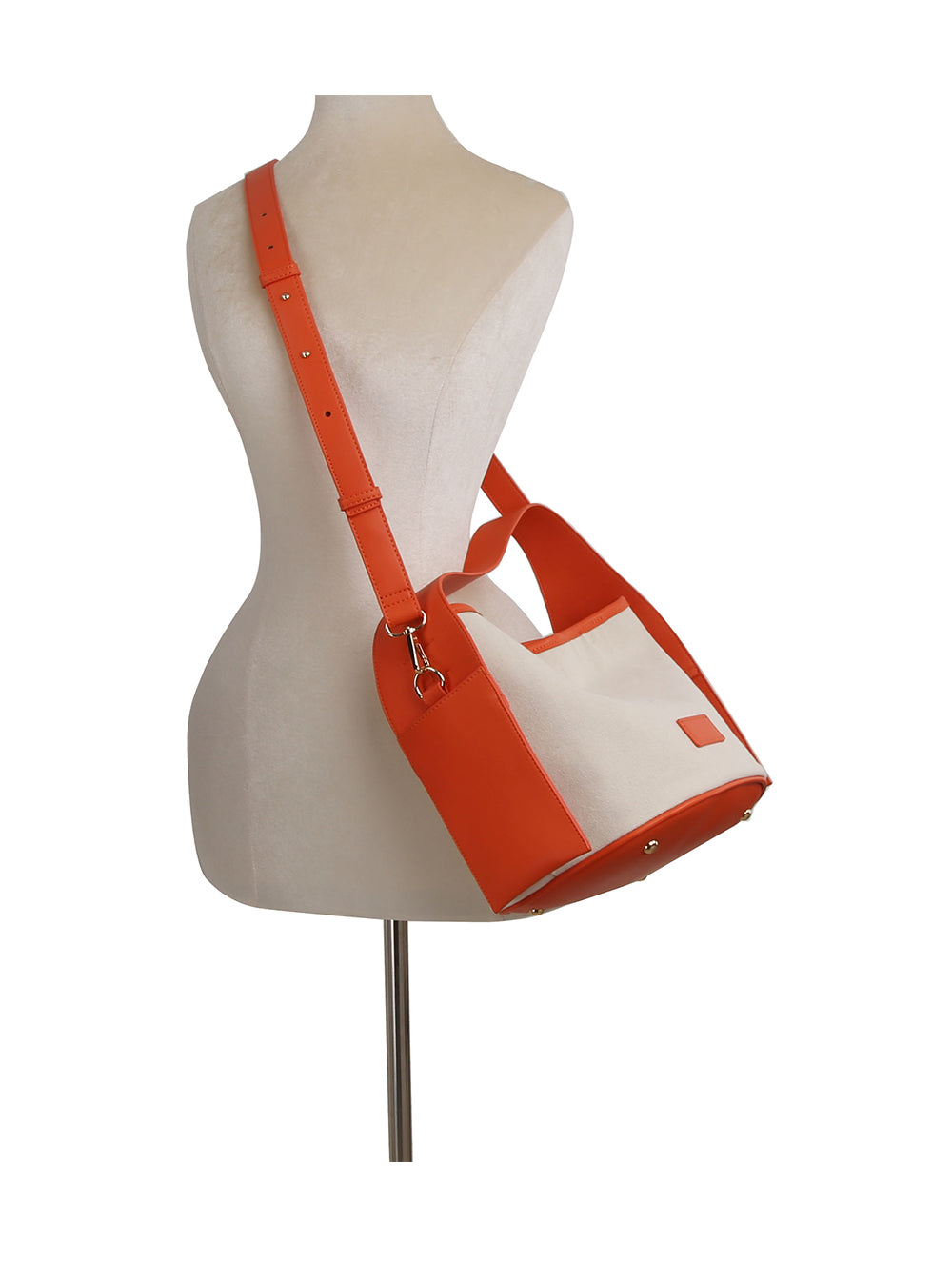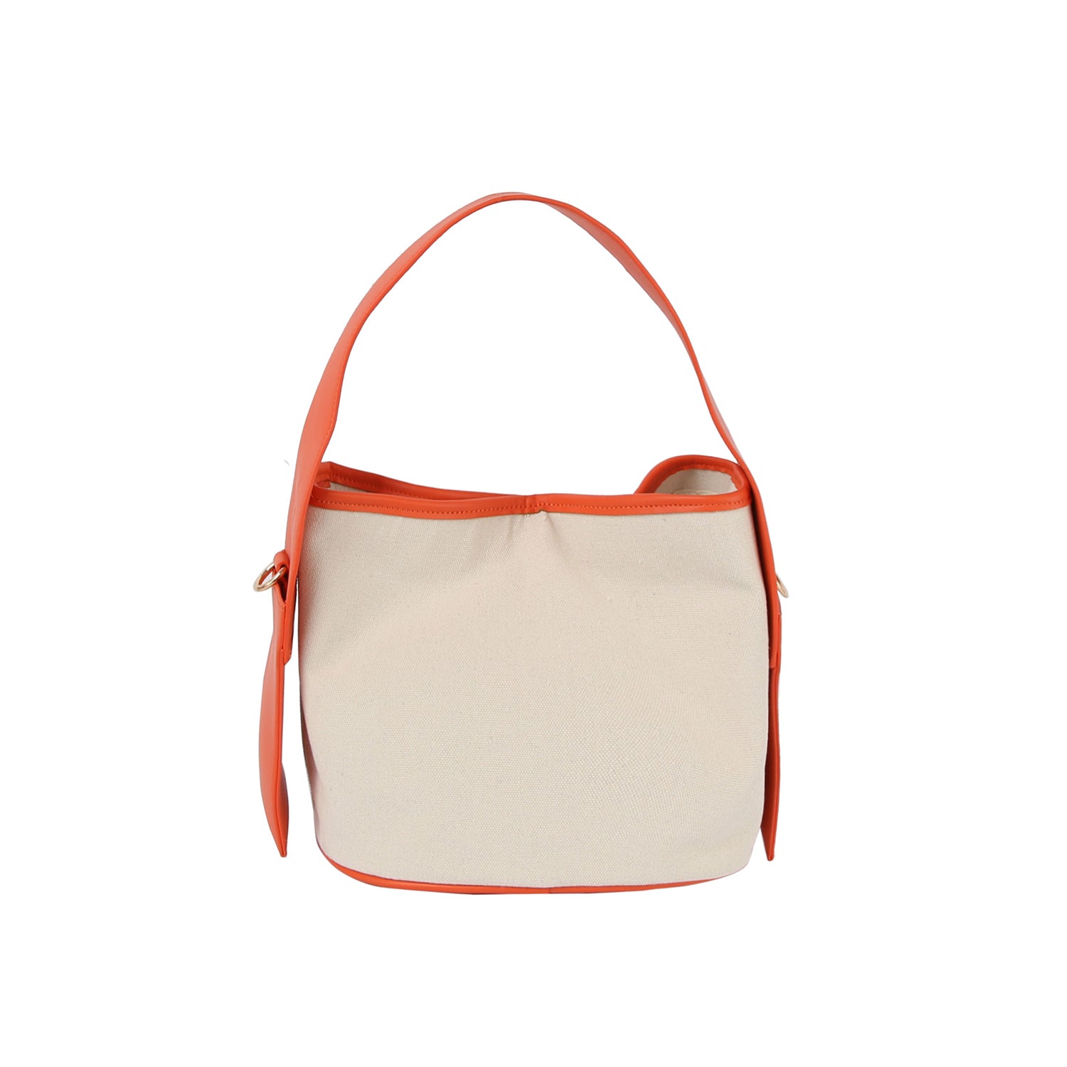 Single strap. 22L detachable strap. Canvas Construction with lined interior. Top snap closure. Gold toned hardware.  Tablet...