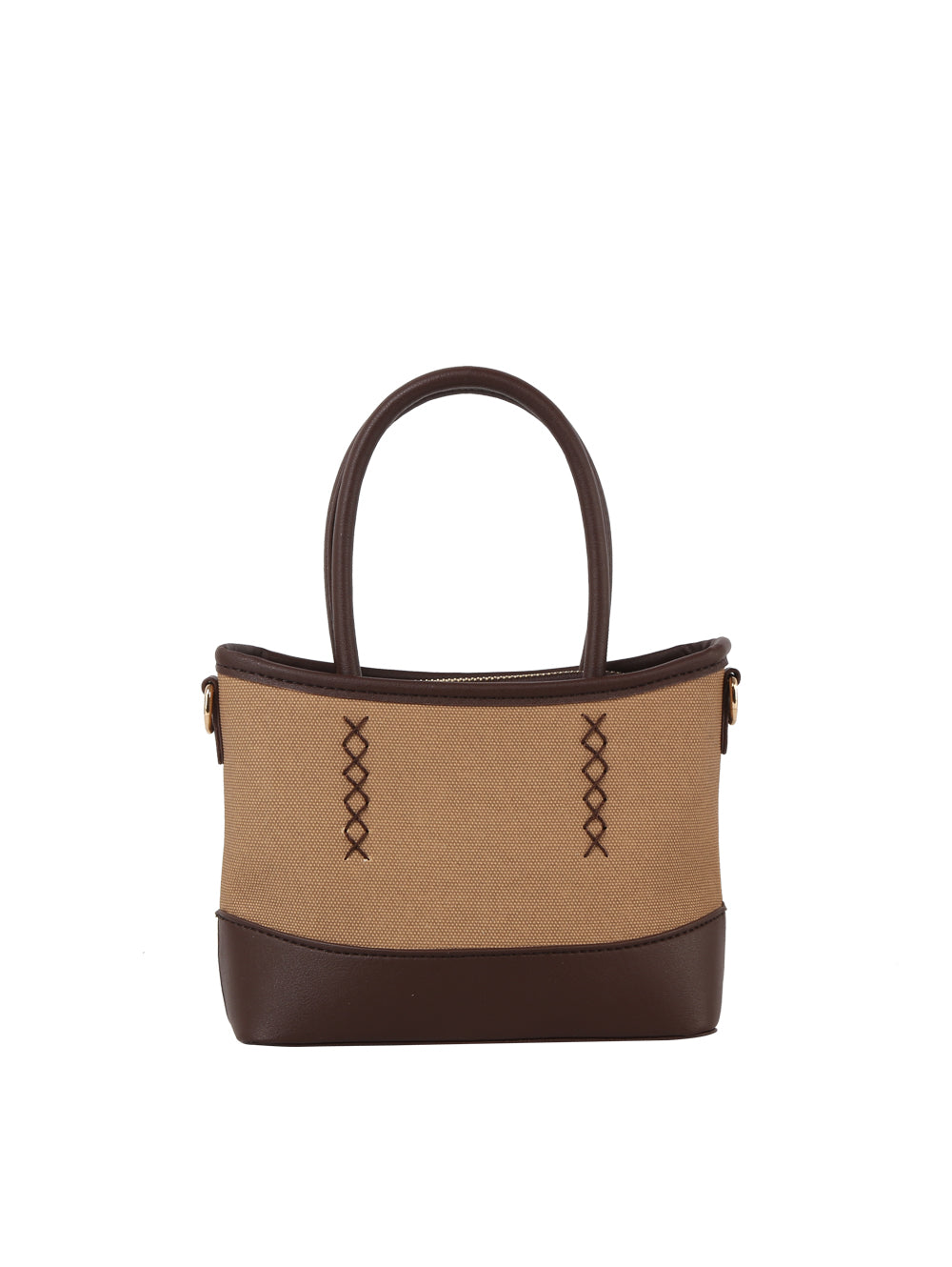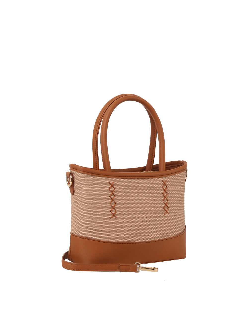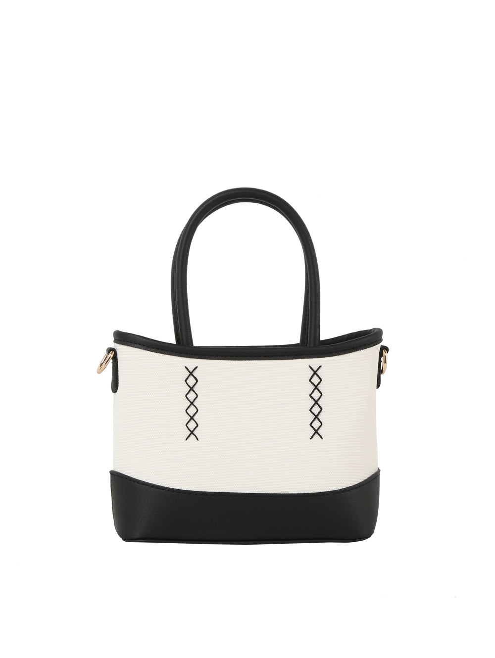 5.5L double handles. 22L detachable strap. Faux leather with lined interior. 2 interior slip pockets and 1...