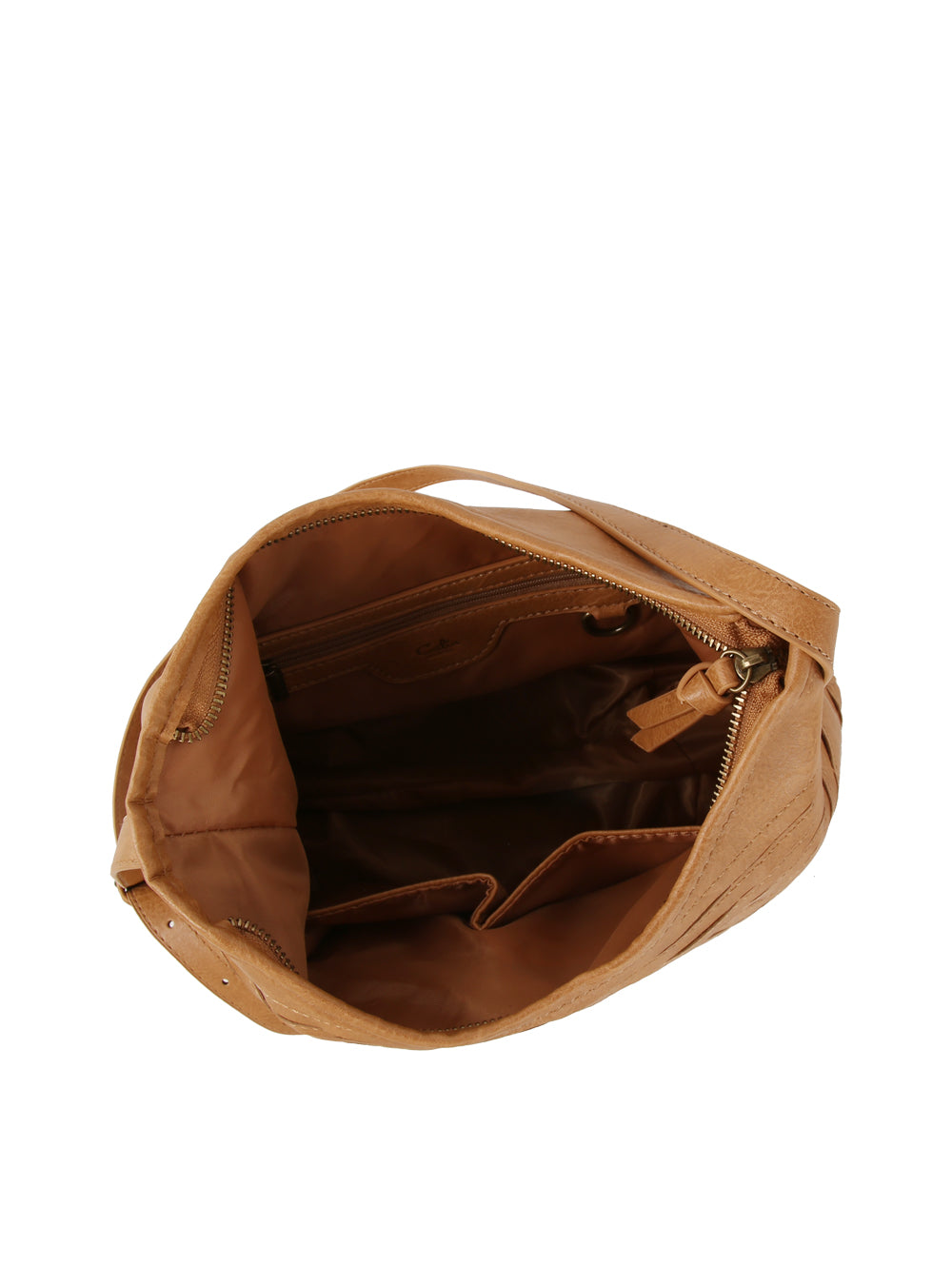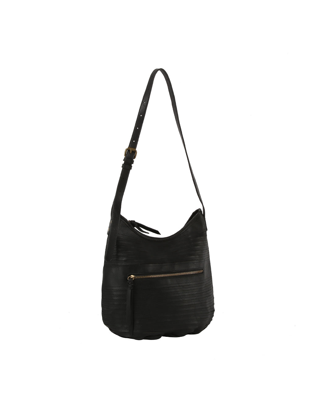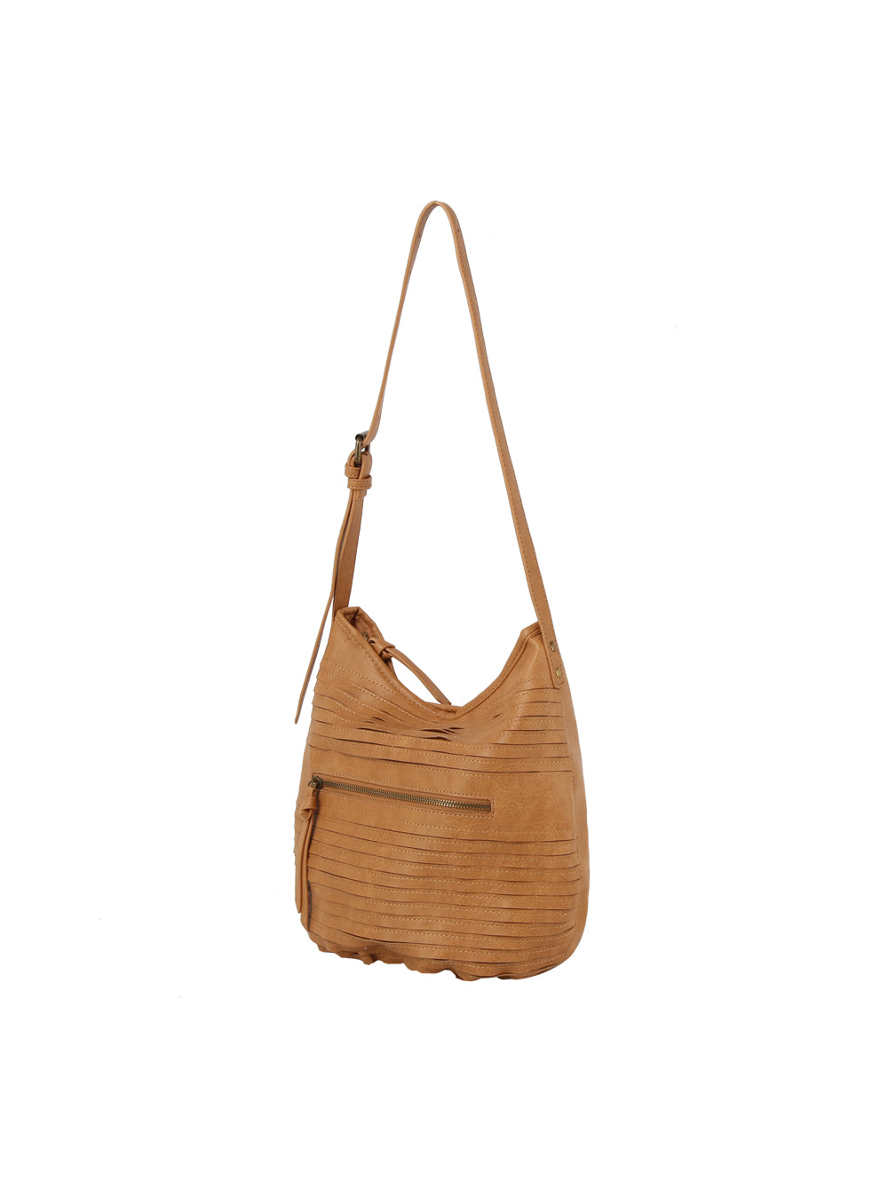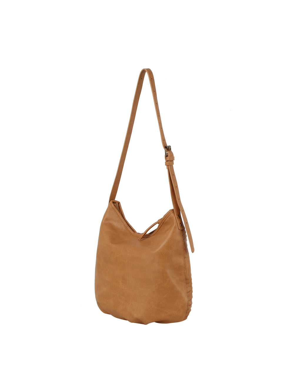 1 front zip pocket. 14L adjustable single strap. Faux leather with lined interior. 2 interior slip pockets...