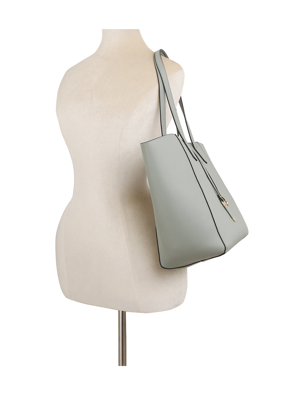 Included zip top plaid bag can be used as a clutch or inside the tote.