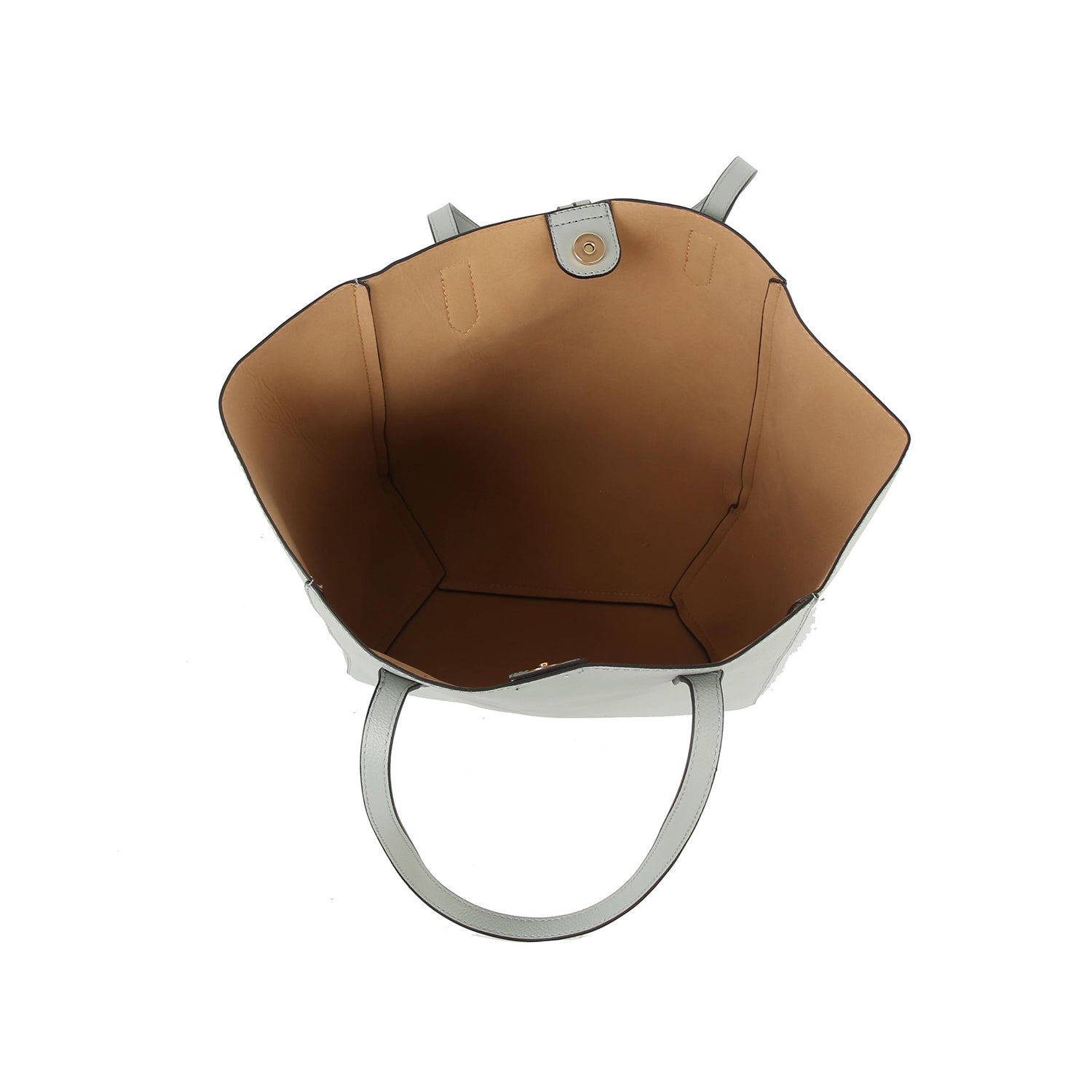 8.5L double handles.  Faux leather with finished interior. Top snap closure. Gold toned hardware.  Tablet compatible std....