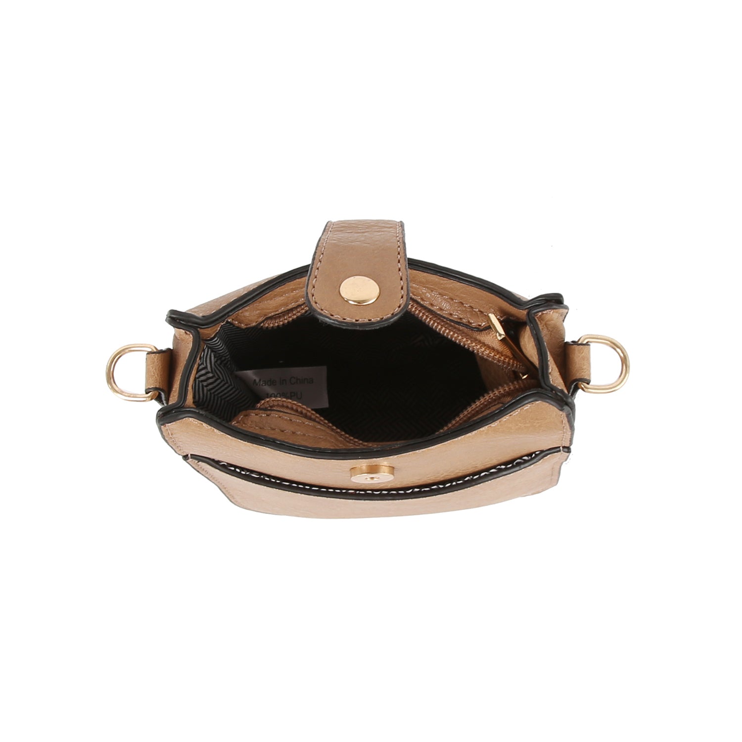 Top zip closure with snap.