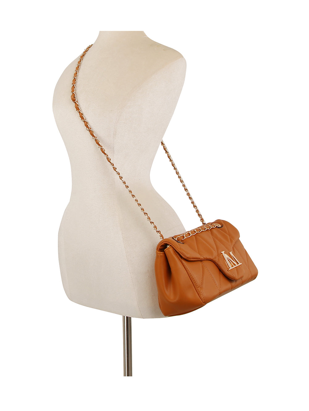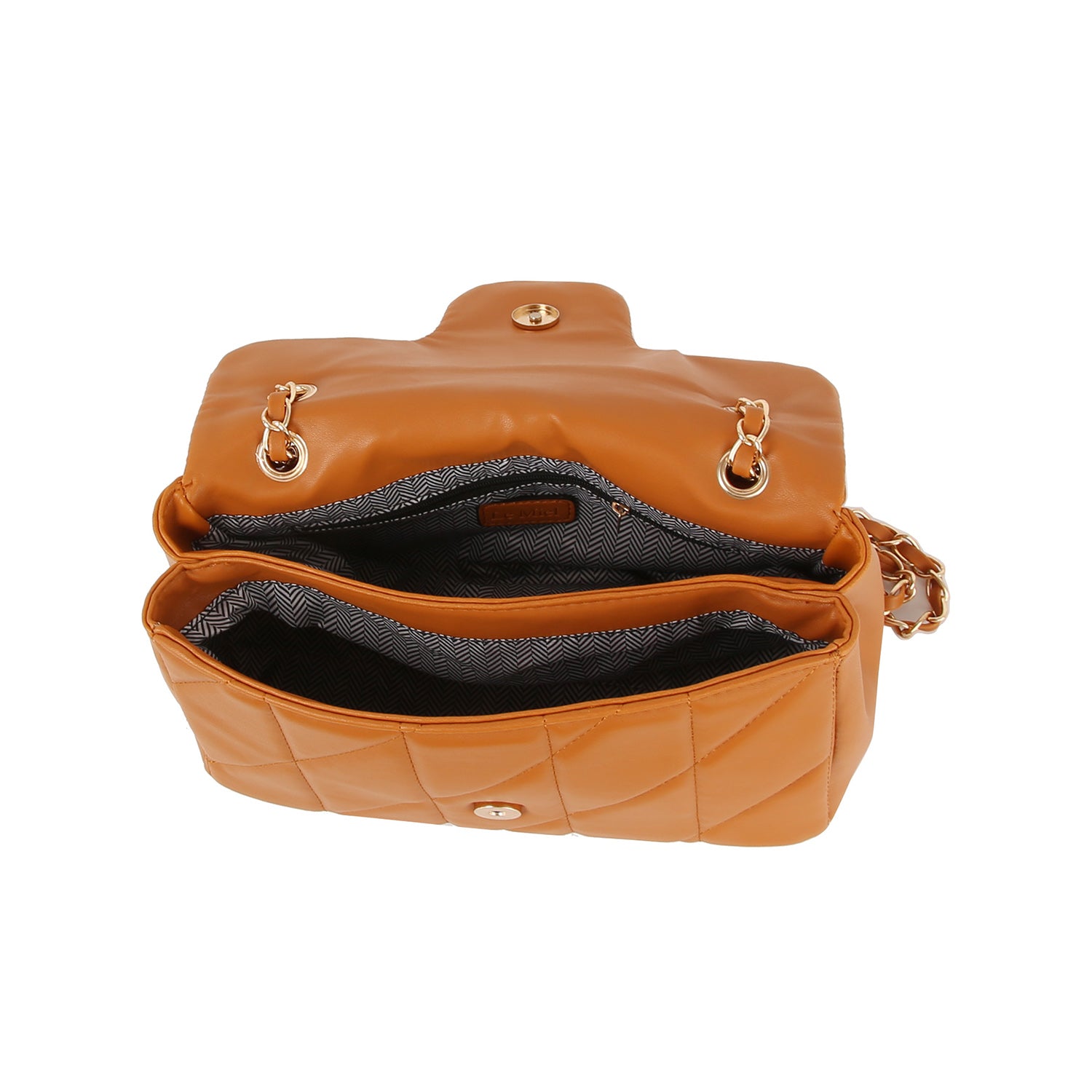 12L single chain strap.  Faux leather with lined interior. Top flap closure. Gold toned hardware.  Approximate Size:...