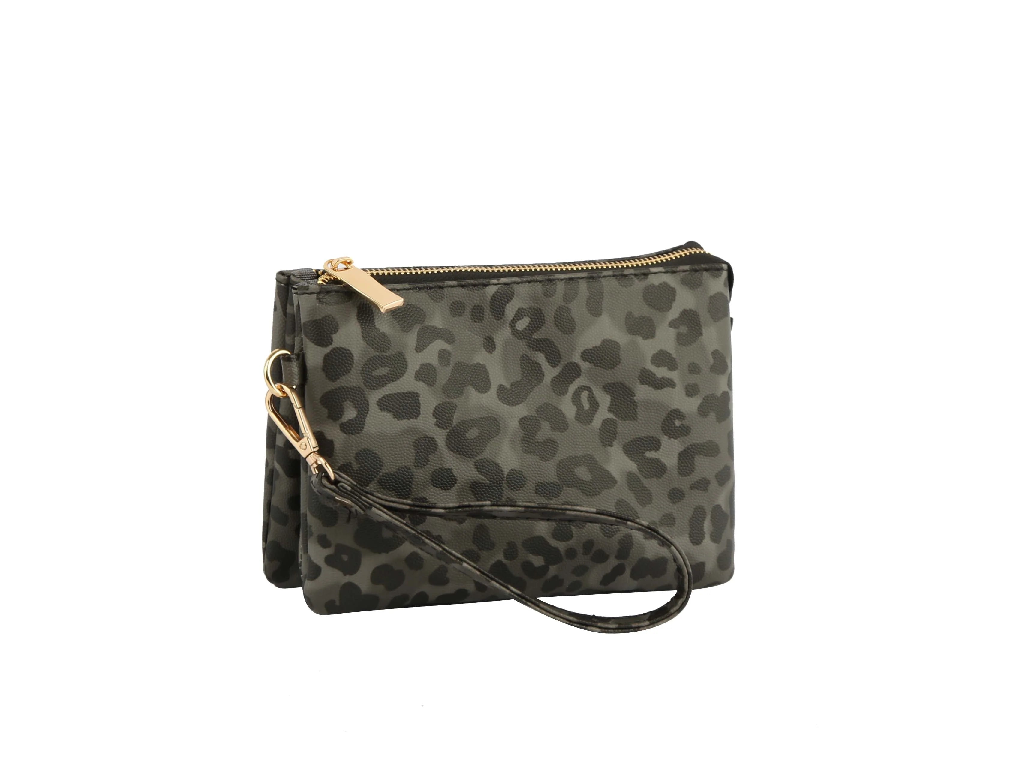 Detachable wristlet strap. 22L detachable strap. Faux leather with lined interior. Multiple interior slots and pockets. Top...