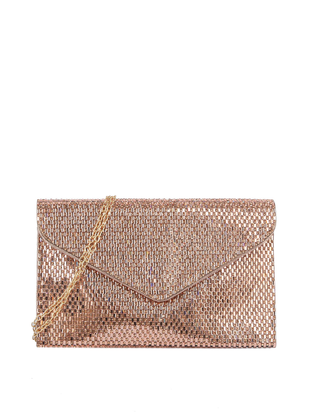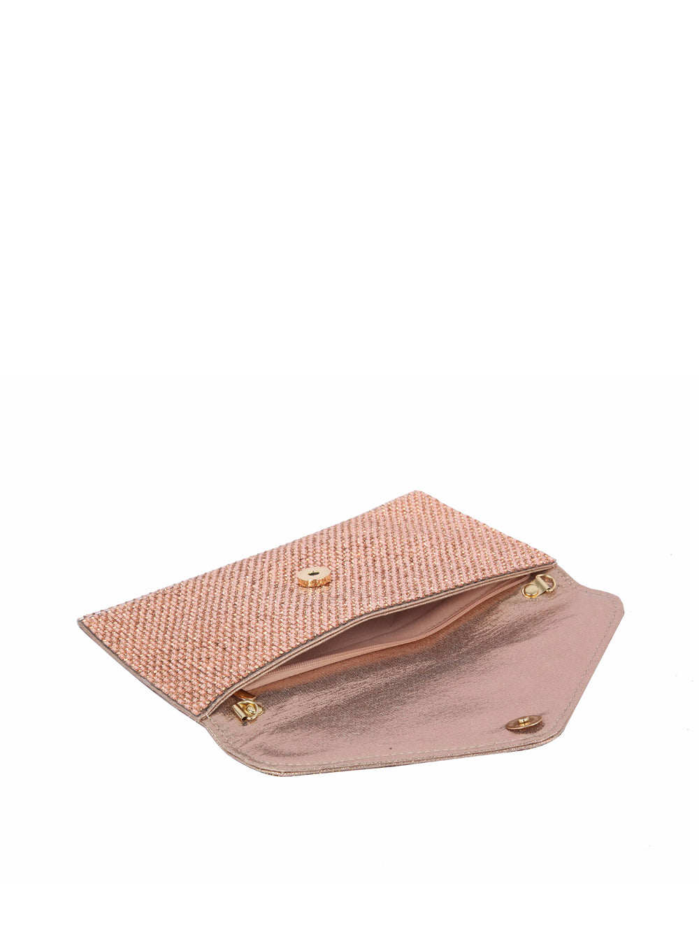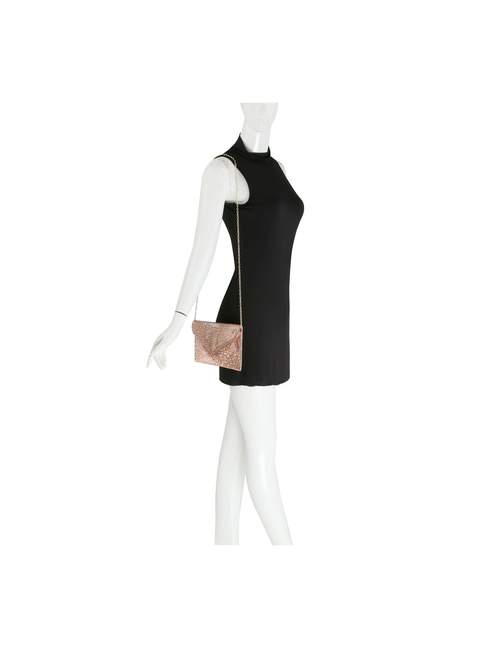 Detachable chain strap. Faux leather with lined interior. 2 interior slip pockets and 1 zip pocket....