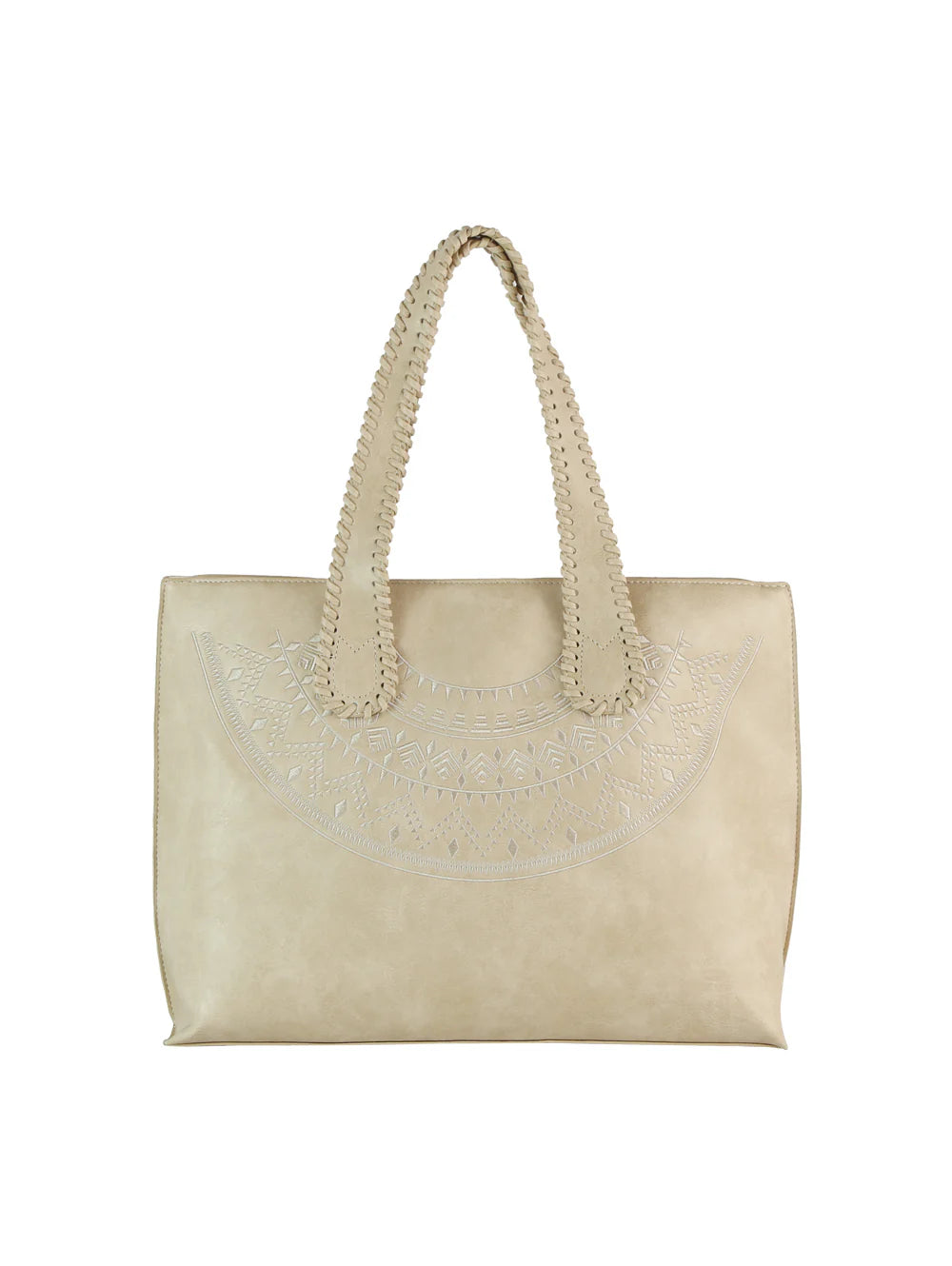 Embossed Whipstitched Accented Tote Handbag