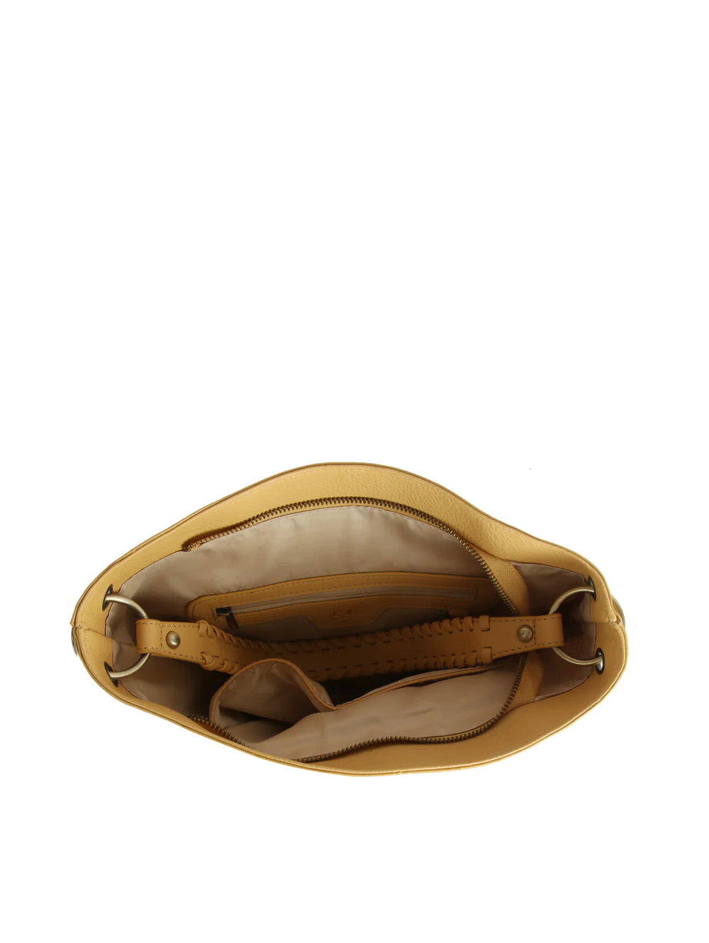 Single strap. Detachable, adjustable guitar styled strap. Faux leather with lined interior. 2 interior slip pockets...