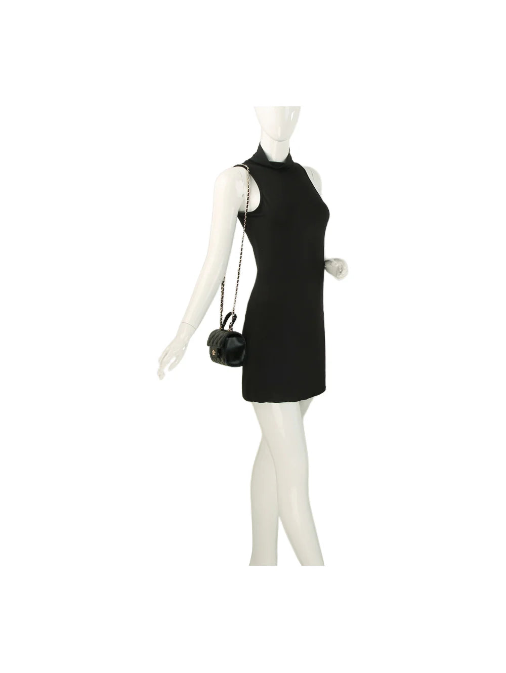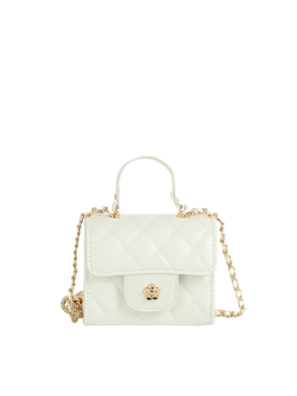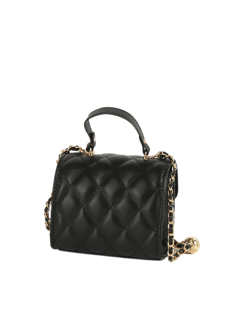 Chain, single strap. Faux leather with lined interior. Top zip closure. Gold toned hardware.  Approximate Size: 4L...