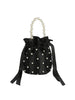 Smooth satin body embellished with pearl studs for an elegant touch Structured pearl-beaded handle adds a luxurious...