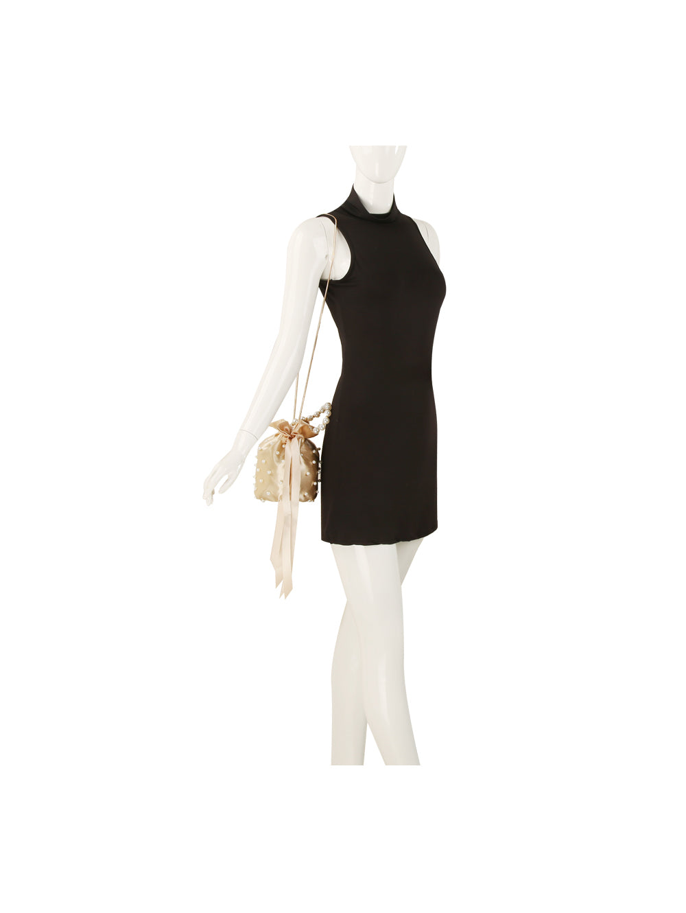 • Smooth satin body embellished with pearl studs for an elegant touch