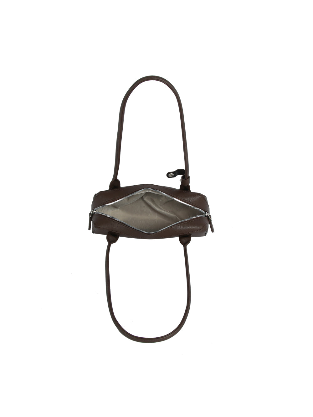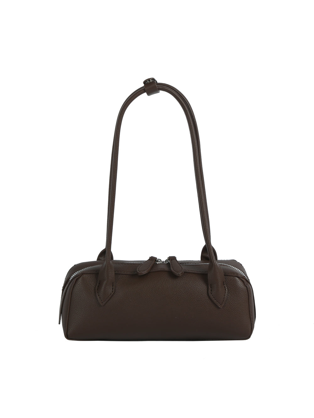 Modern barrel silhouette with smooth pebbled faux leather Double zipper top for easy access and secure closure...